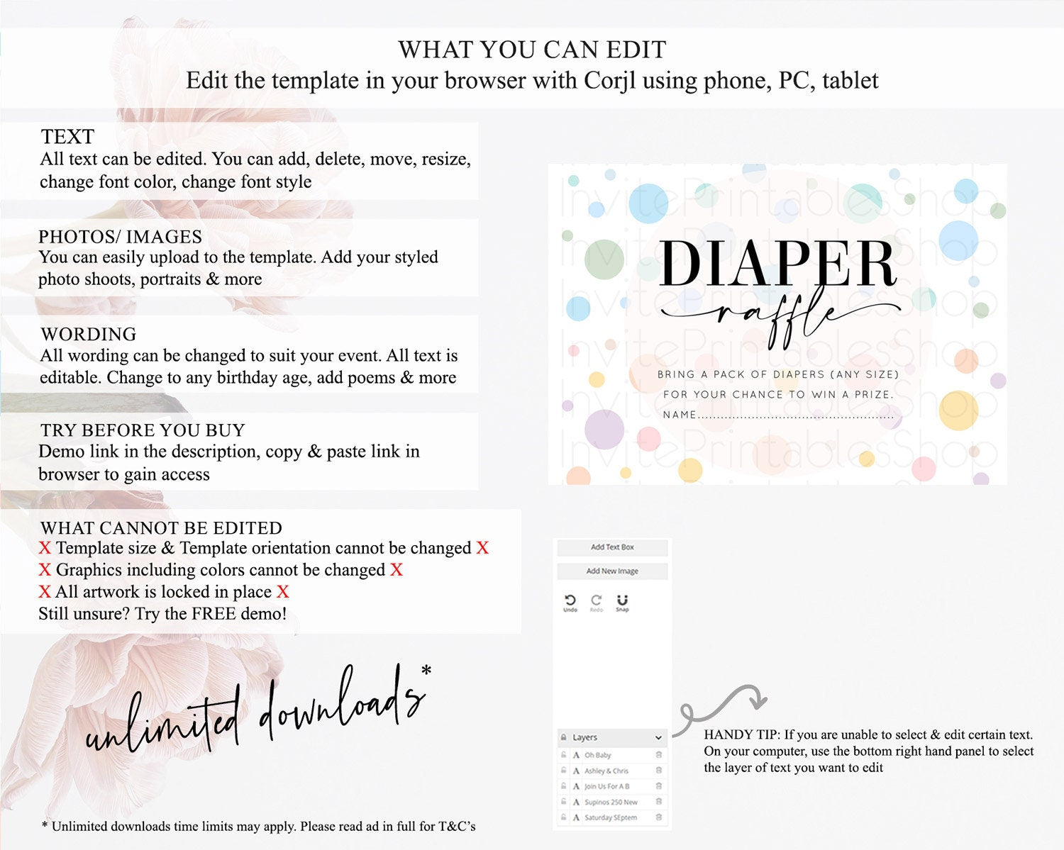 • After purchase, Corjl emails your editing link. Allow up to 15 minutes for delivery.