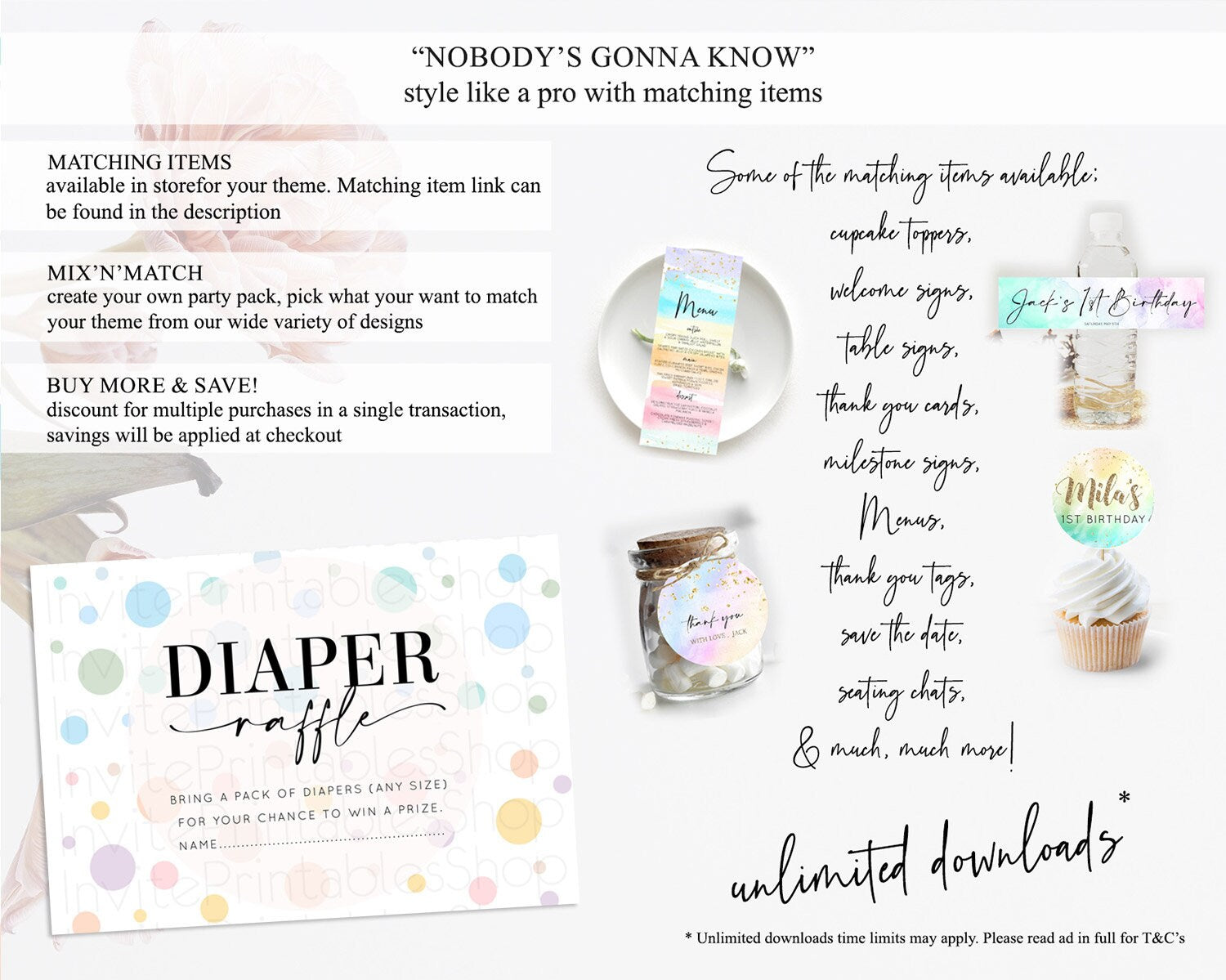 Rainbow Diaper Raffle Card Pastel Sprinkles Diaper Raffle Insert Rainbow Confetti Diaper Ticket Colorful Bubbles Pastel Raffle Game D10135