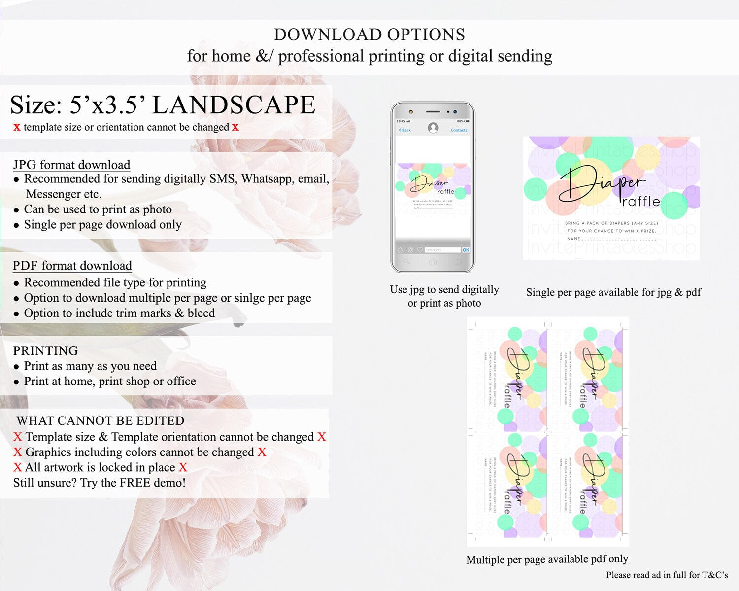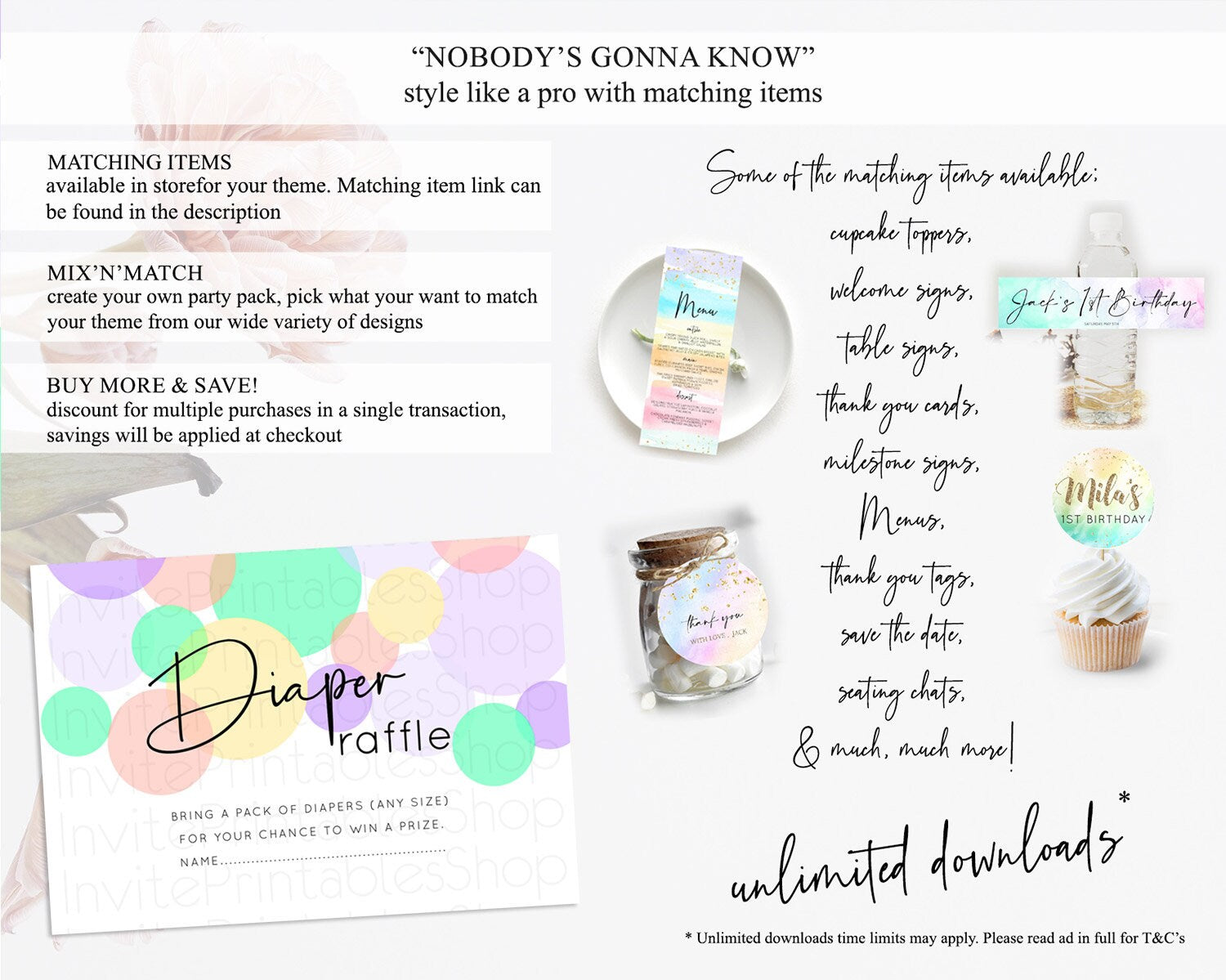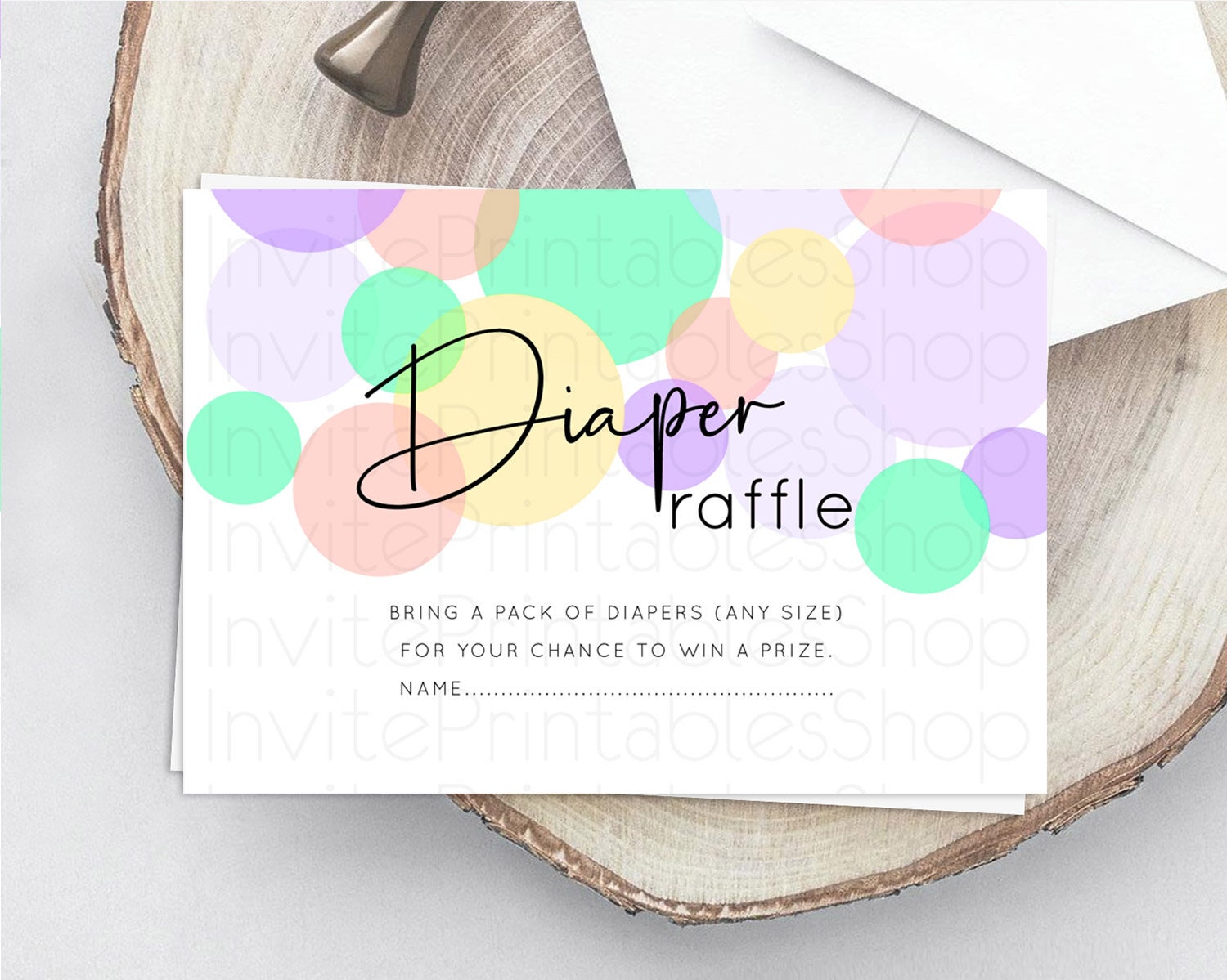 Rainbow Diaper Raffle Card Pastel Sprinkles Diaper Raffle Insert Rainbow Confetti Diaper Ticket Colorful Bubbles Pastel Raffle Game D10380