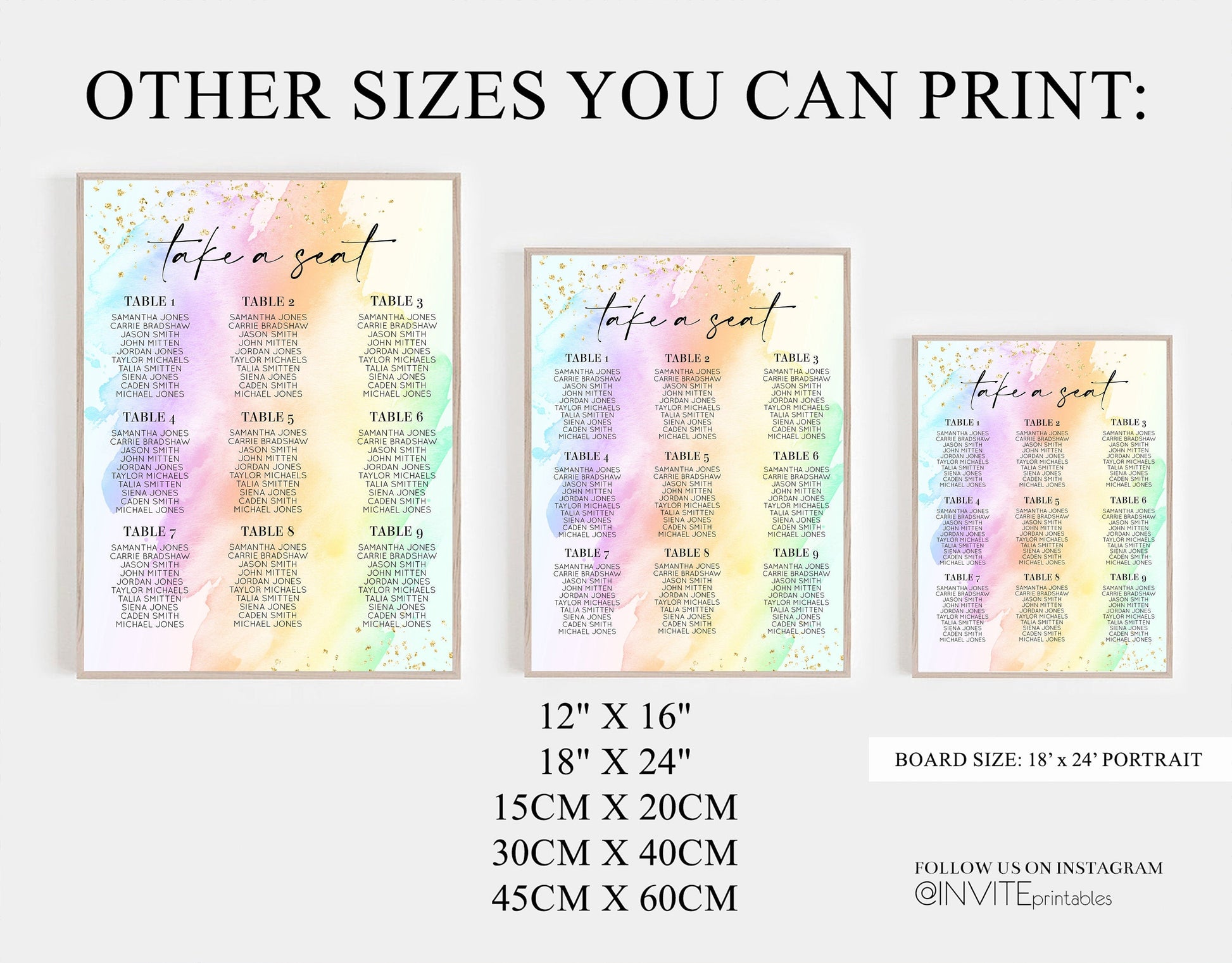 Rainbow Seating Chart Pastel Clouds Seating Sign Gold Sprinkles Seating Poster Ombre Pastel Colors Wedding Christening Birthday Baptism t602