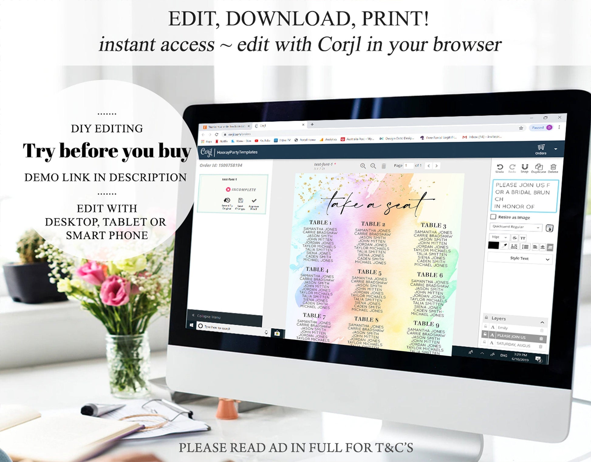 • After purchase, Corjl emails your editing link. Allow up to 15 minutes for delivery.