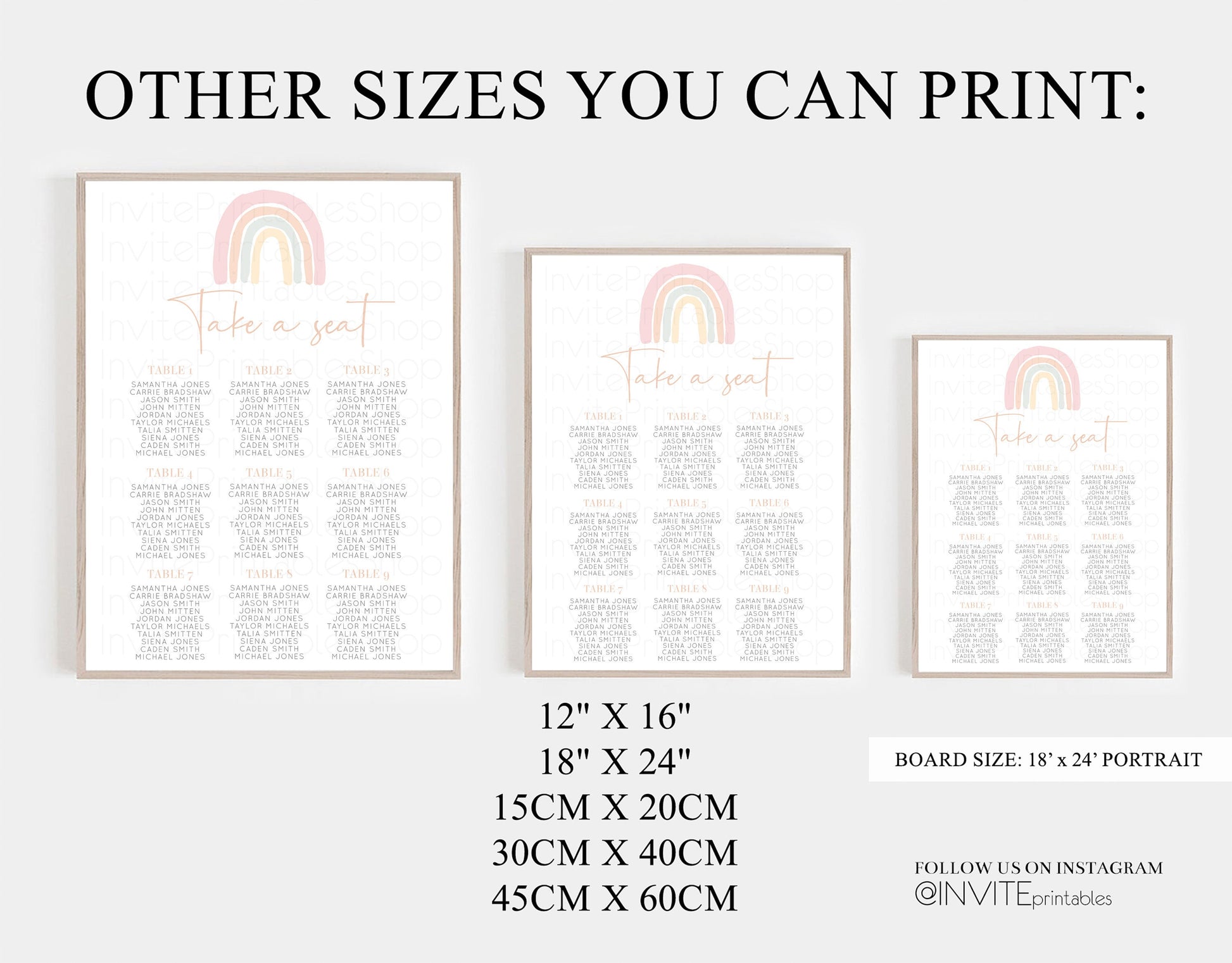 Rainbow Seating Chart Pastel Rainbow Seating Sign Splash Pastel Colors Seating Board for Christening Birthday Baptism Baby Boho Rainbow 14