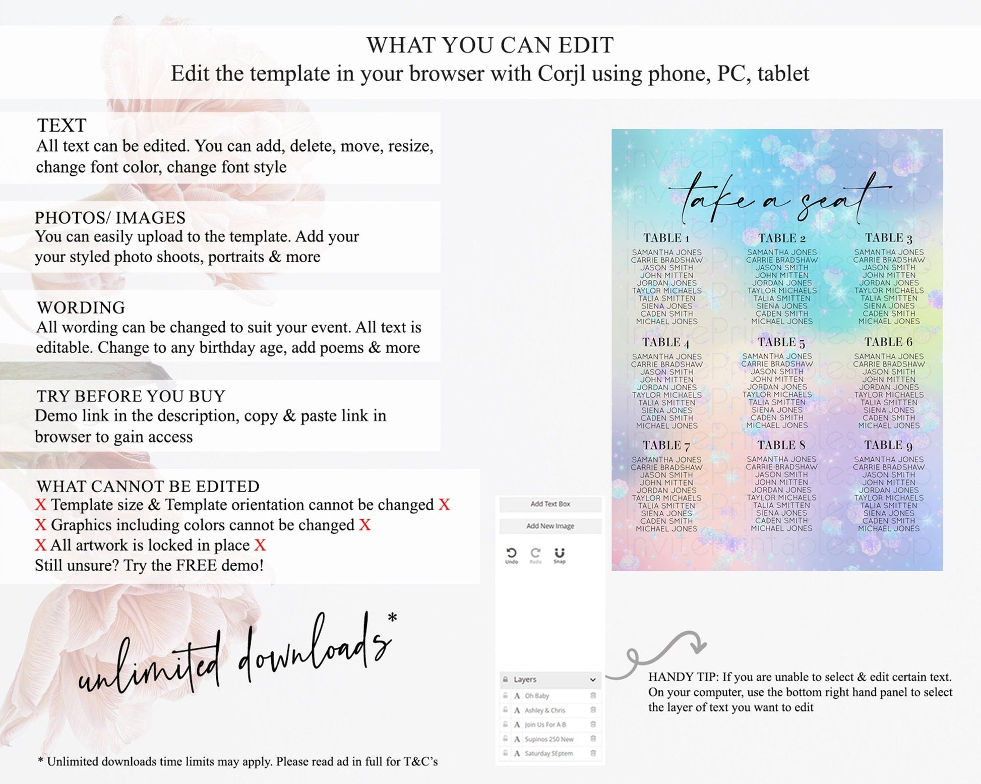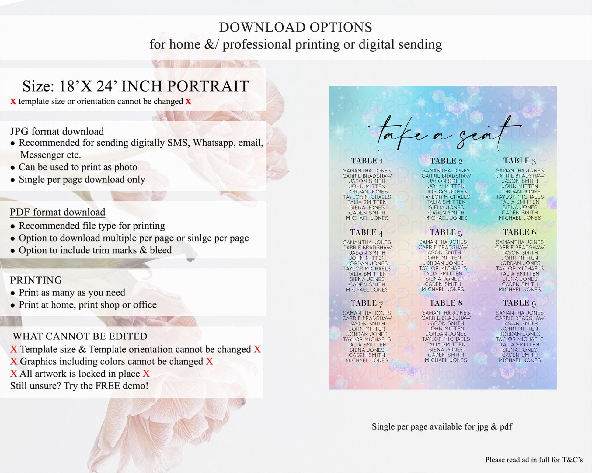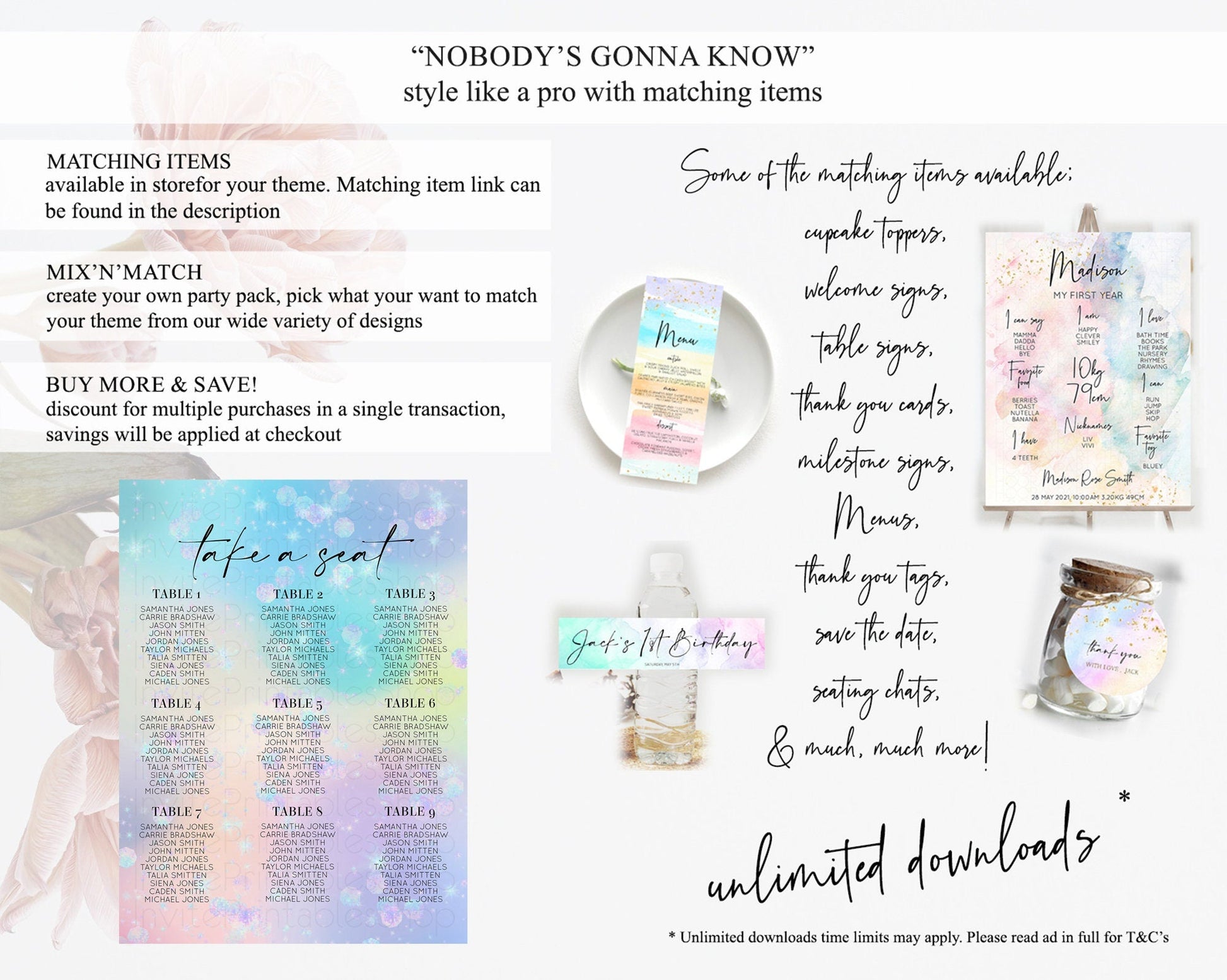 Rainbow Seating Chart Pastel Seating Chart Iridescent Sprinkles Colorful Pastel Watercolor Seating Sign Ombre Pastel Take A Seat D10665