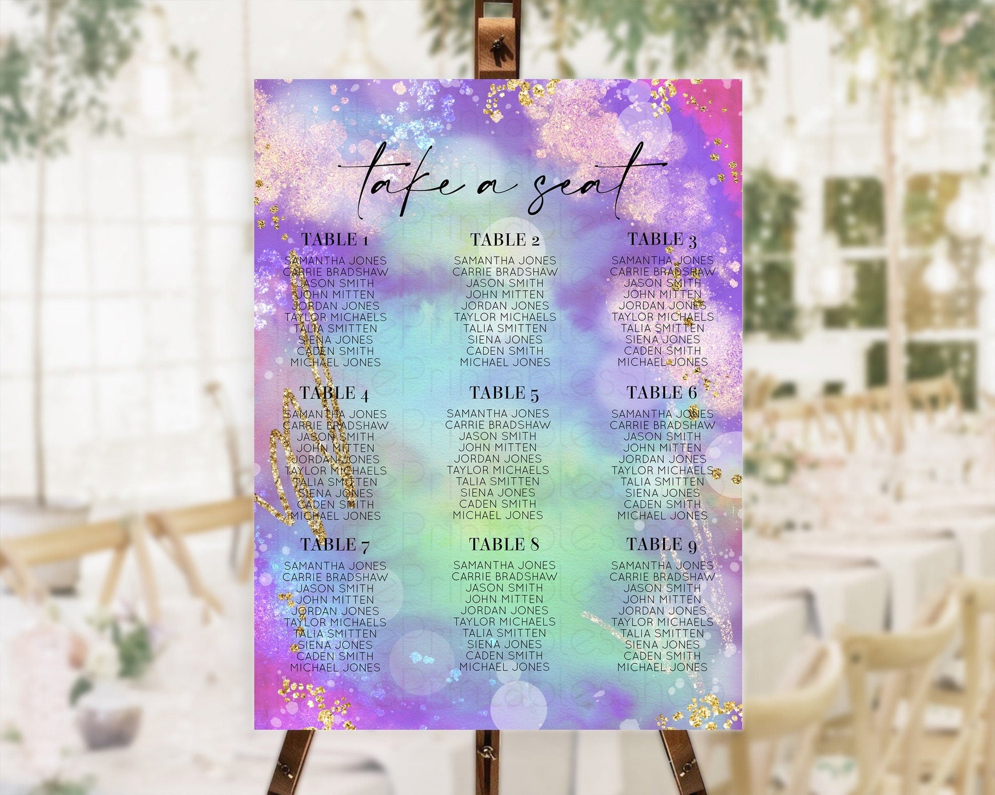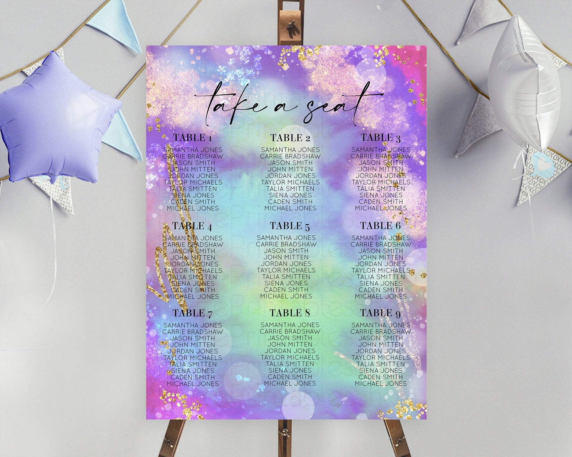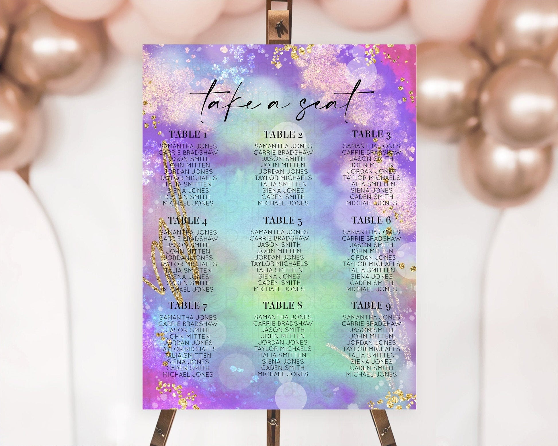 Rainbow Seating Chart Pastel Seating Chart Iridescent Sprinkles Colorful Pastel Watercolor Seating Sign Ombre Pastel Take A Seat D10680