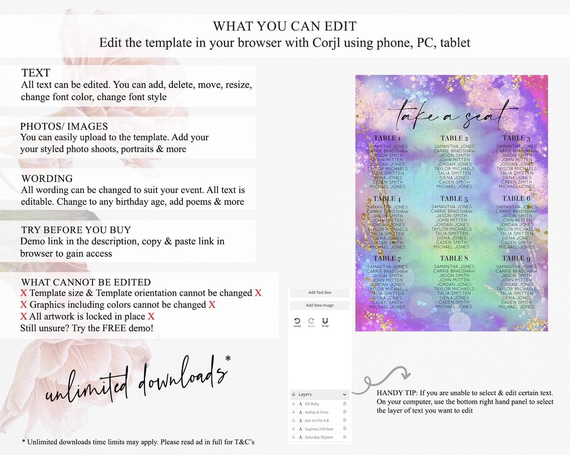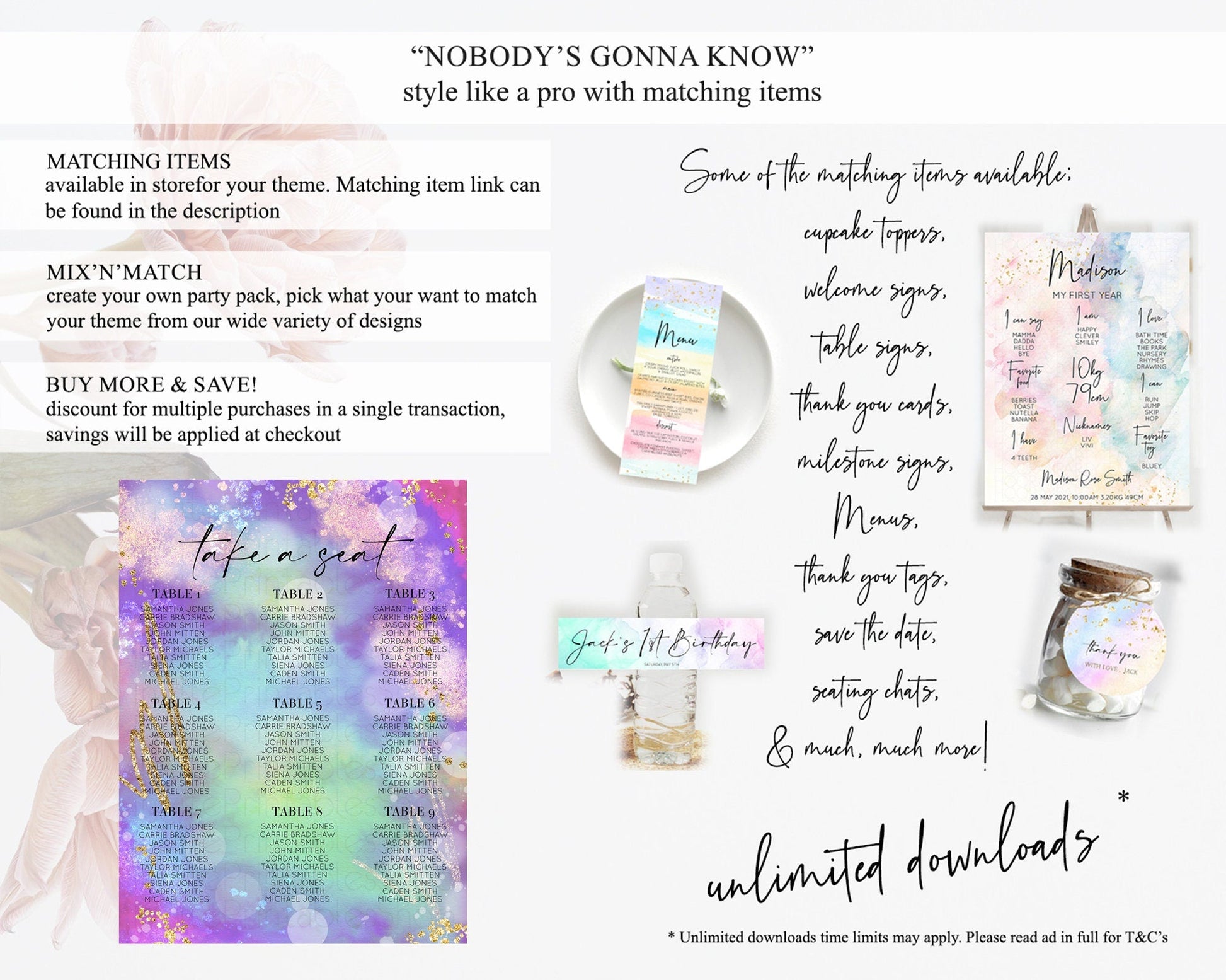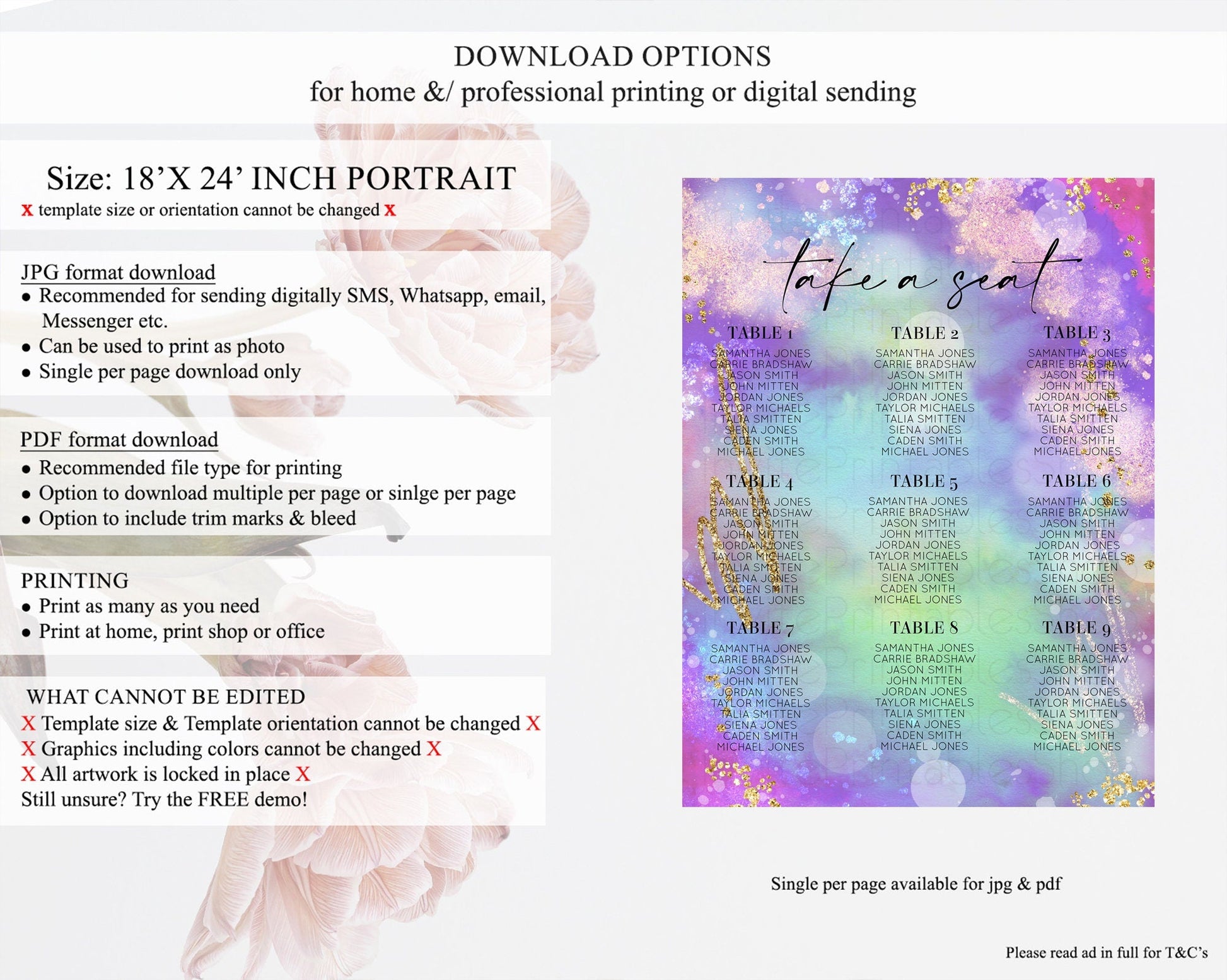 Rainbow Seating Chart Pastel Seating Chart Iridescent Sprinkles Colorful Pastel Watercolor Seating Sign Ombre Pastel Take A Seat D10680