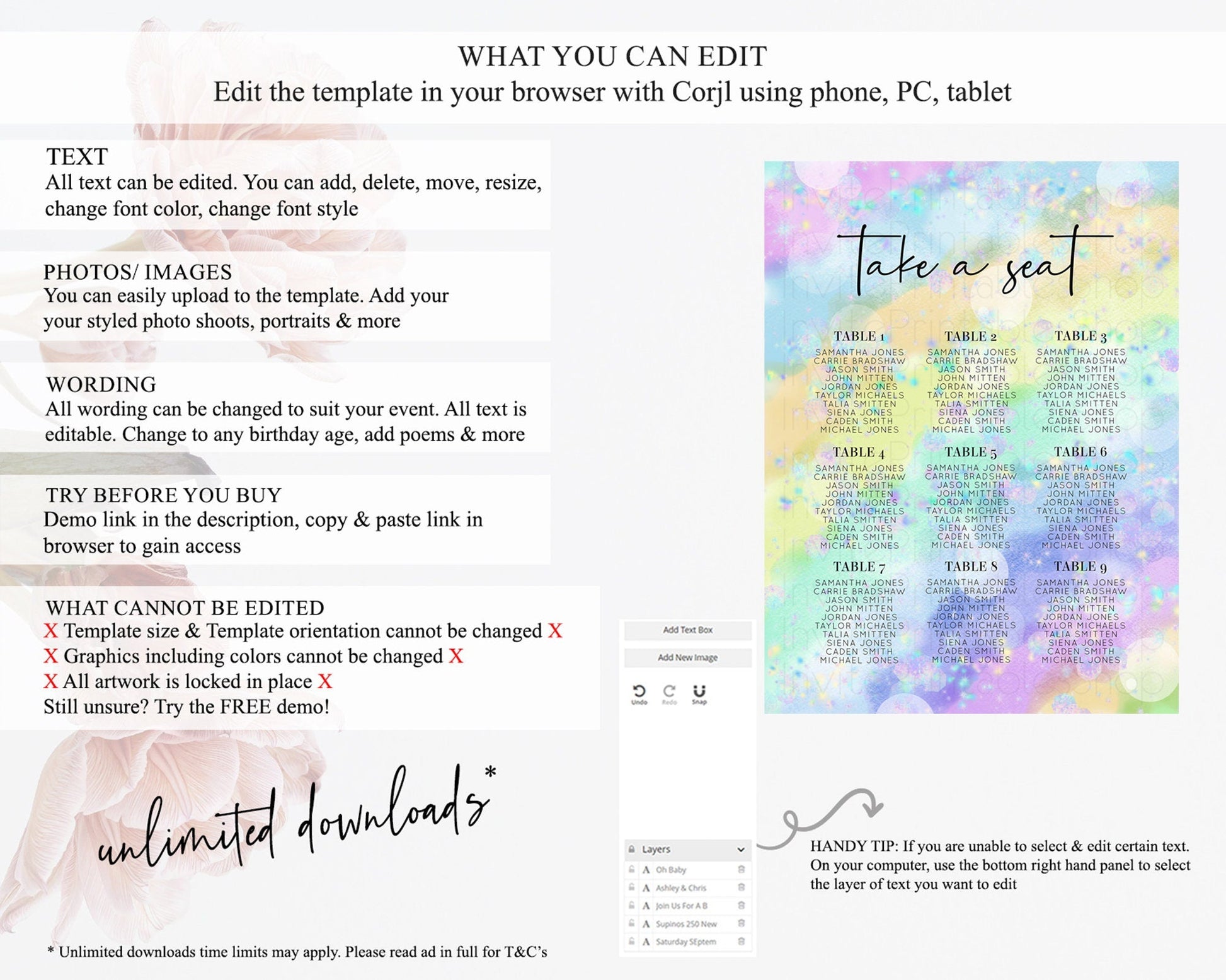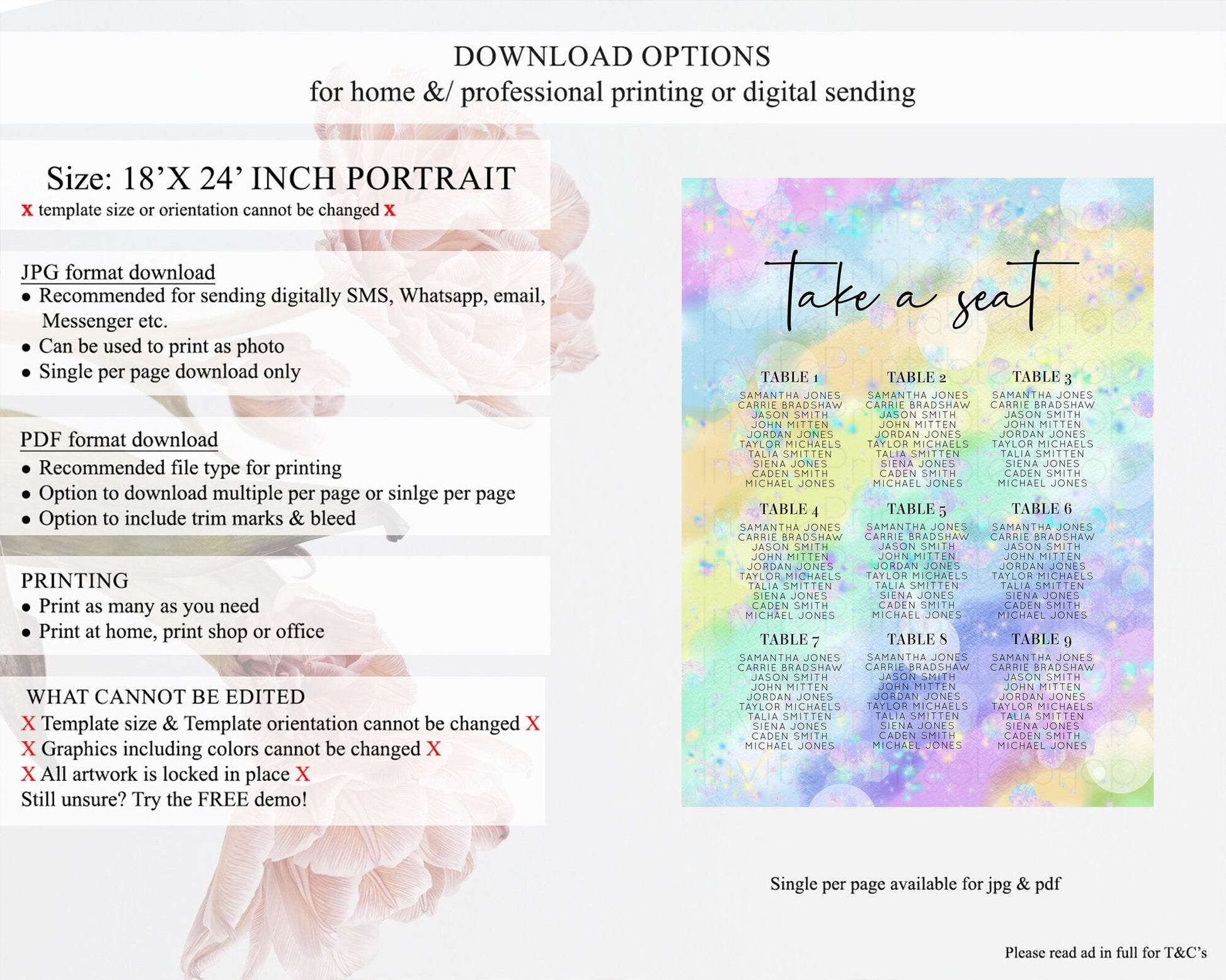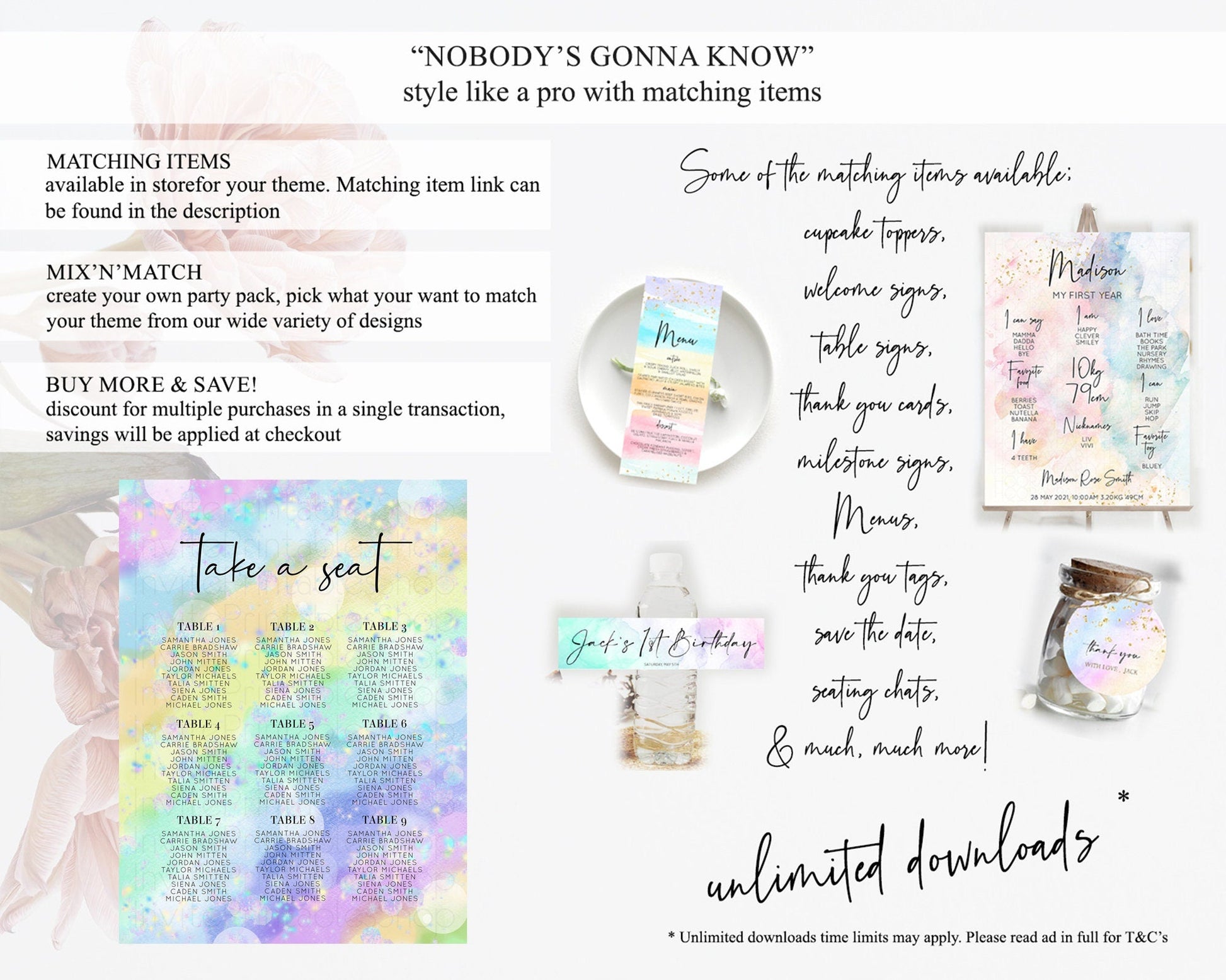 Rainbow Seating Chart Pastel Seating Chart Iridescent Sprinkles Colorful Pastel Watercolor Seating Sign Ombre Pastel Take A Seat D10689