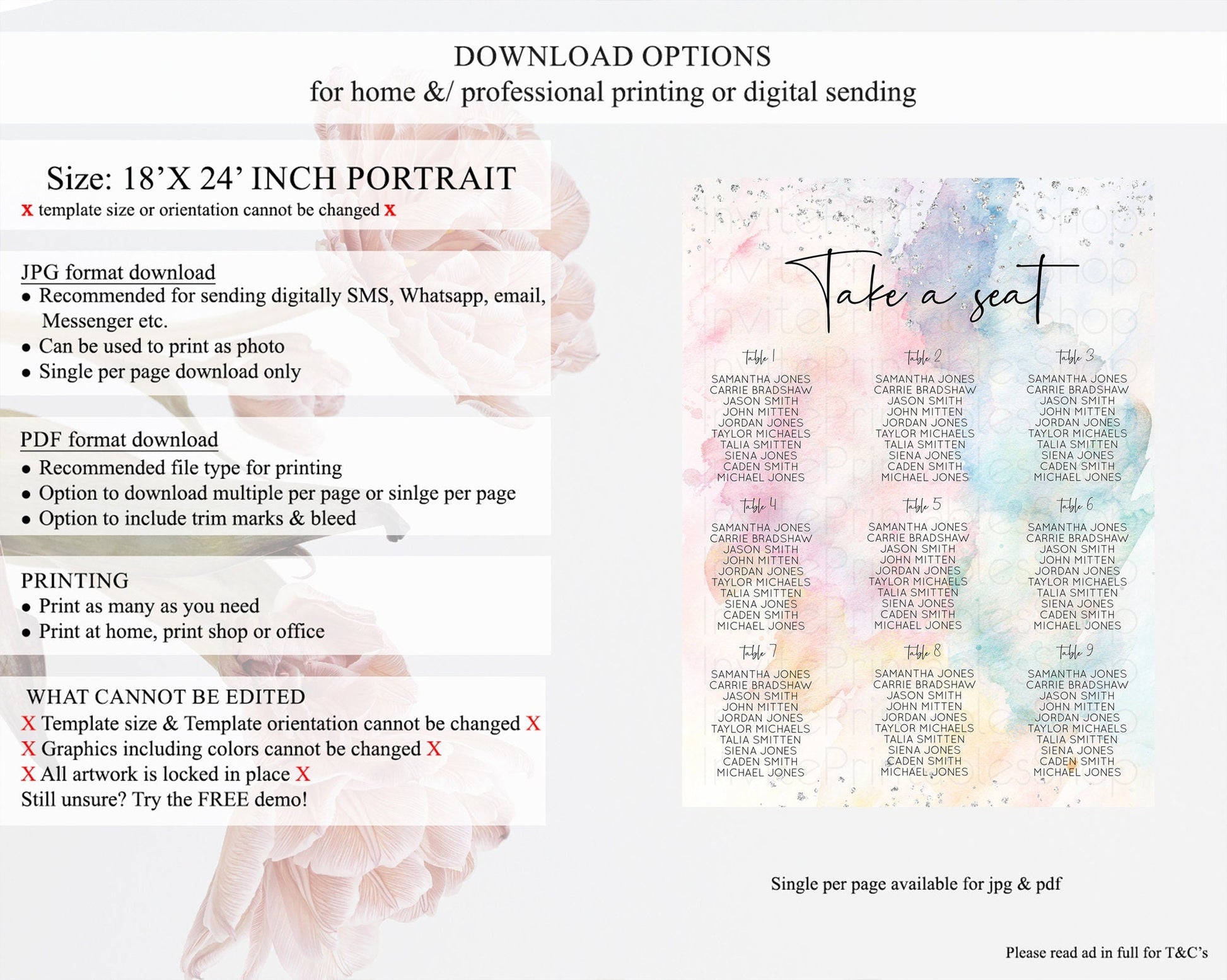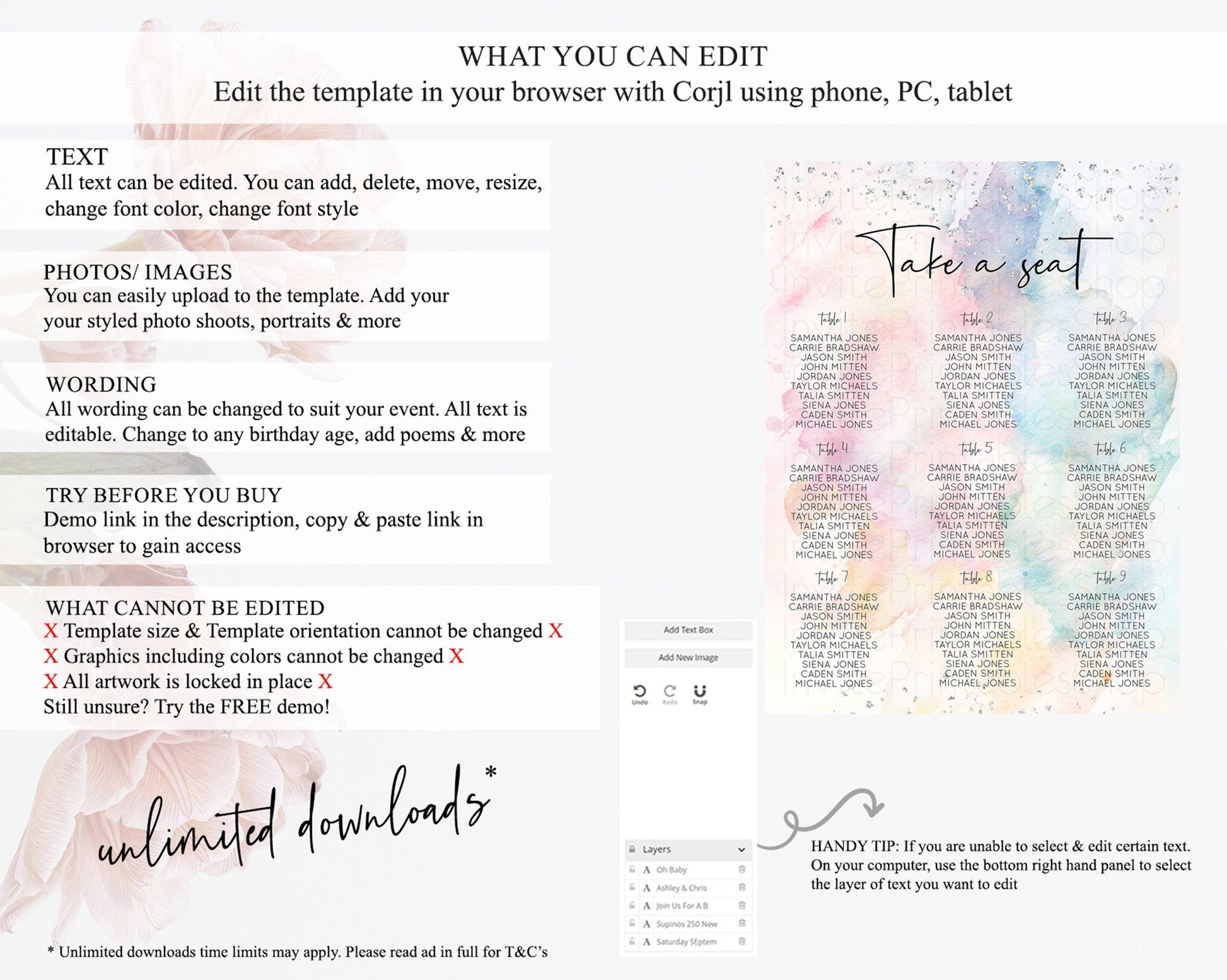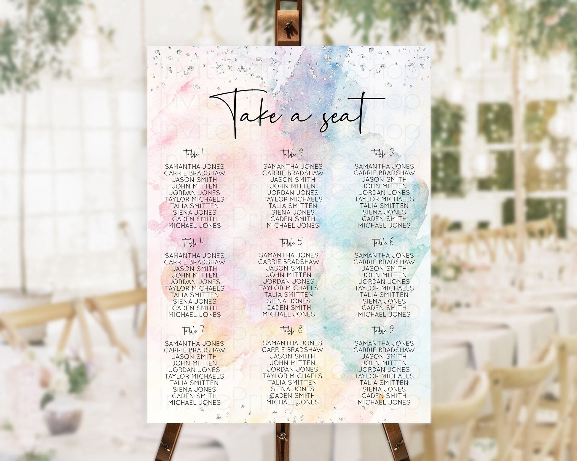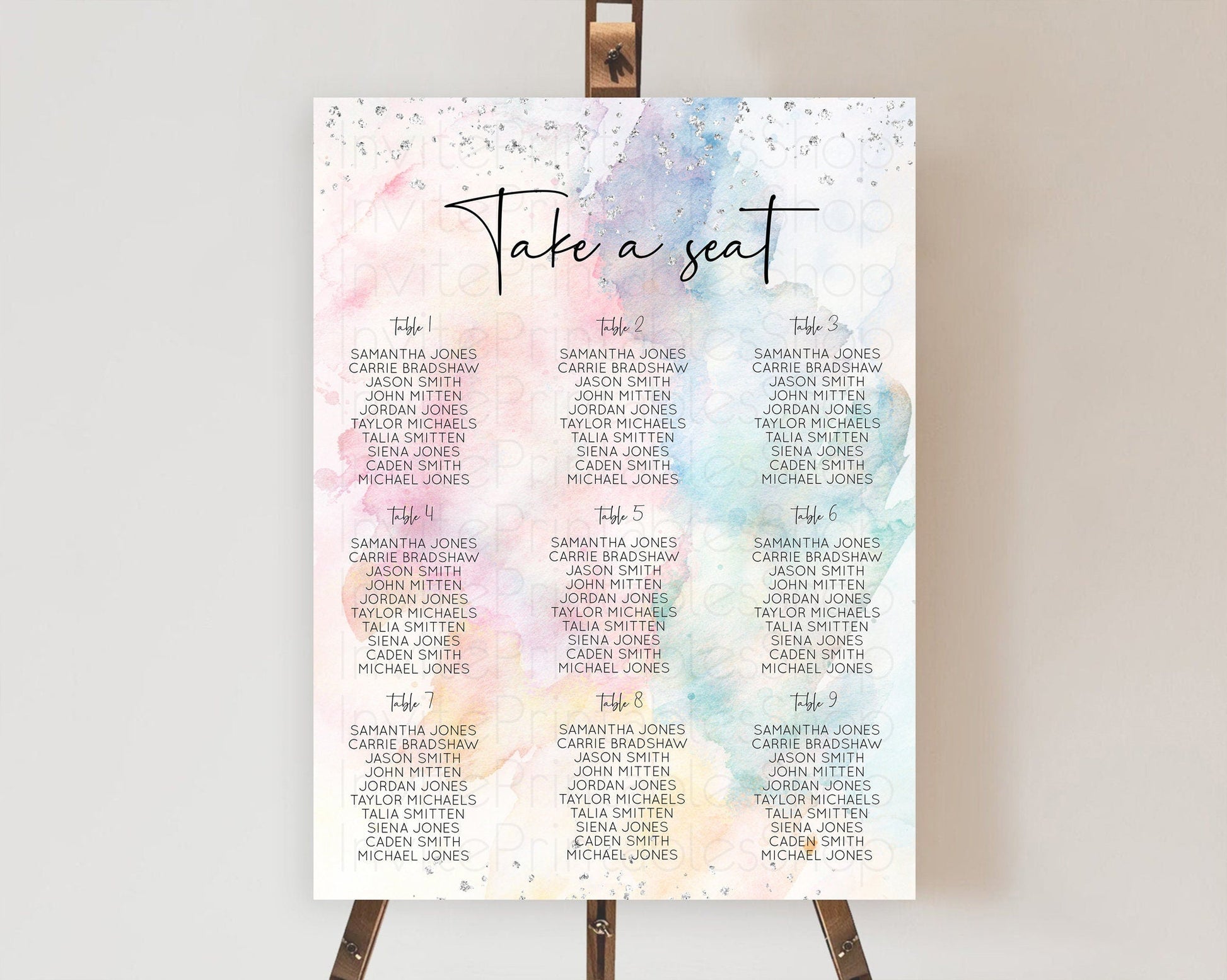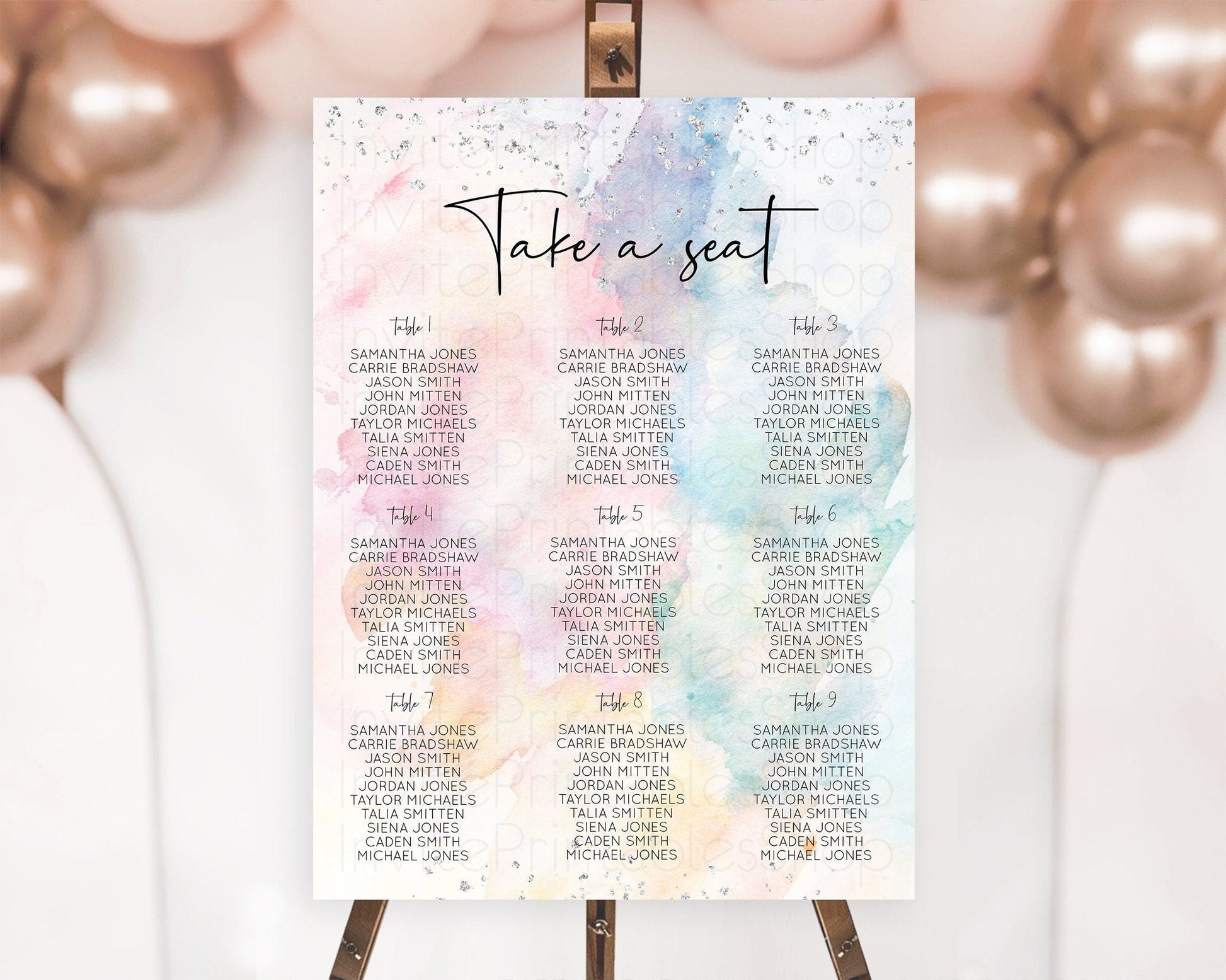 Rainbow Seating Chart Pastel Seating Chart Silver Sprinkles Colorful Pastel Watercolor Seating Sign Ombre Pastel Take A Seat D10945