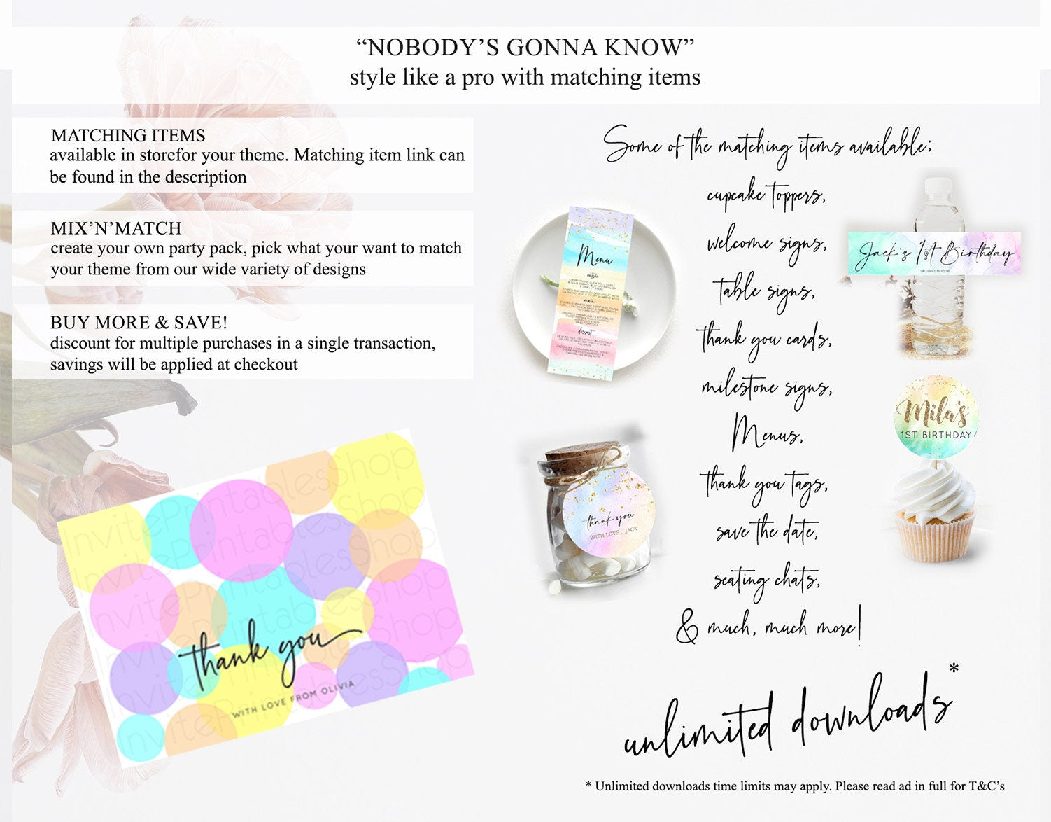 Rainbow Thank You Pastel Thank You Card Pastel Rainbow Birthday Thank You Confetti Colorful Pastel Cards Teacher Thank You Cards D10407