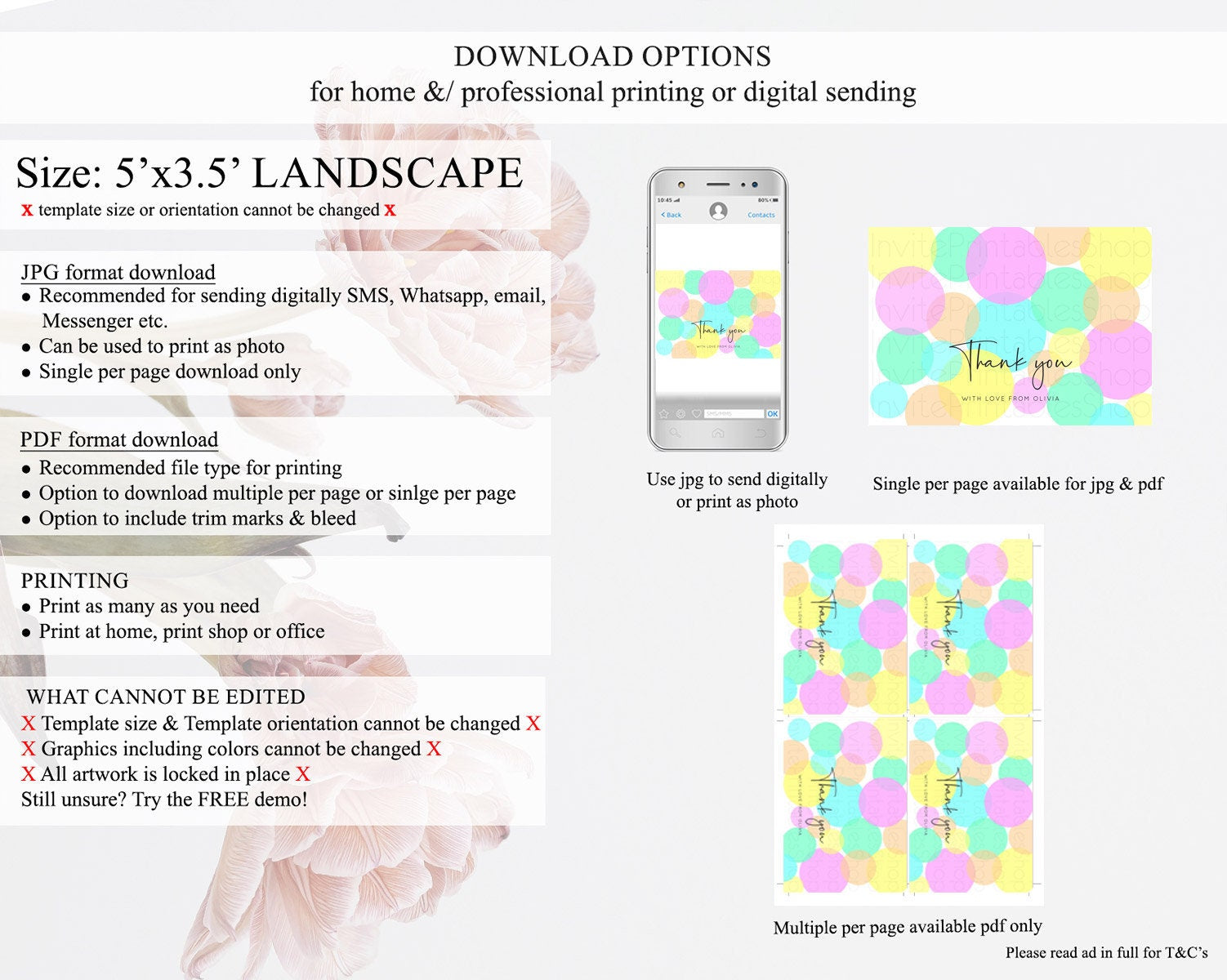 • Template size & orientation cannot be changed. Please use the demo link to confirm this product suits your needs.