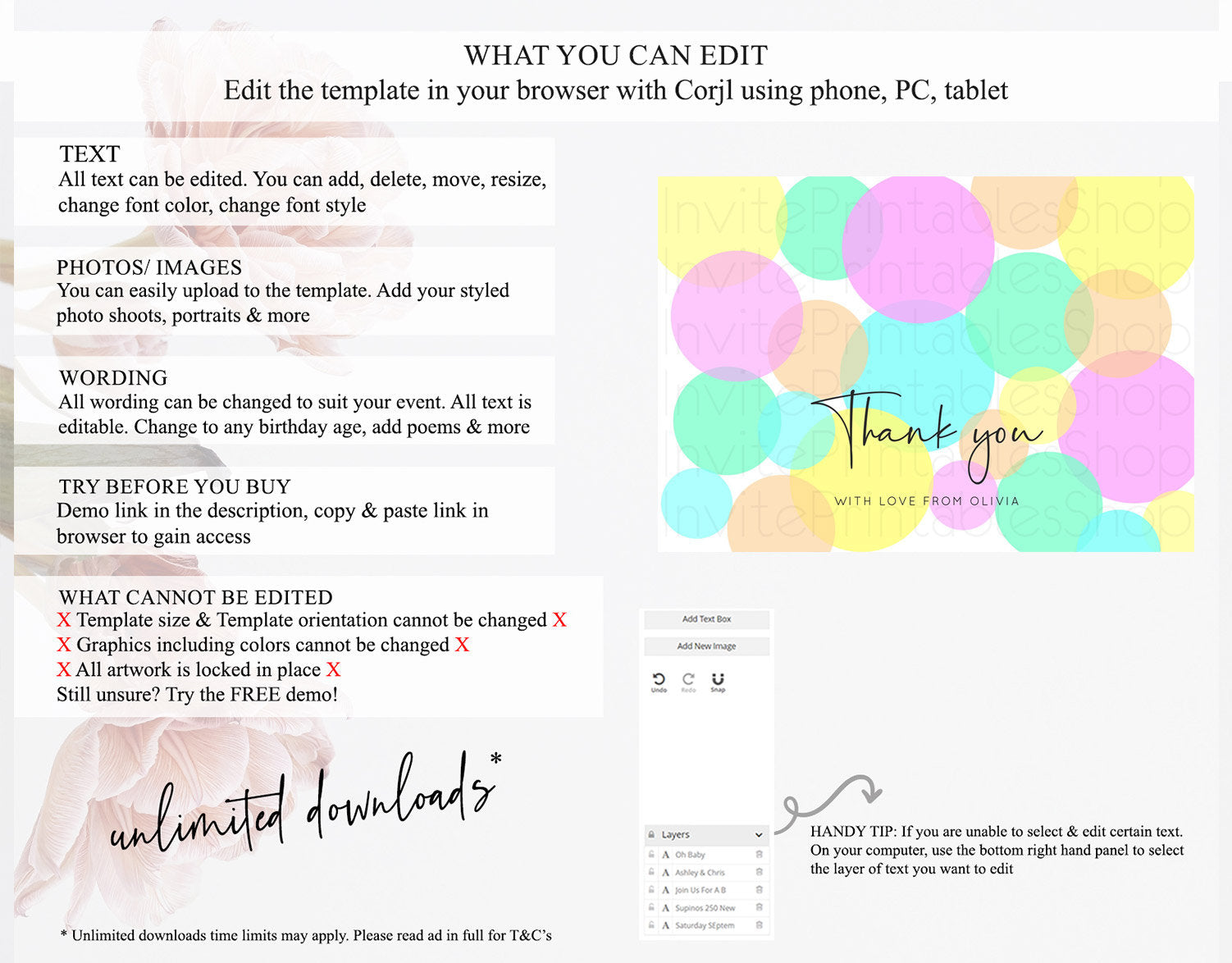 • After purchase, Corjl emails your editing link. Allow up to 15 minutes for delivery.