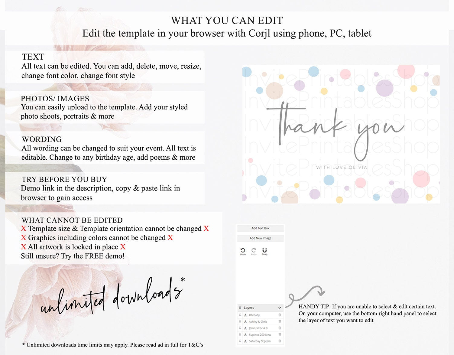 • After purchase, Corjl emails your editing link. Allow up to 15 minutes for delivery.