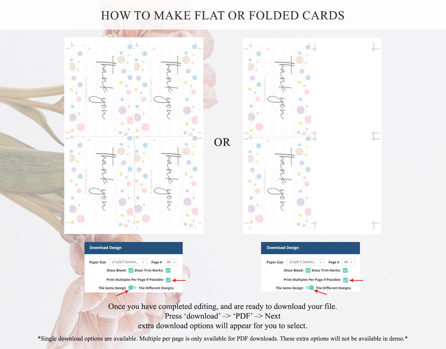 • Custom changes to artwork are not provided on existing templates.