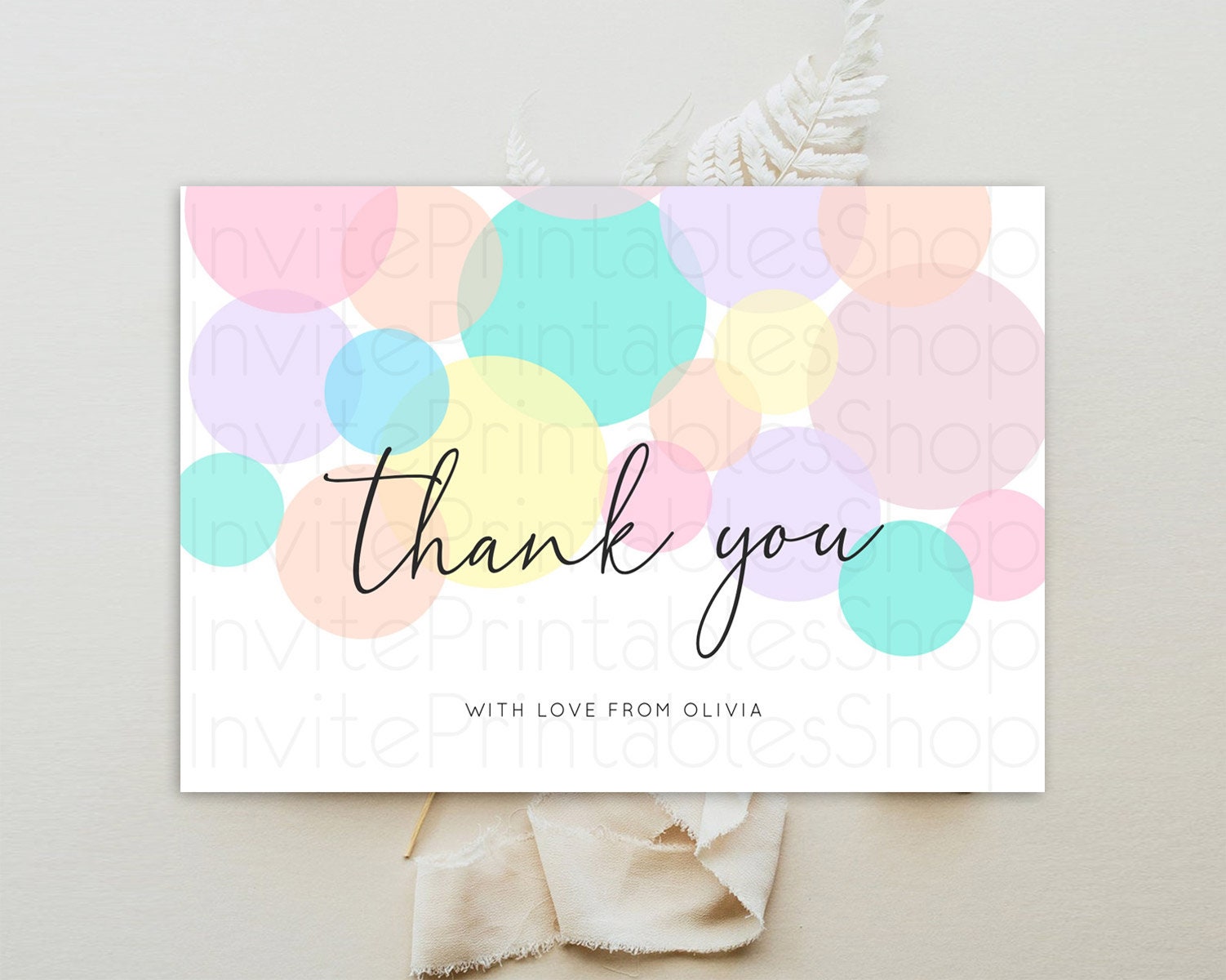 Rainbow Thank You Pastel Thank You Card Pastel Rainbow Birthday Thank You Confetti Colorful Pastel Cards Teacher Thank You Cards D10784