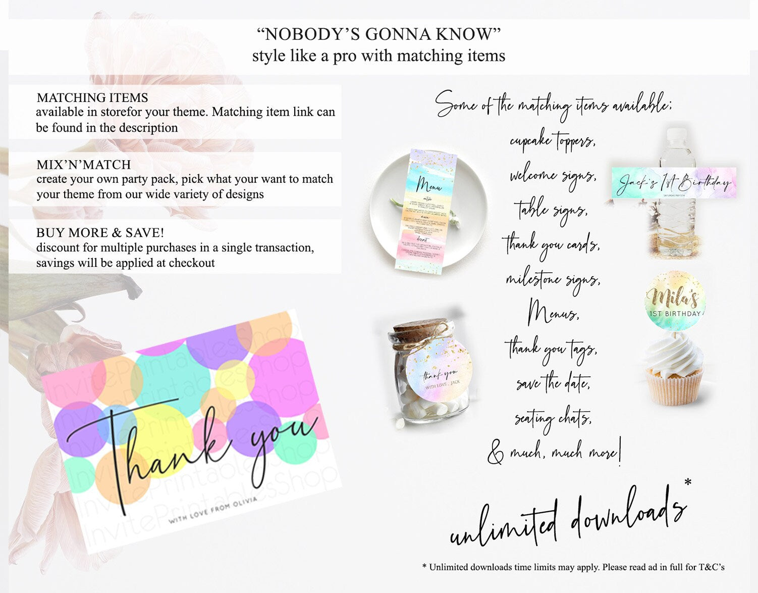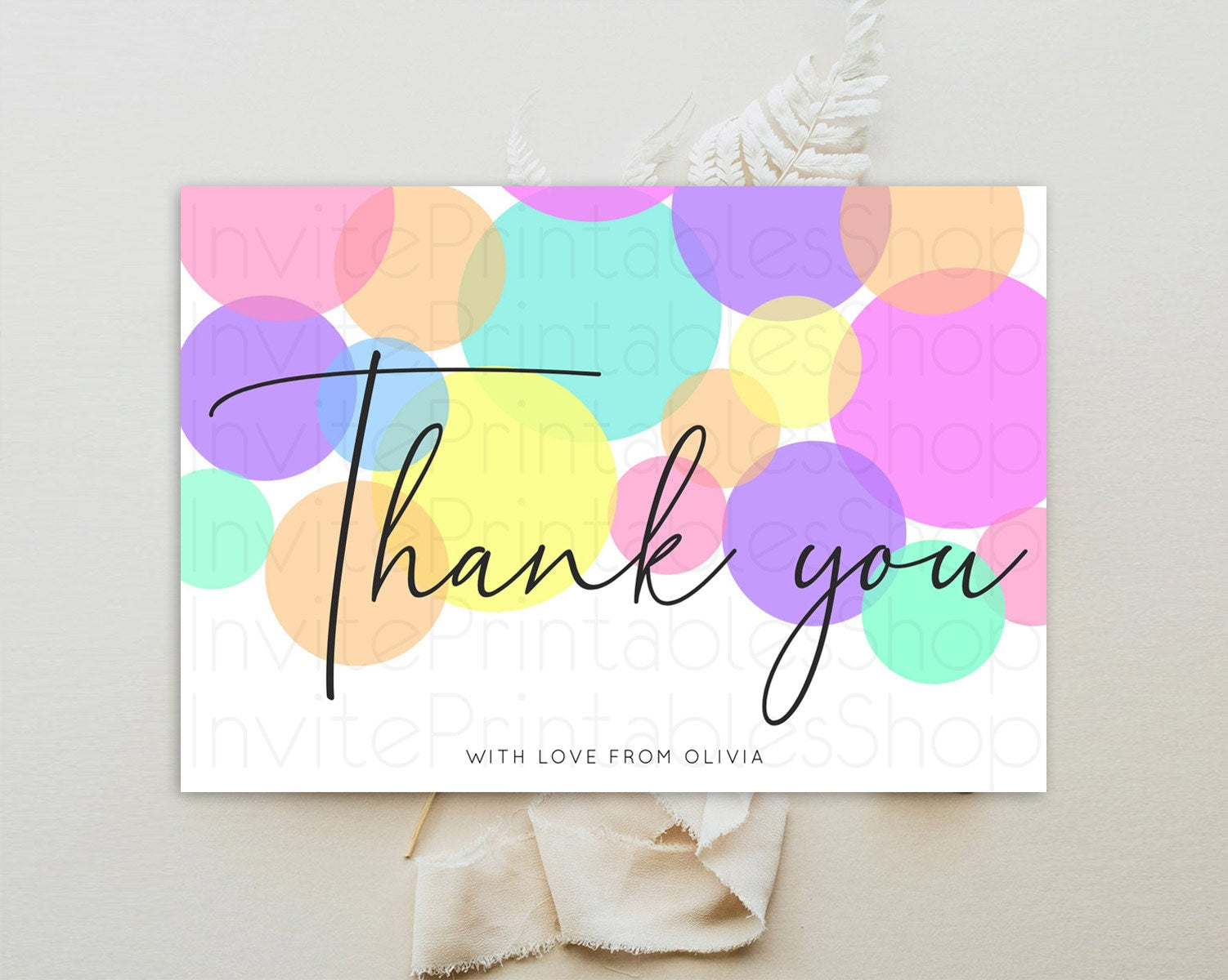 Rainbow Thank You Pastel Thank You Card Pastel Rainbow Birthday Thank You Confetti Colorful Pastel Cards Teacher Thank You Cards D10888