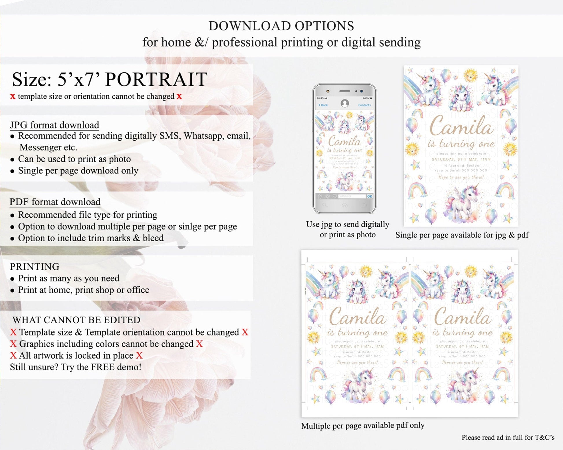 Rainbow Unicorn Birthday Invitation Pastel Birthday Invitation Magical Unicorn Party Theme Pastel Stars Heart Sun 1st 2nd Birthday D23372