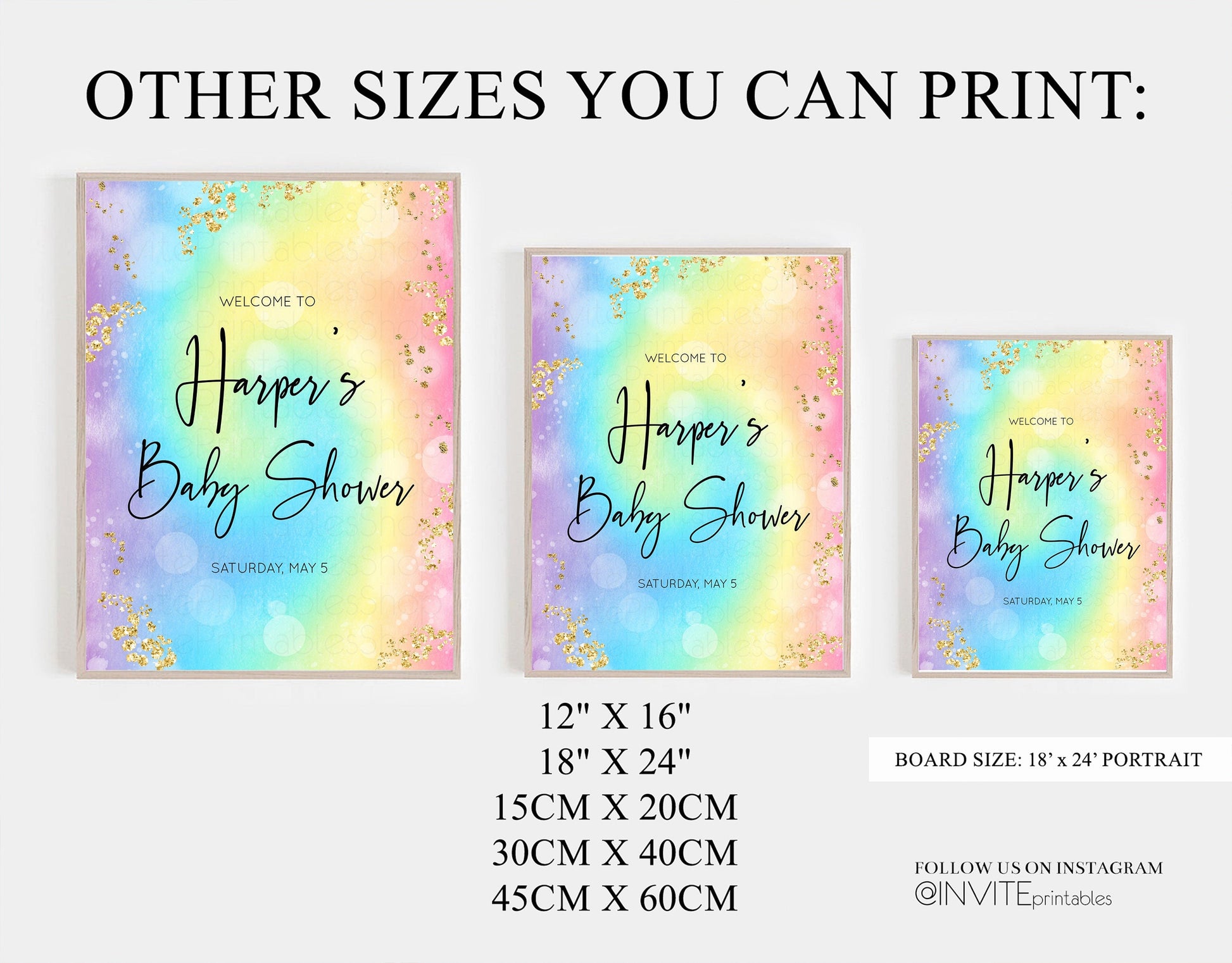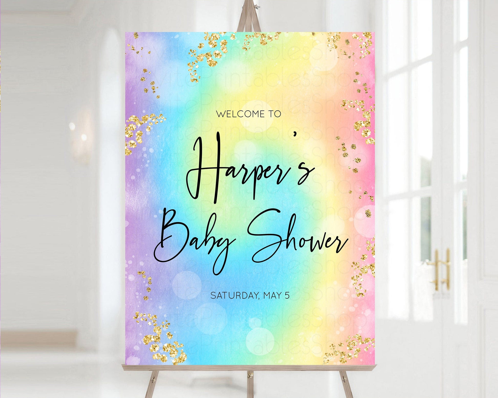 Rainbow Welcome Board Pastel Rainbow Baby Shower Colorful Glitter Sprinkles Baby Shower Sign Colorful POP Welcome Poster Gender Neutral t571