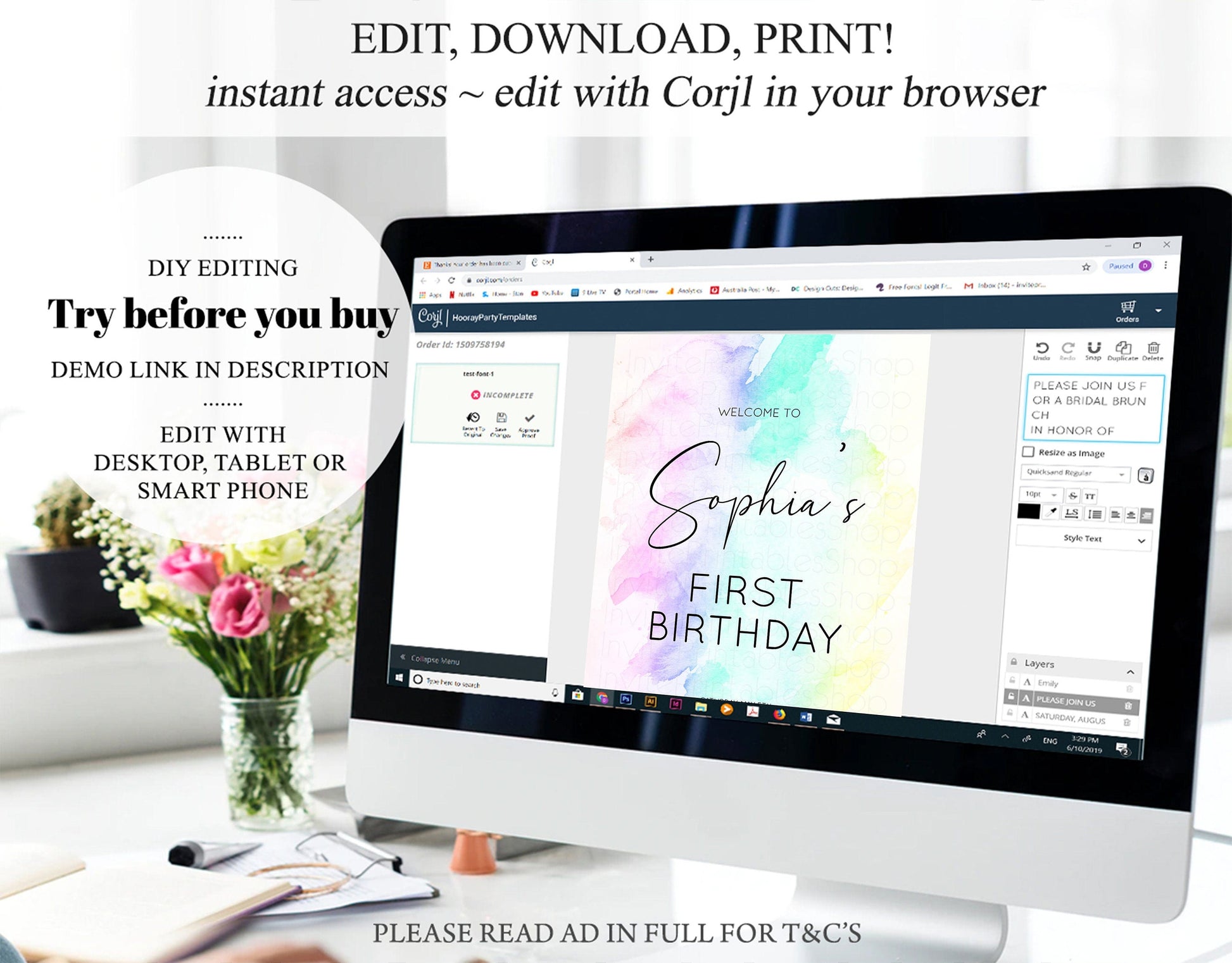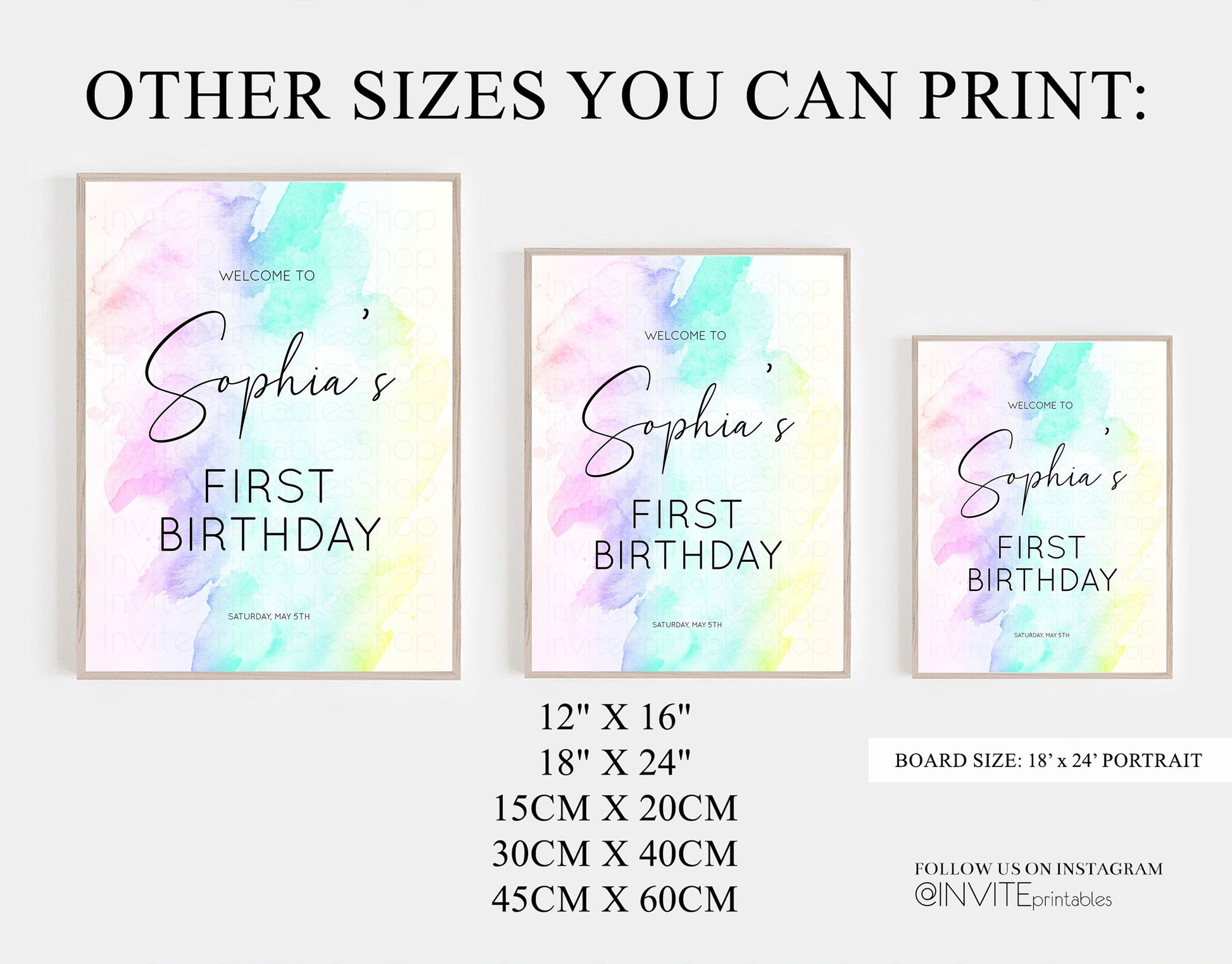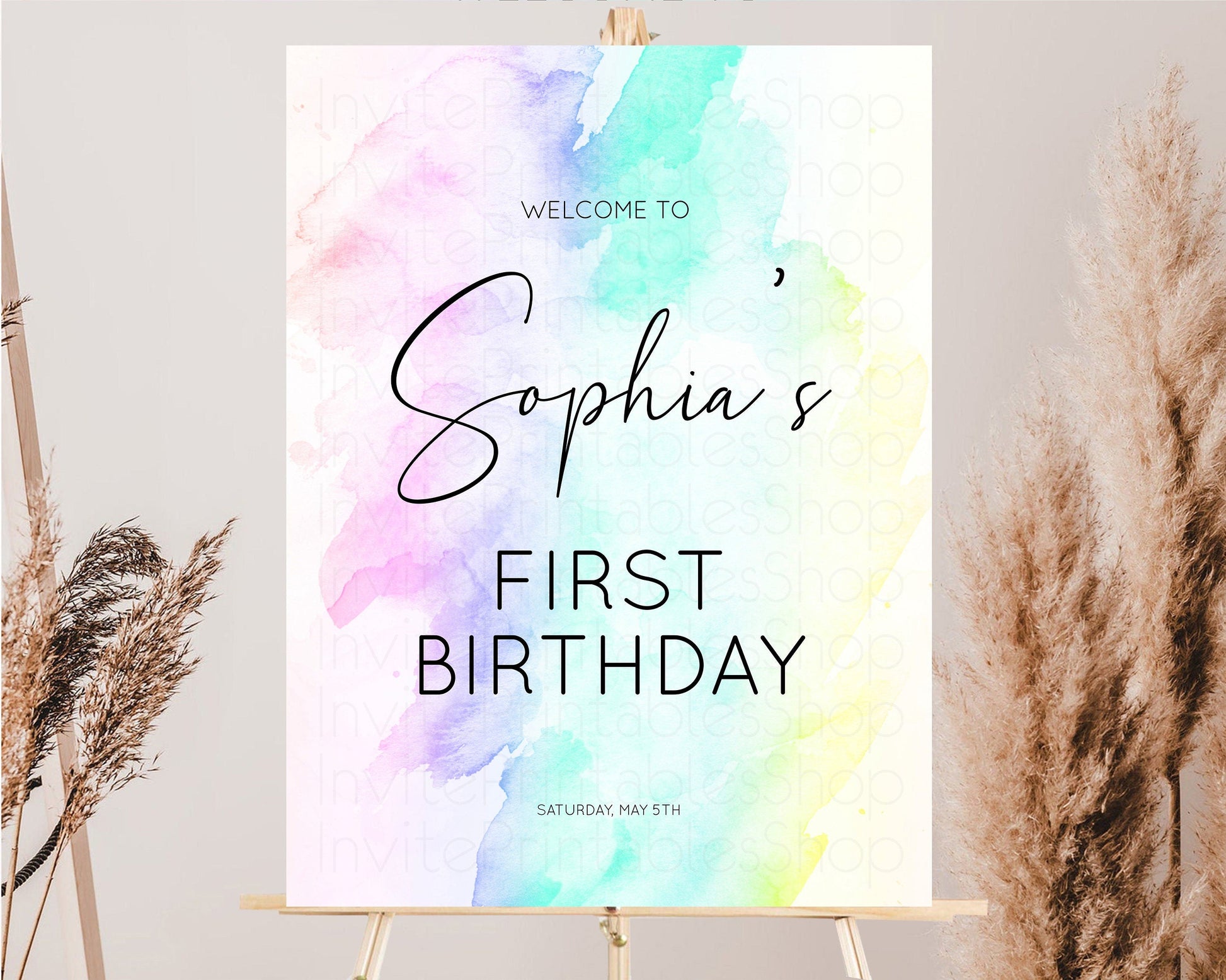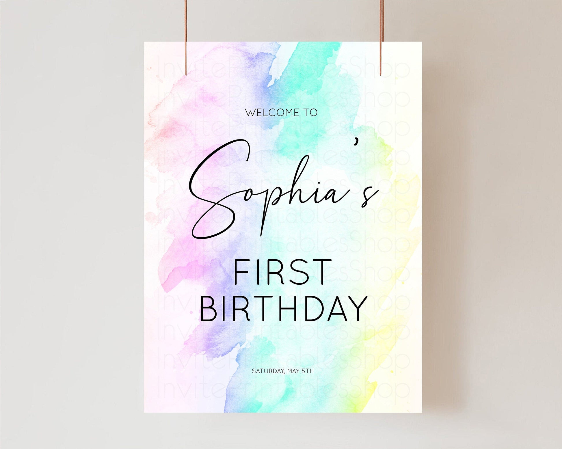 Rainbow Welcome Sign Pastel 1st Birthday Sign Ombre Watercolor Birthday Welcome Sign Pastel Splash Welcome Sign Glitter Sprinkle Sign C210