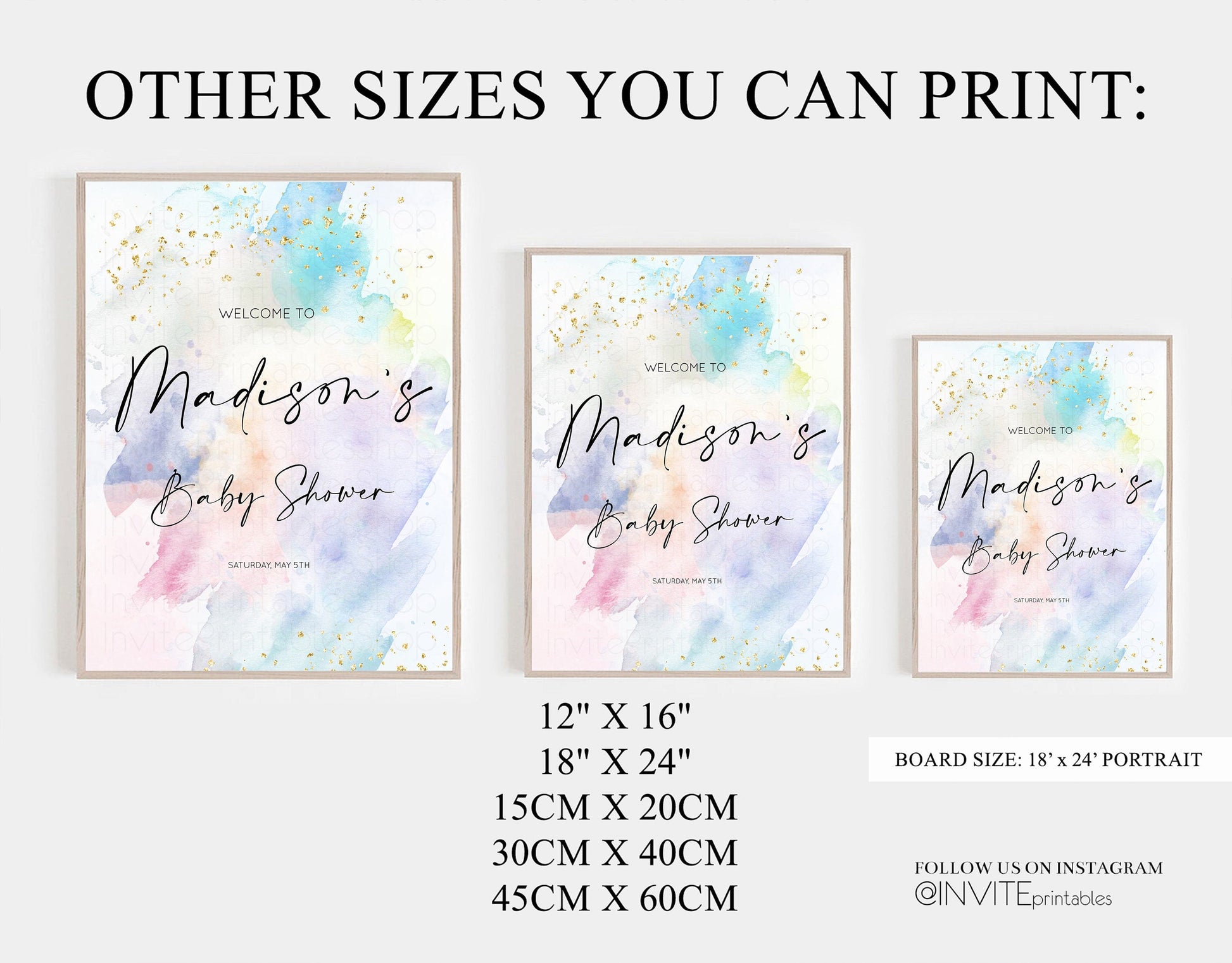 Rainbow Welcome Sign Pastel Splash Baby Shower Board Colorful Watercolor Baby Shower Board Ombre Pastel Welcome Sign Glitter Poster T487