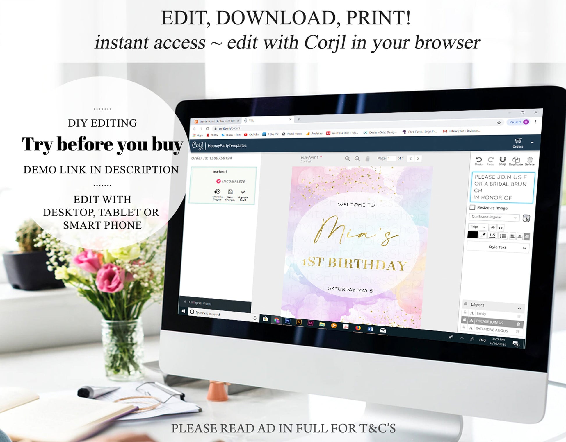 • You edit/ DIY editing. Edit online with Corjl in your browser using your desktop or smartphone