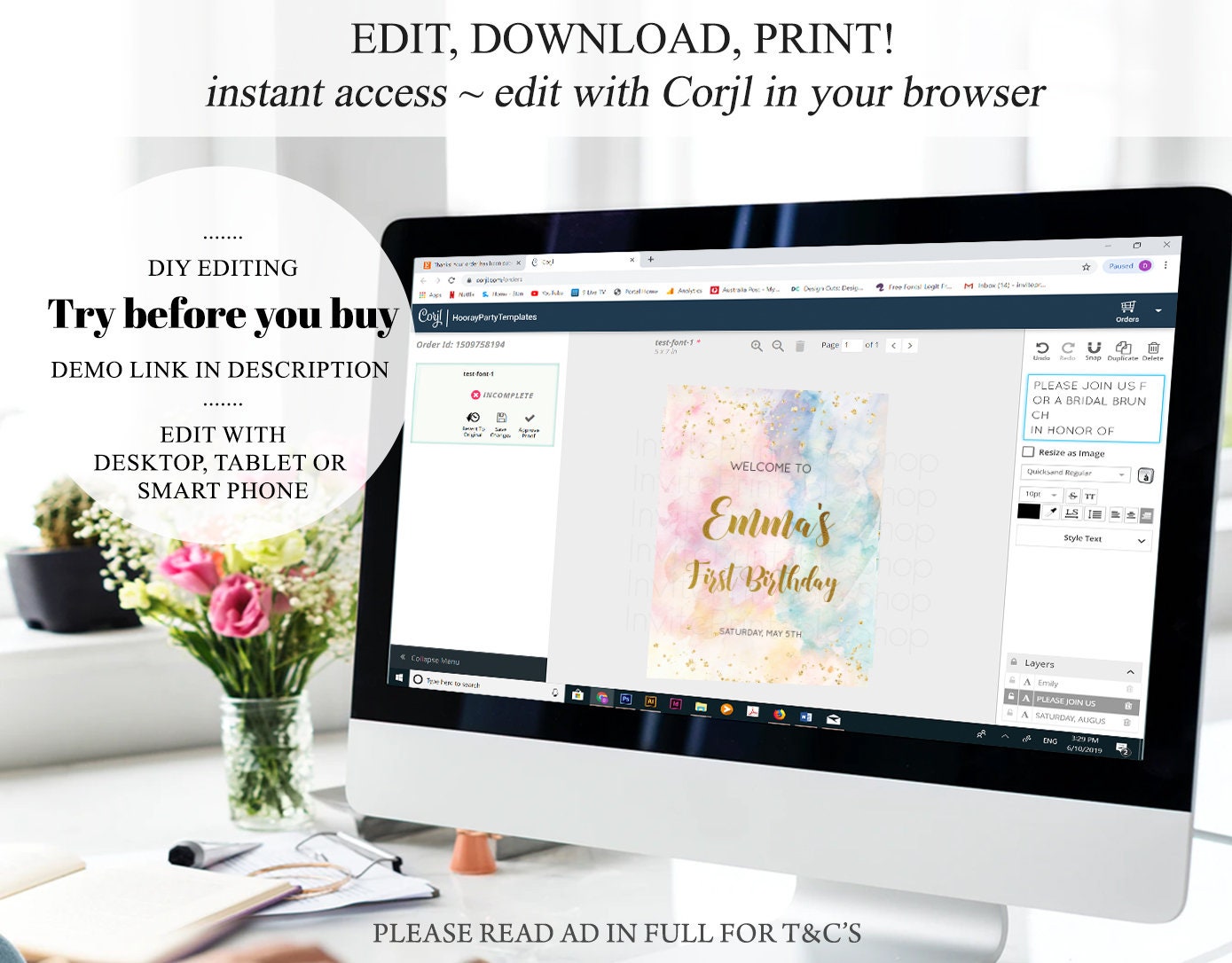 • You edit/ DIY editing. Edit online with Corjl in your browser using your desktop or smartphone
