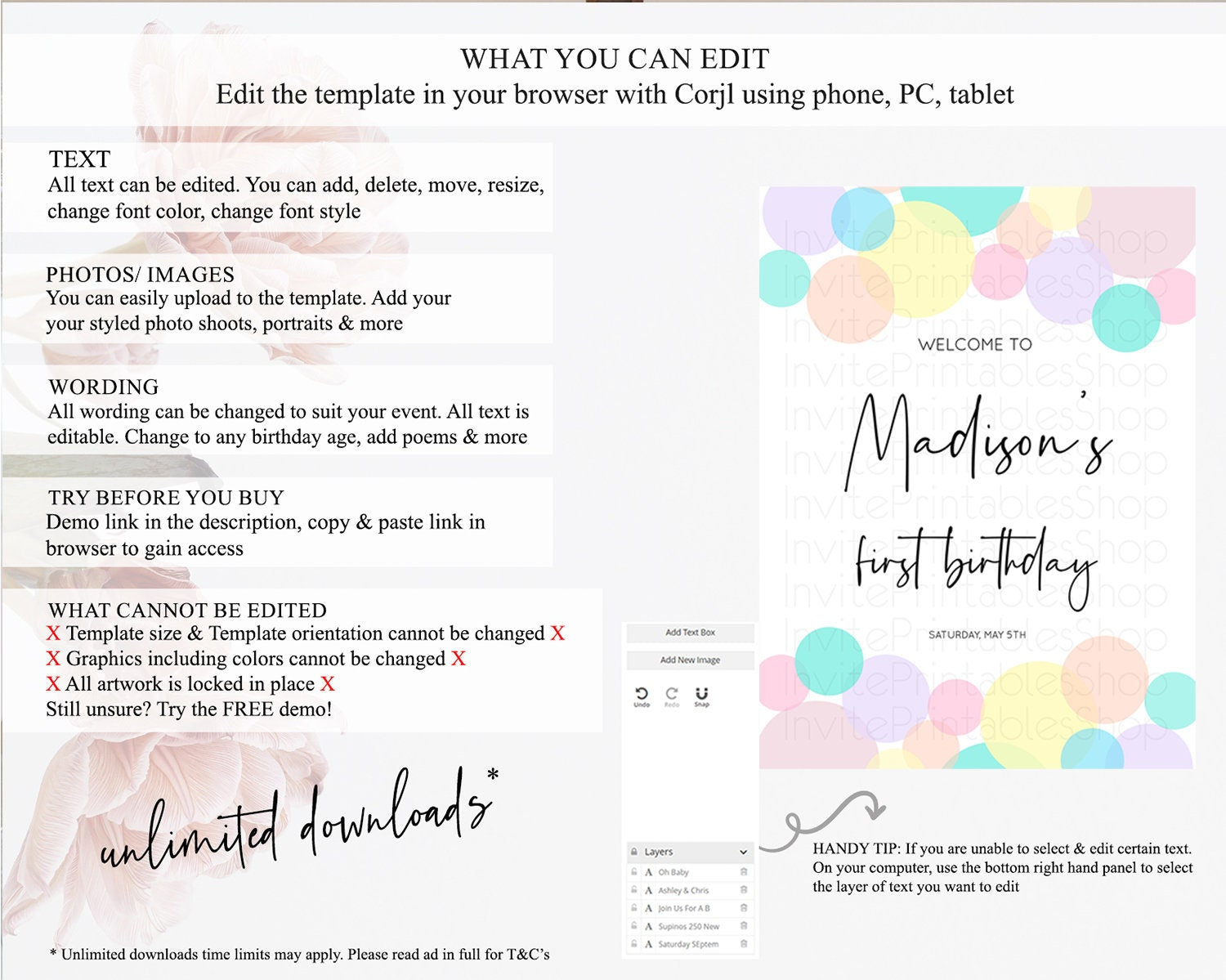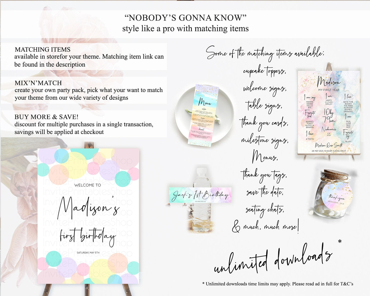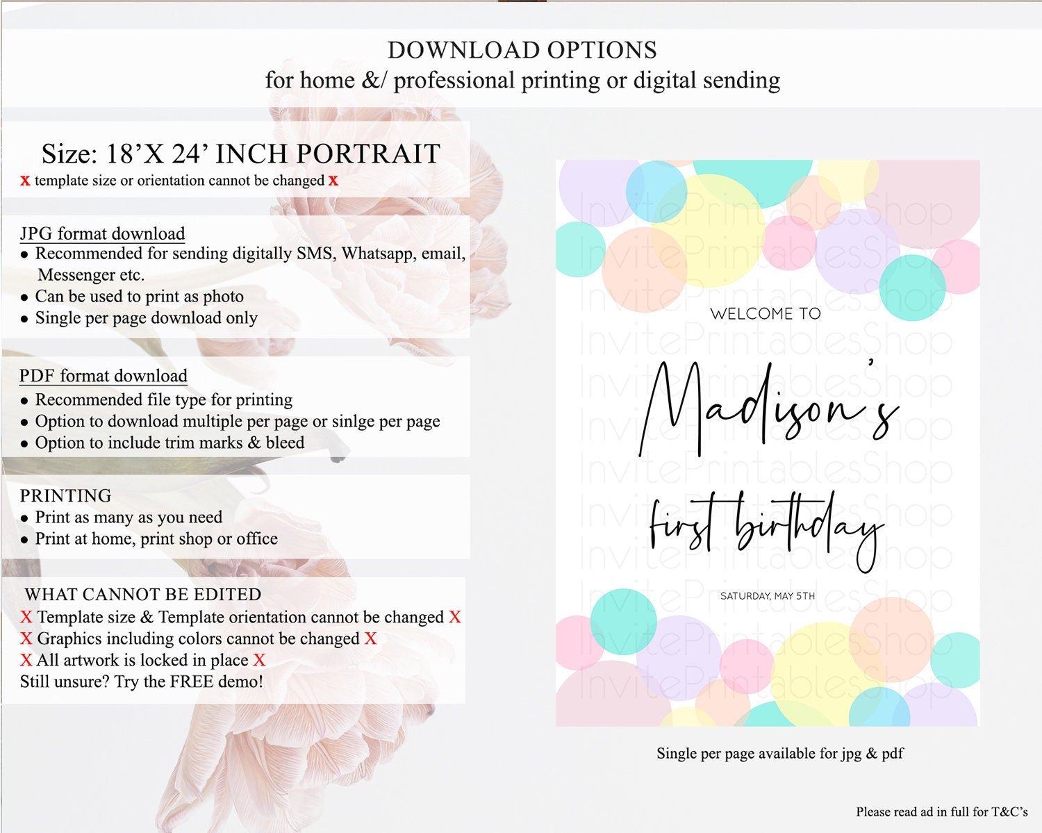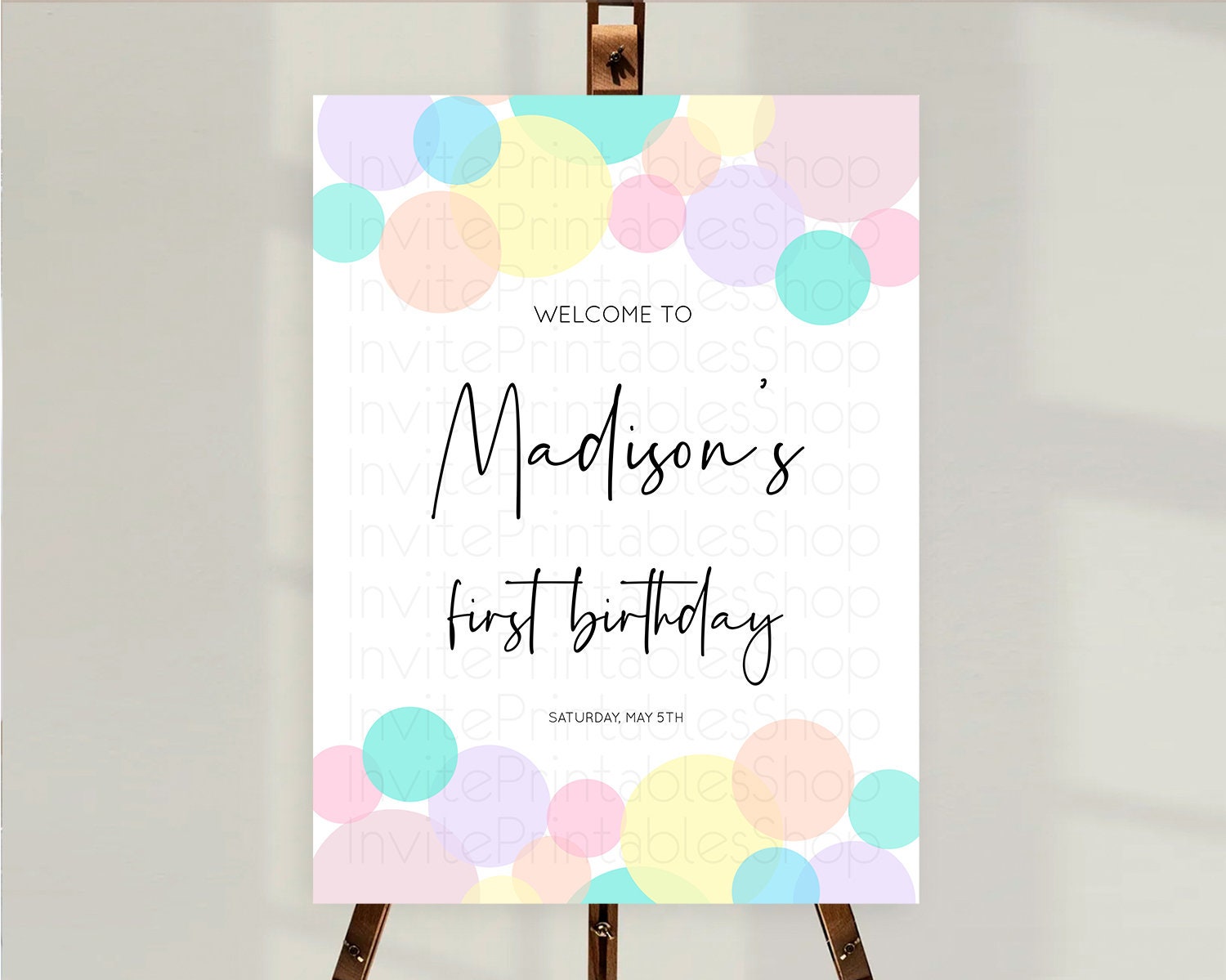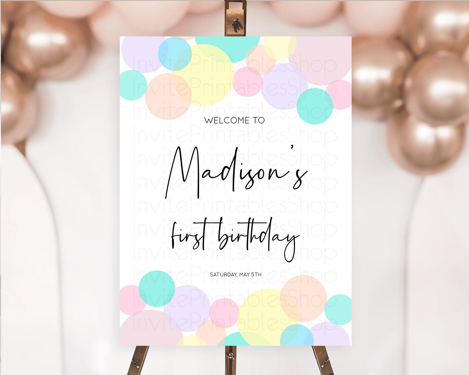 Rainbow Welcome Sign Pastel Welcome Board Pastel Rainbow Confetti Welcome Sign Colorful Bubbles Pastel First Birthday Welcome Sign D10223