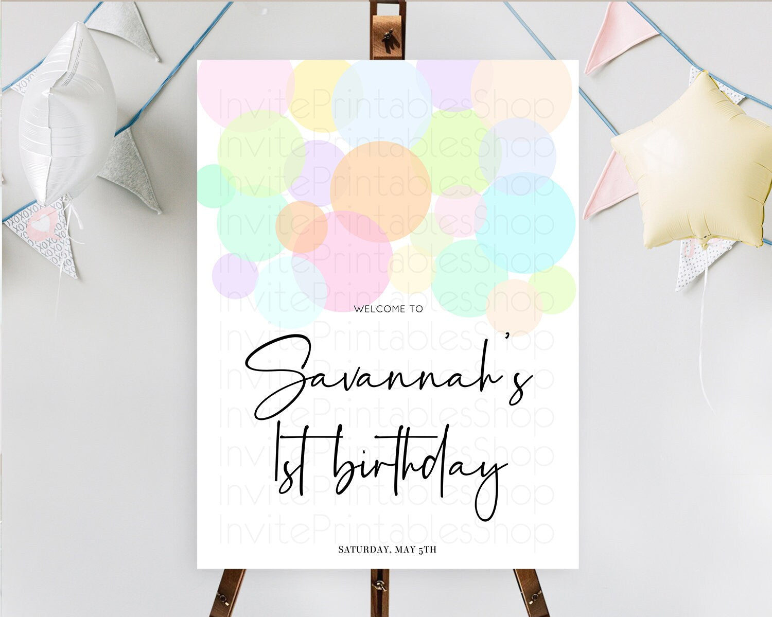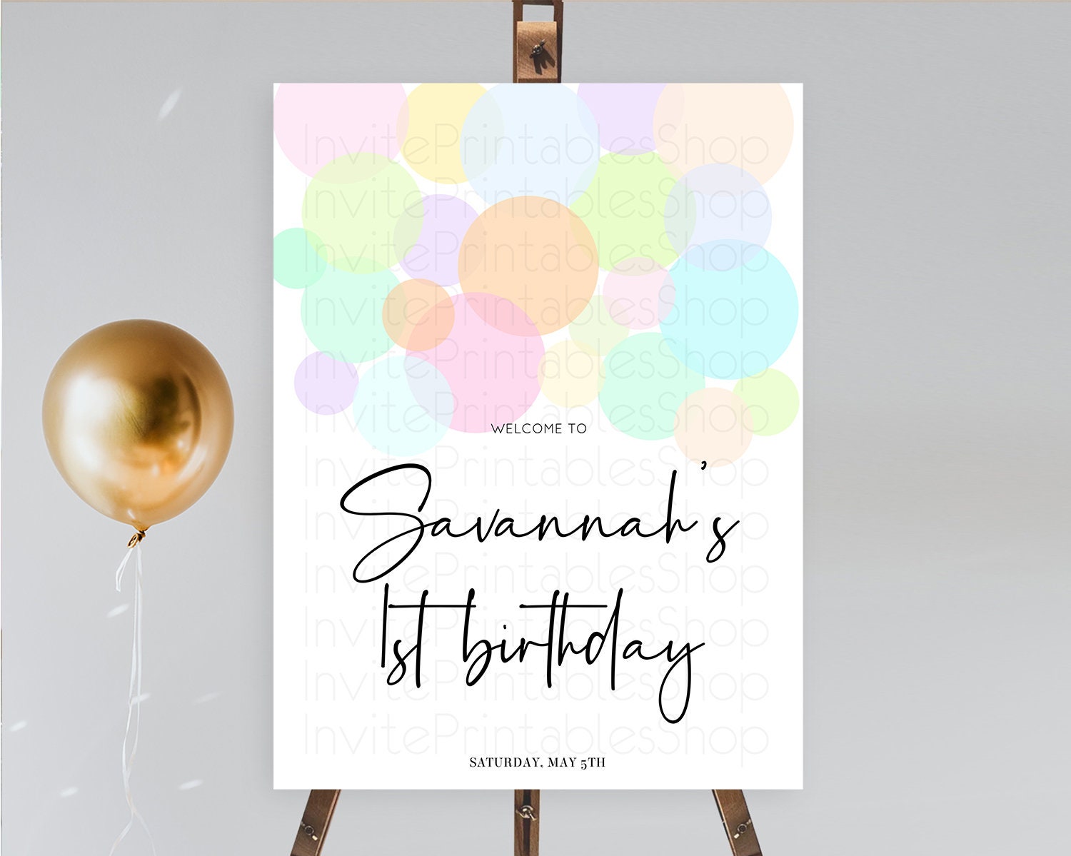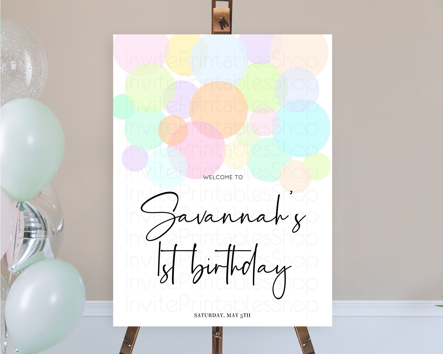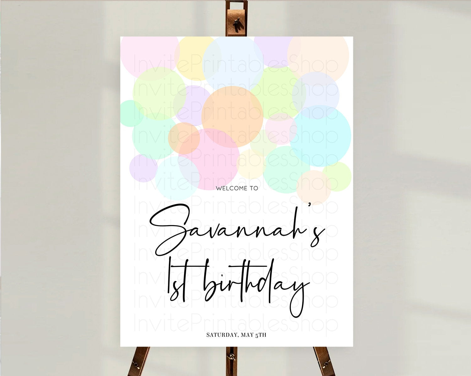 Rainbow Welcome Sign Pastel Welcome Board Pastel Rainbow Confetti Welcome Sign Colorful Bubbles Pastel First Birthday Welcome Sign D10226