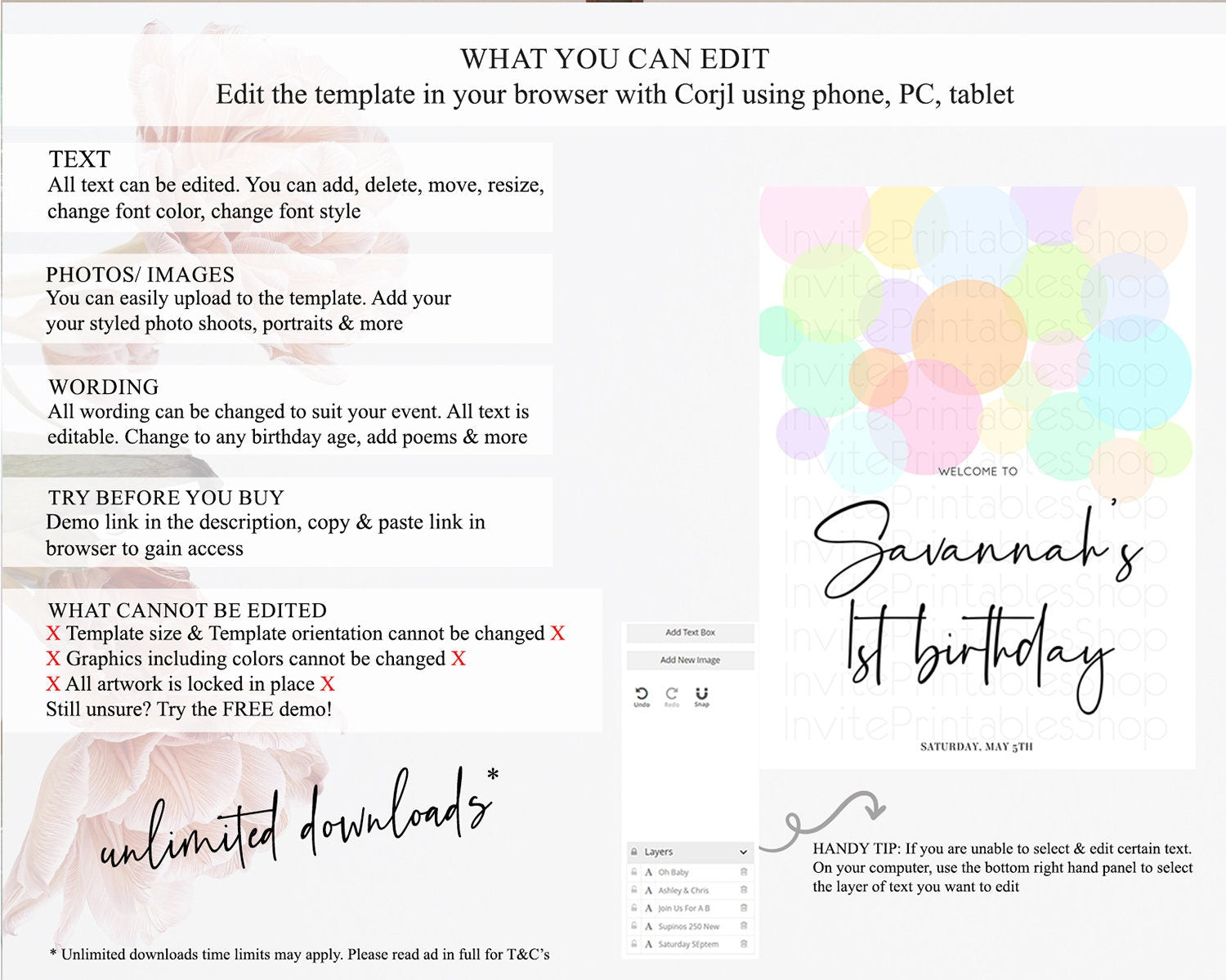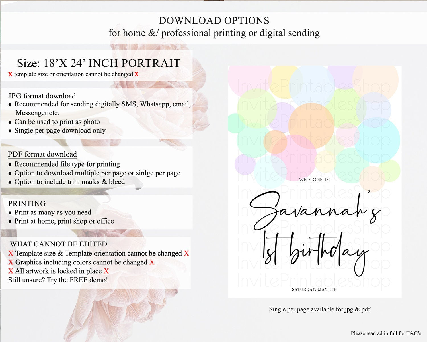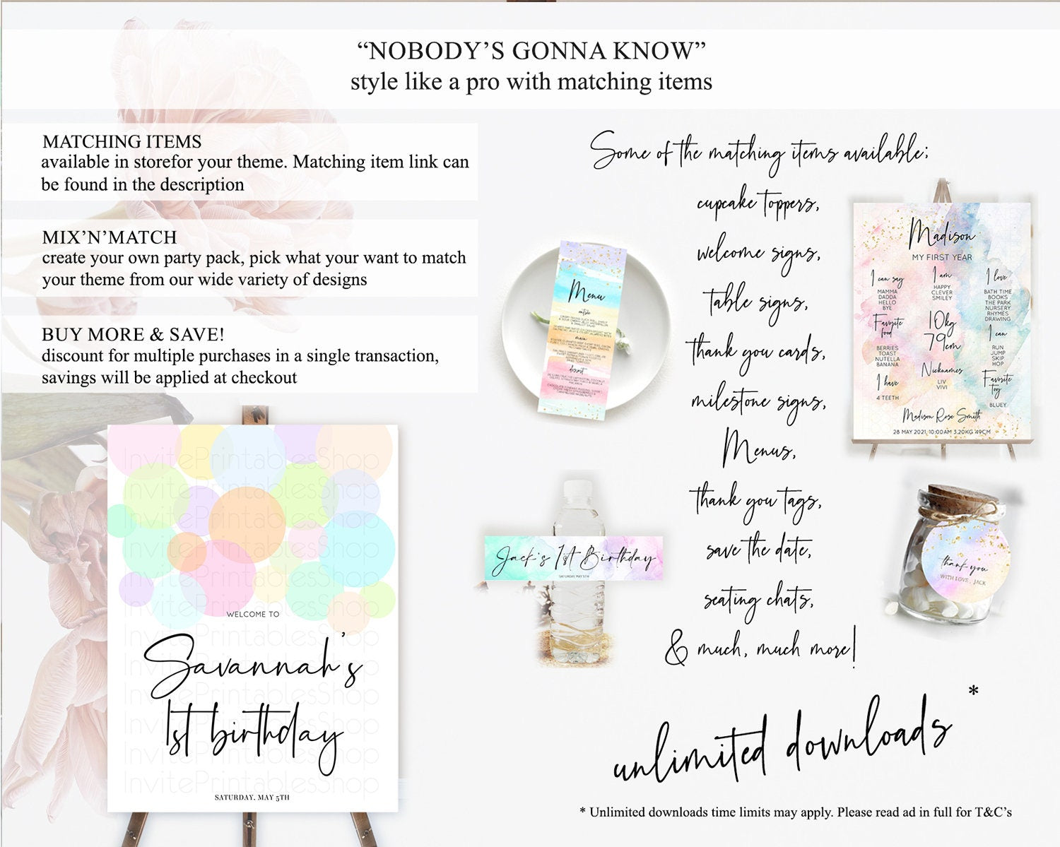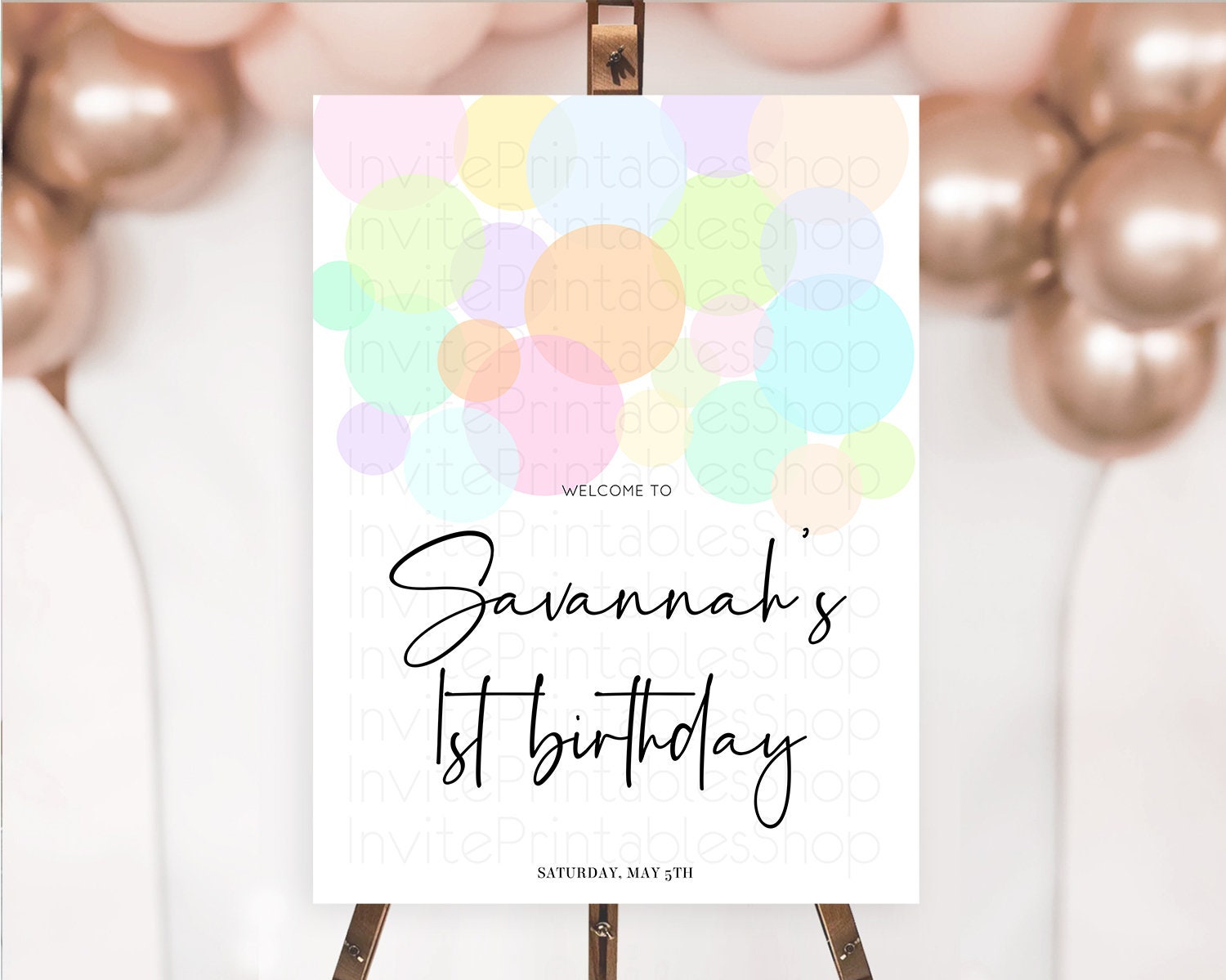 Rainbow Welcome Sign Pastel Welcome Board Pastel Rainbow Confetti Welcome Sign Colorful Bubbles Pastel First Birthday Welcome Sign D10226