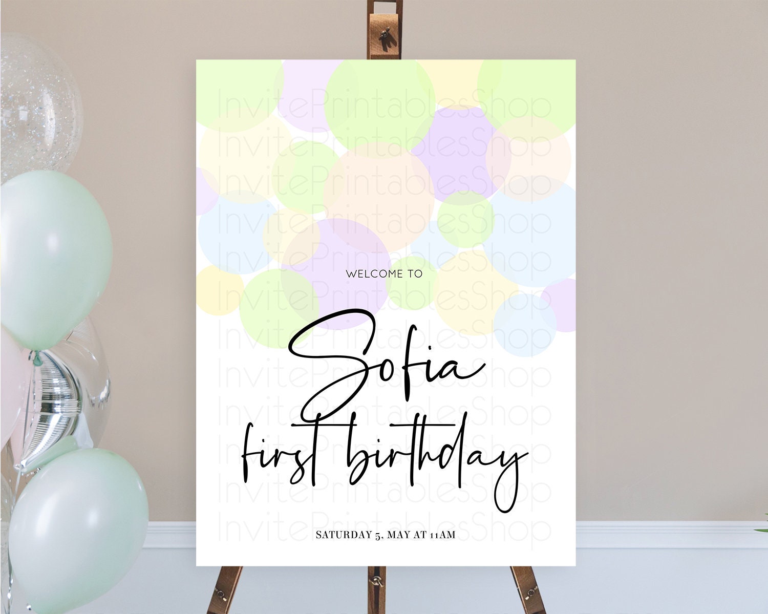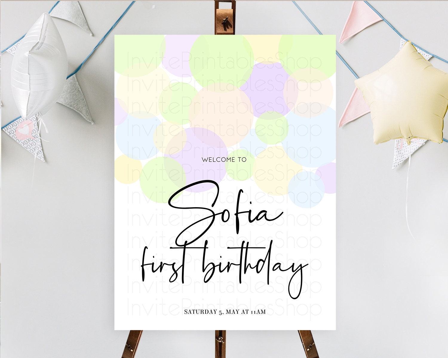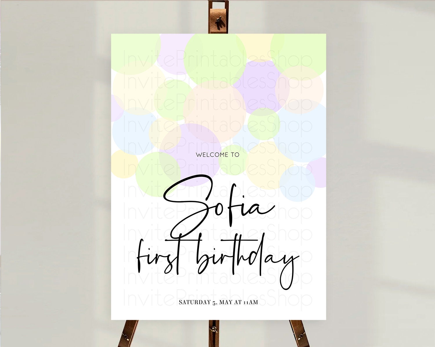 Rainbow Welcome Sign Pastel Welcome Board Pastel Rainbow Confetti Welcome Sign Colorful Bubbles Pastel First Birthday Welcome Sign D10228
