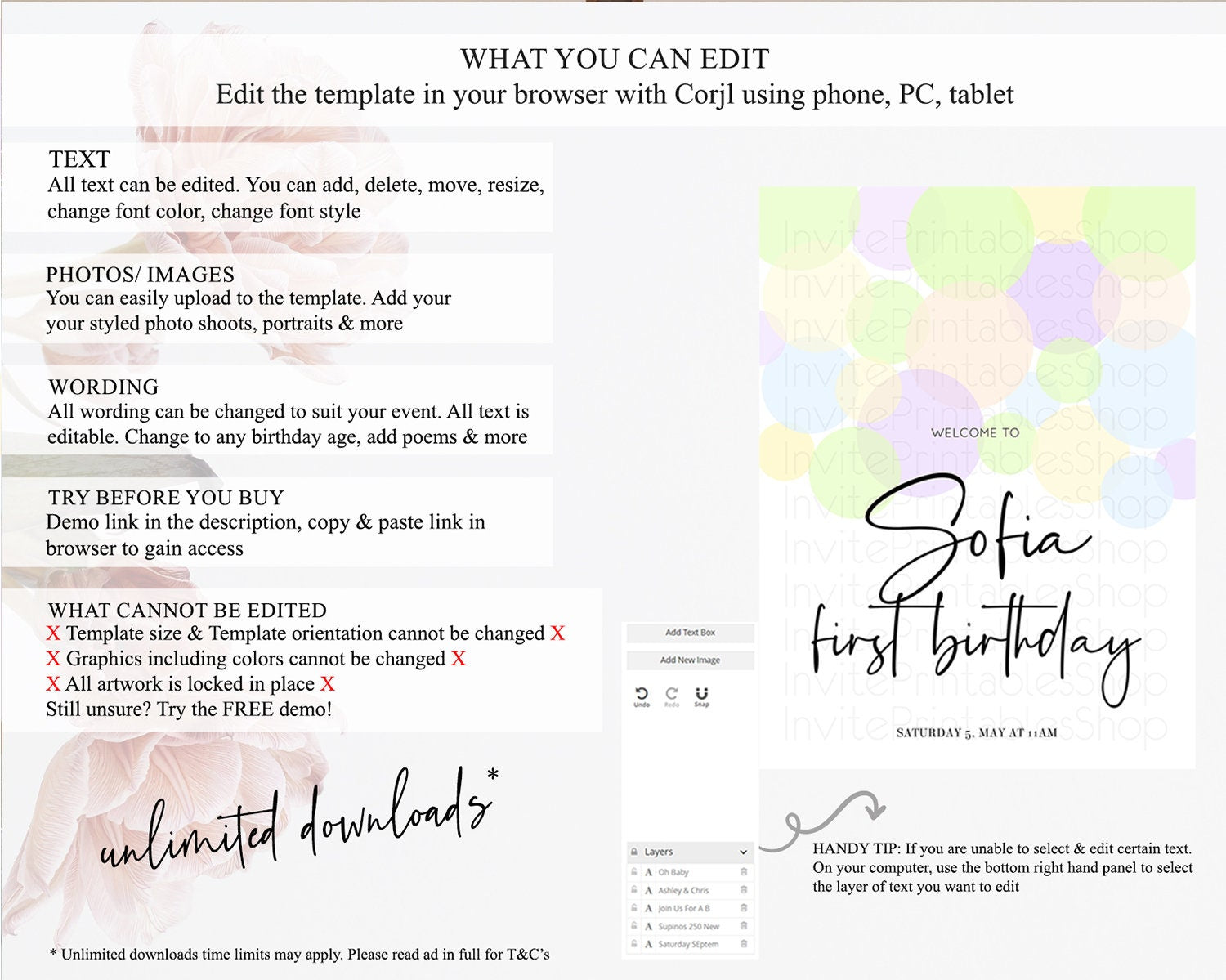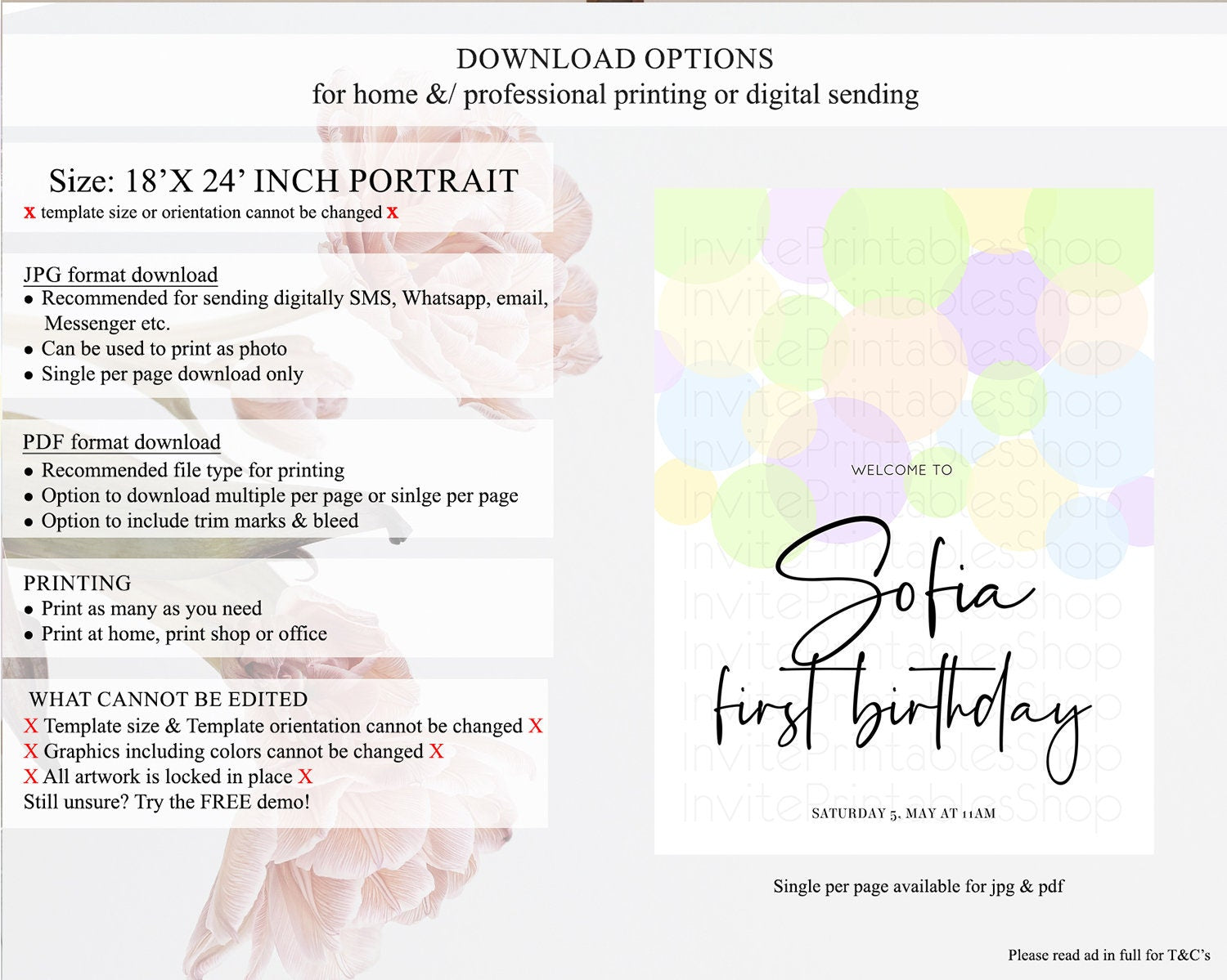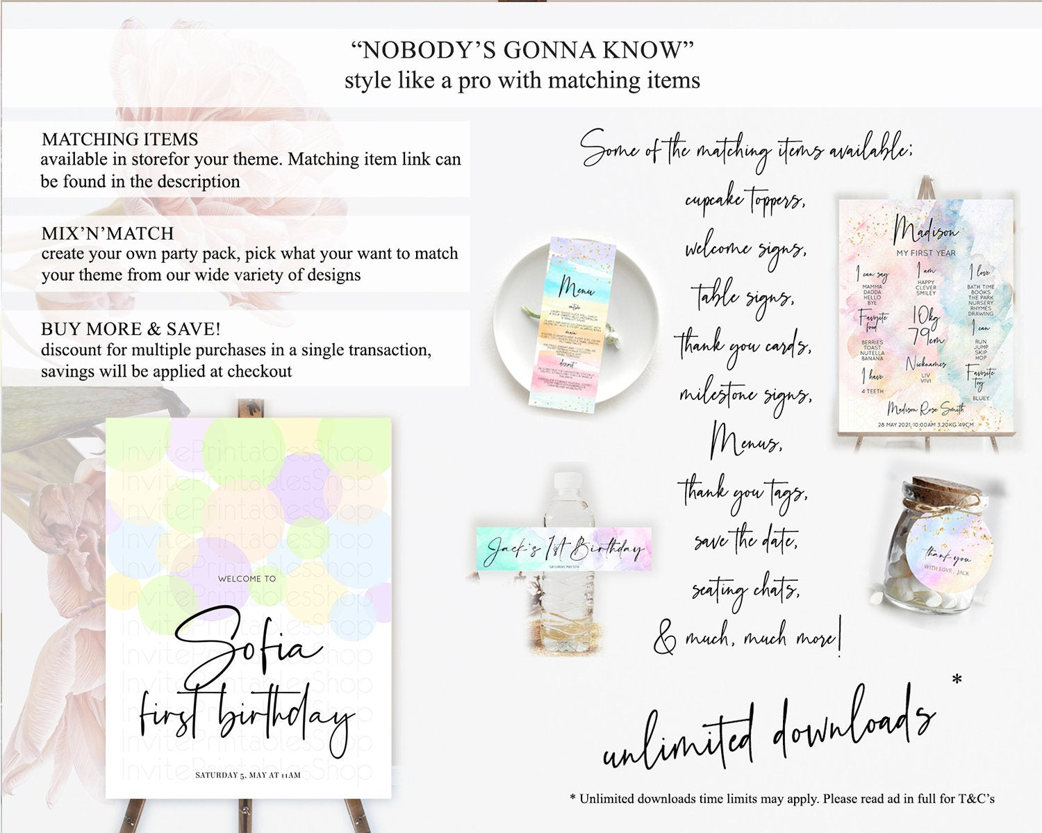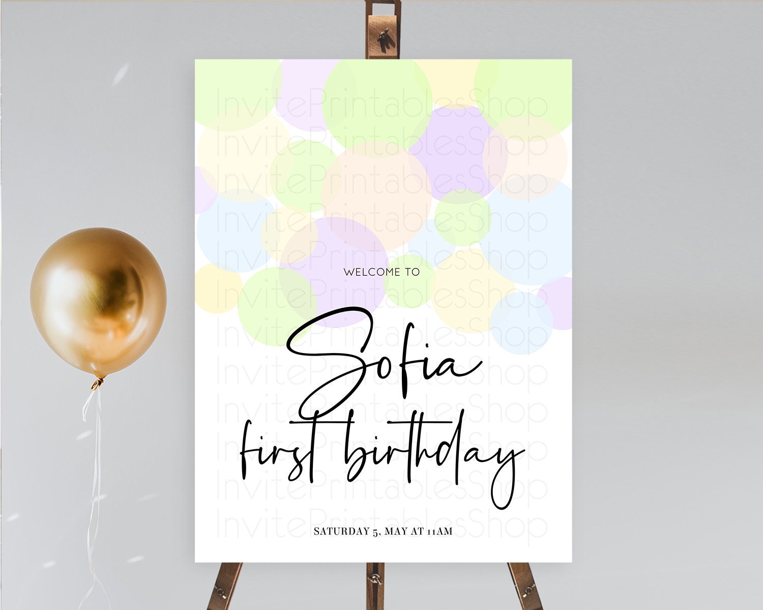 Rainbow Welcome Sign Pastel Welcome Board Pastel Rainbow Confetti Welcome Sign Colorful Bubbles Pastel First Birthday Welcome Sign D10228