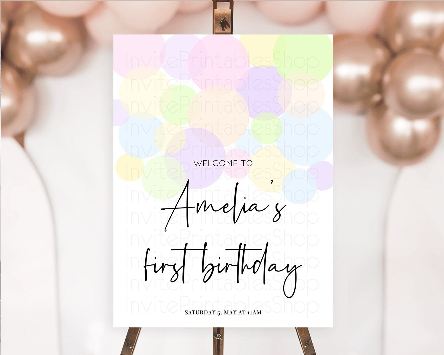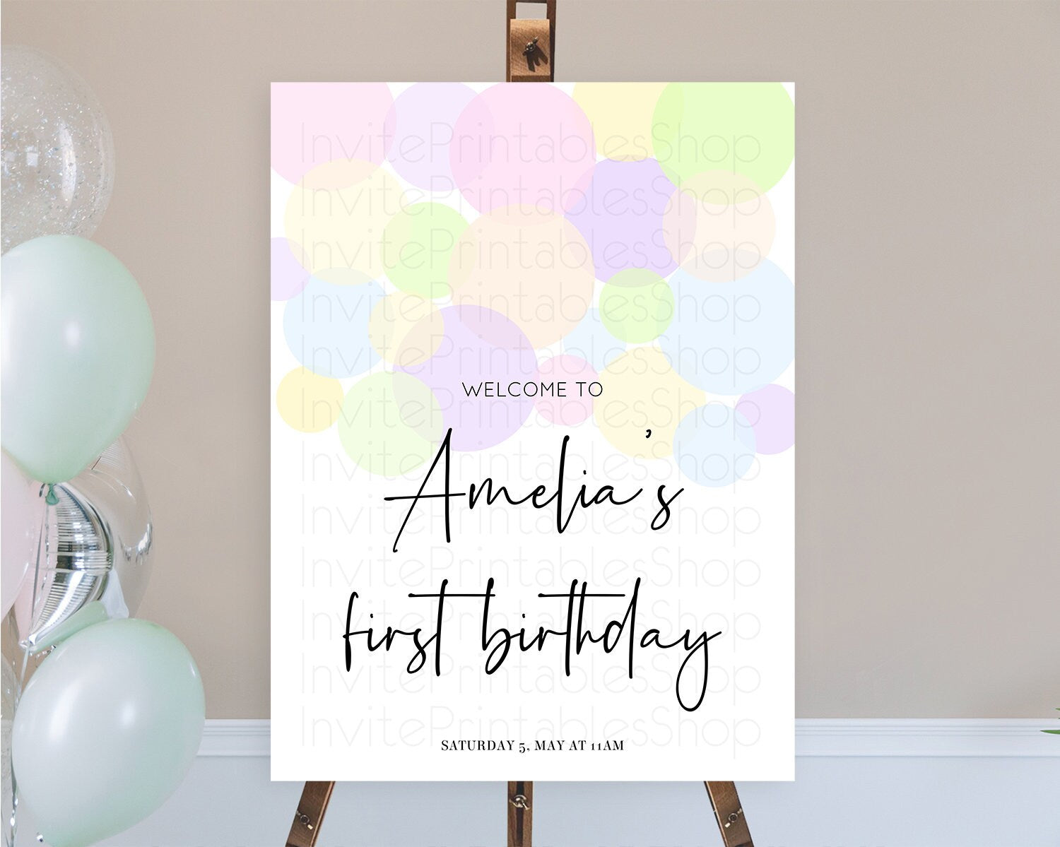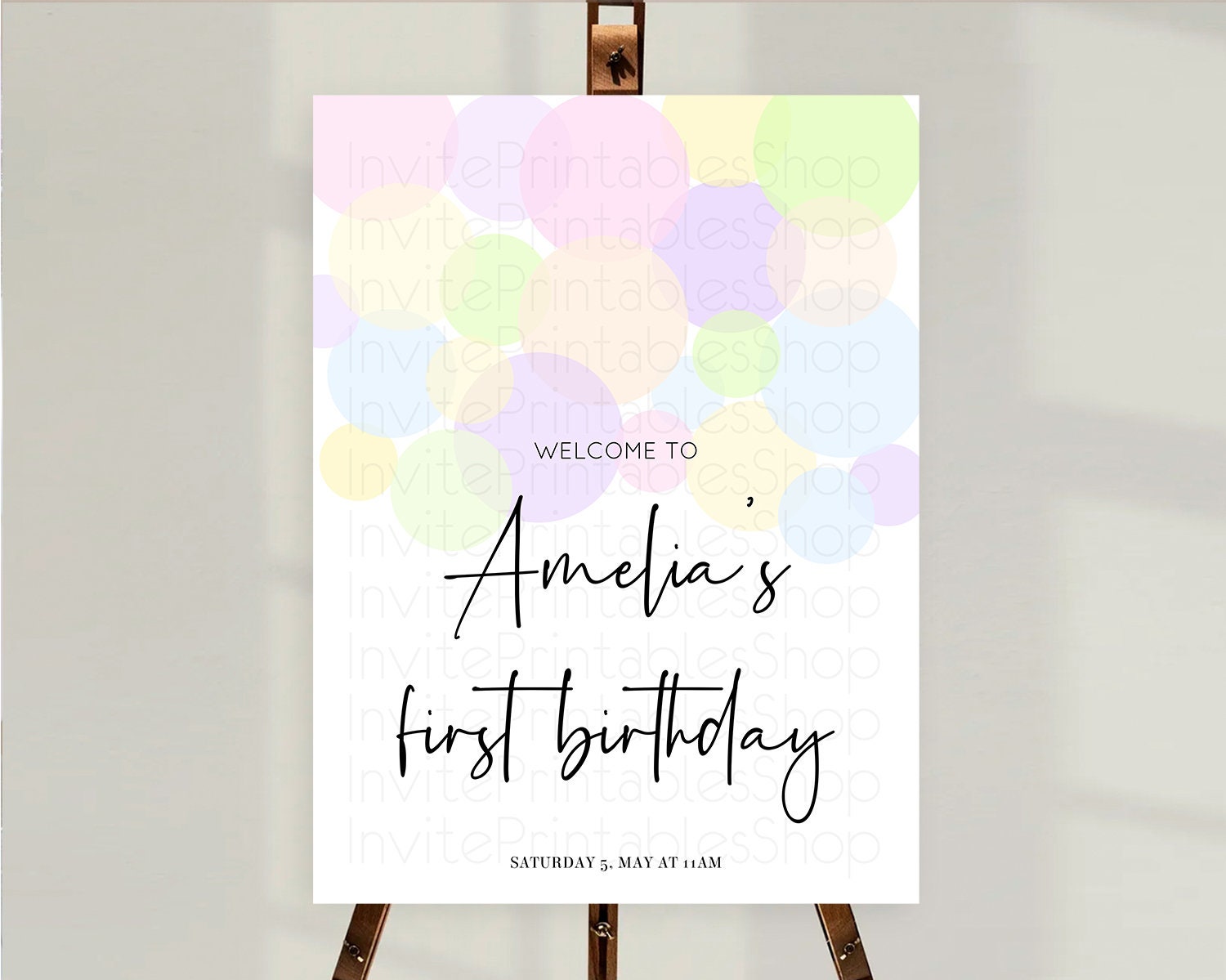 Rainbow Welcome Sign Pastel Welcome Board Pastel Rainbow Confetti Welcome Sign Colorful Bubbles Pastel First Birthday Welcome Sign D10229