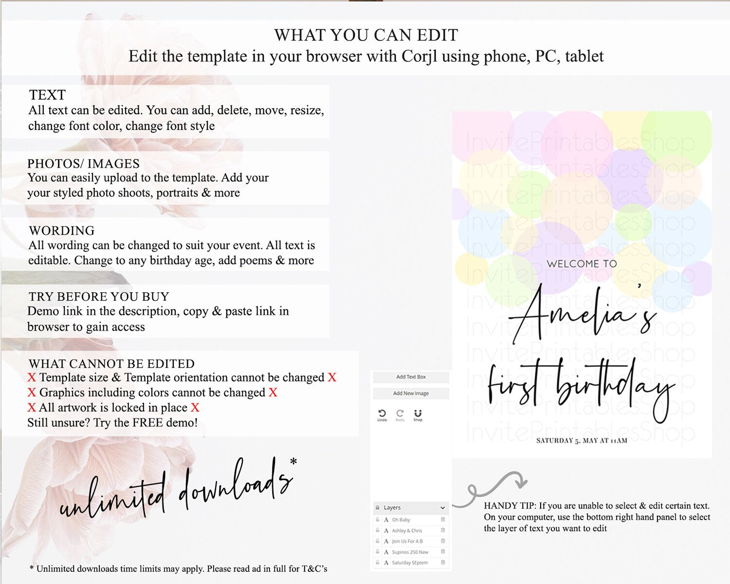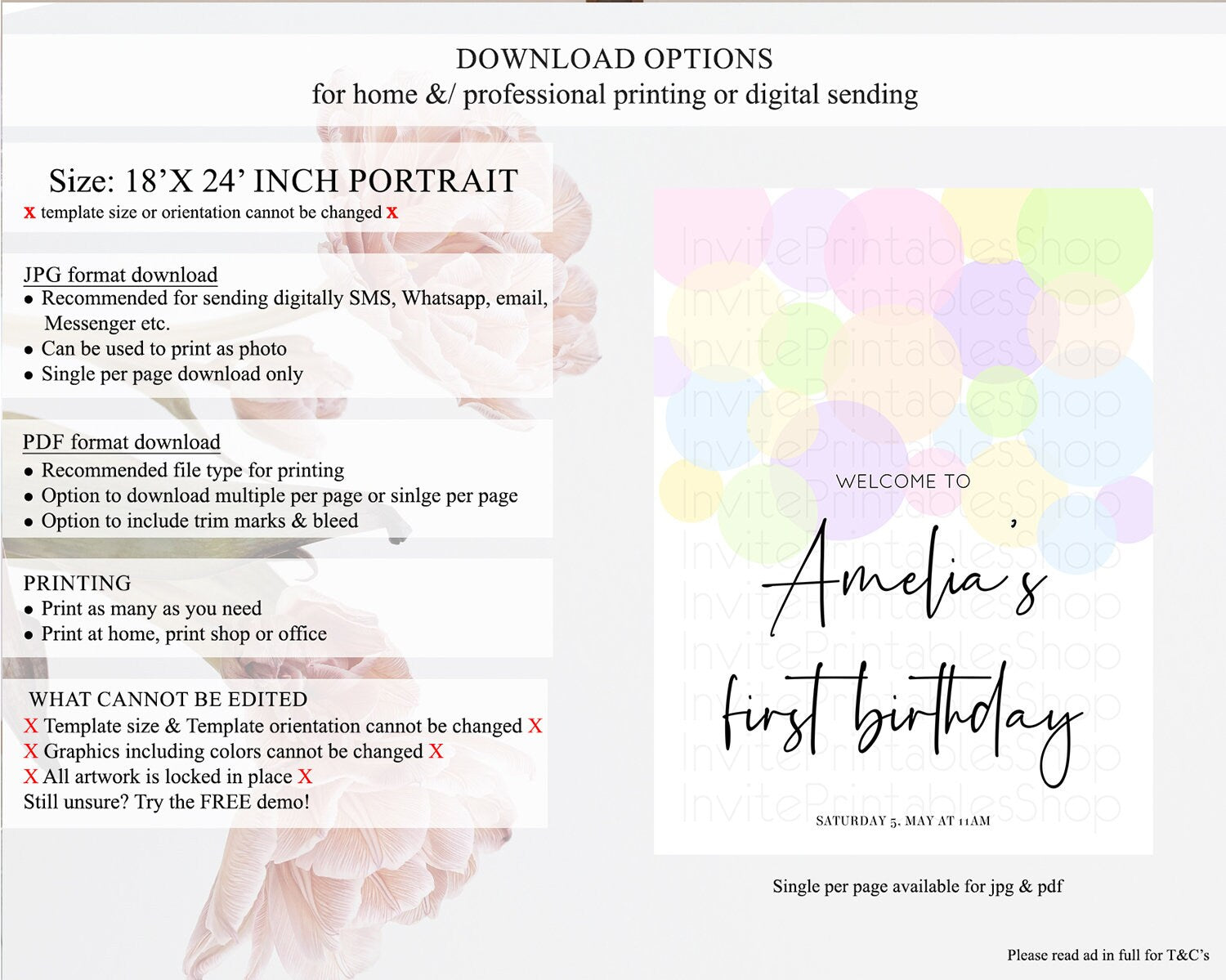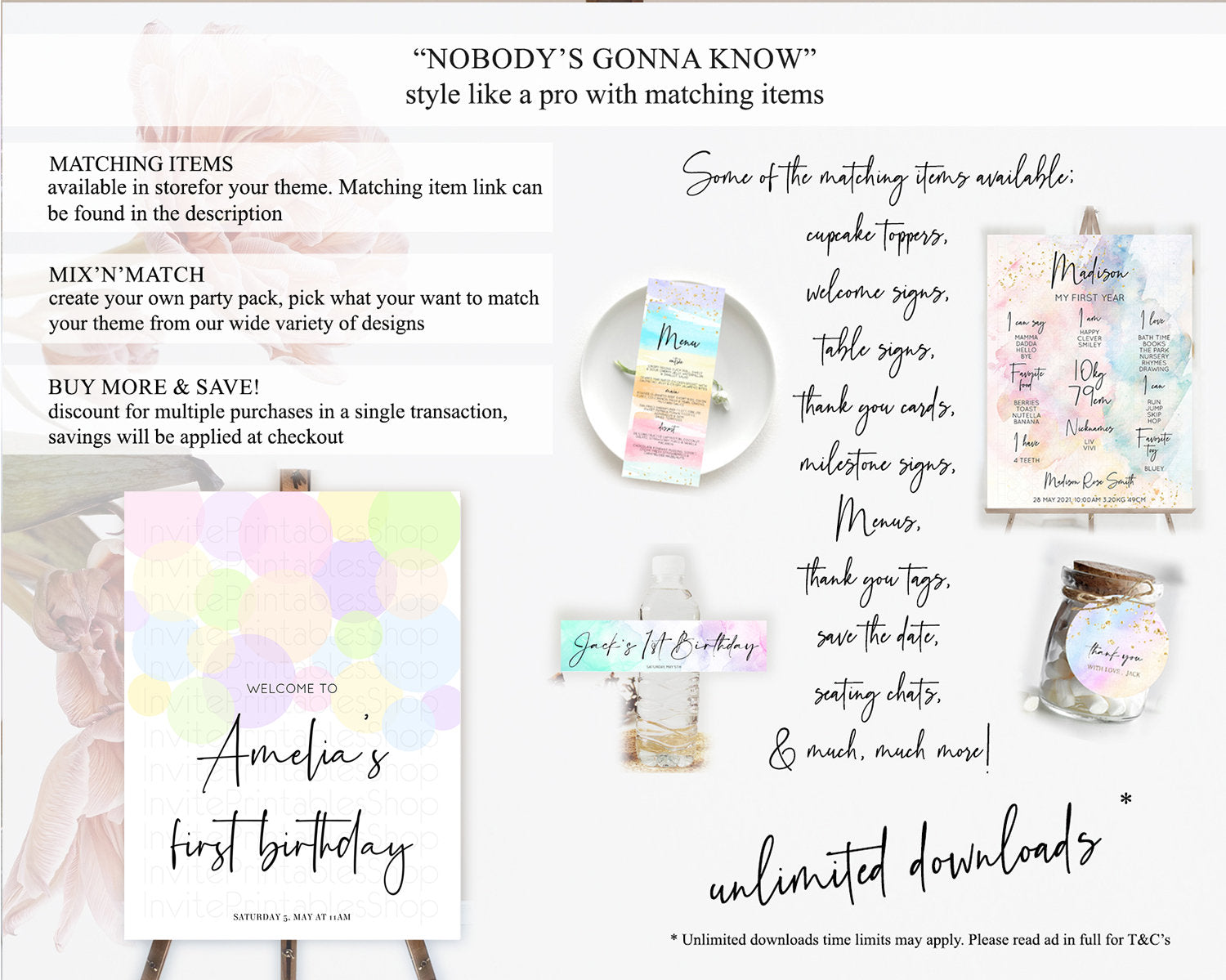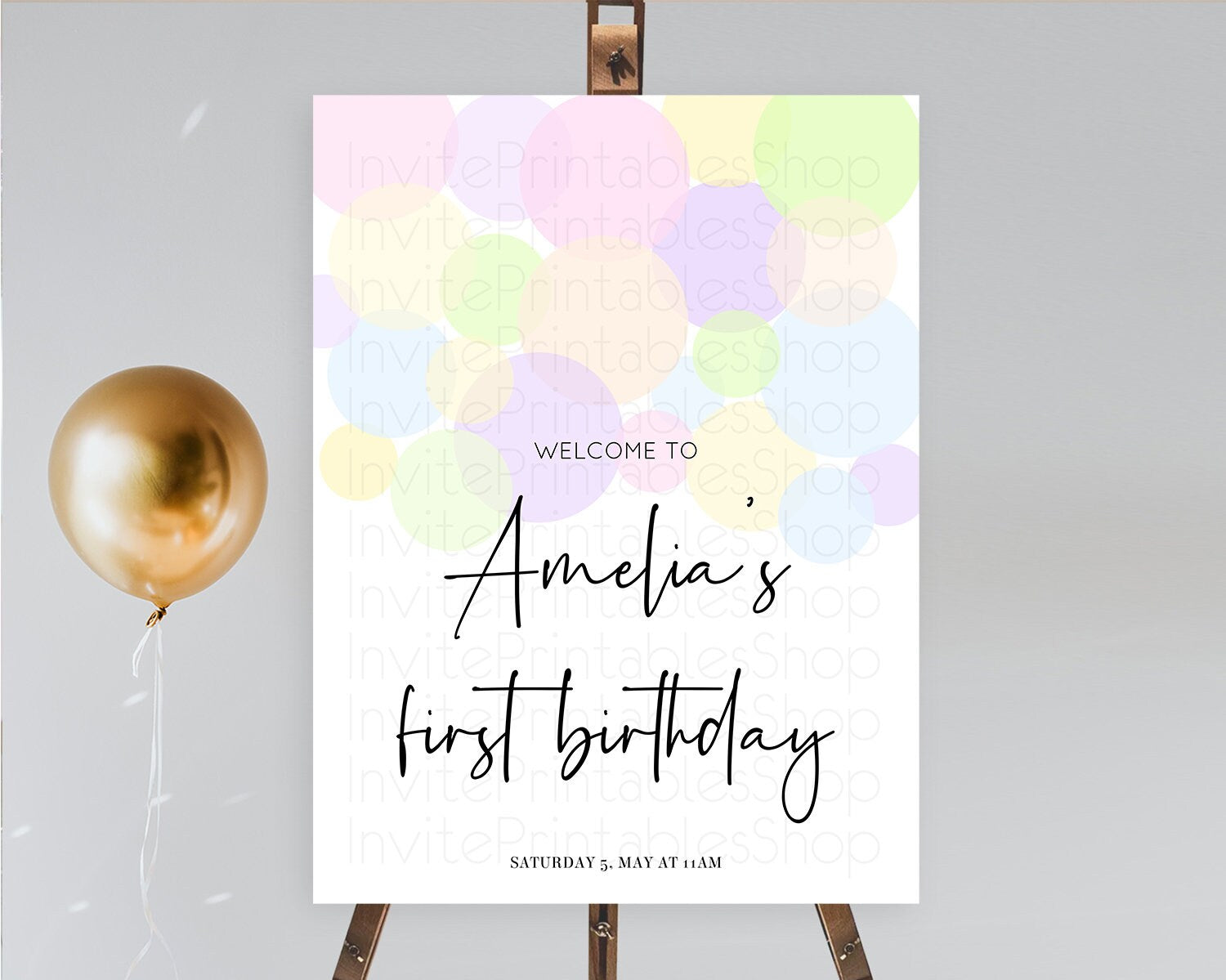 Rainbow Welcome Sign Pastel Welcome Board Pastel Rainbow Confetti Welcome Sign Colorful Bubbles Pastel First Birthday Welcome Sign D10229