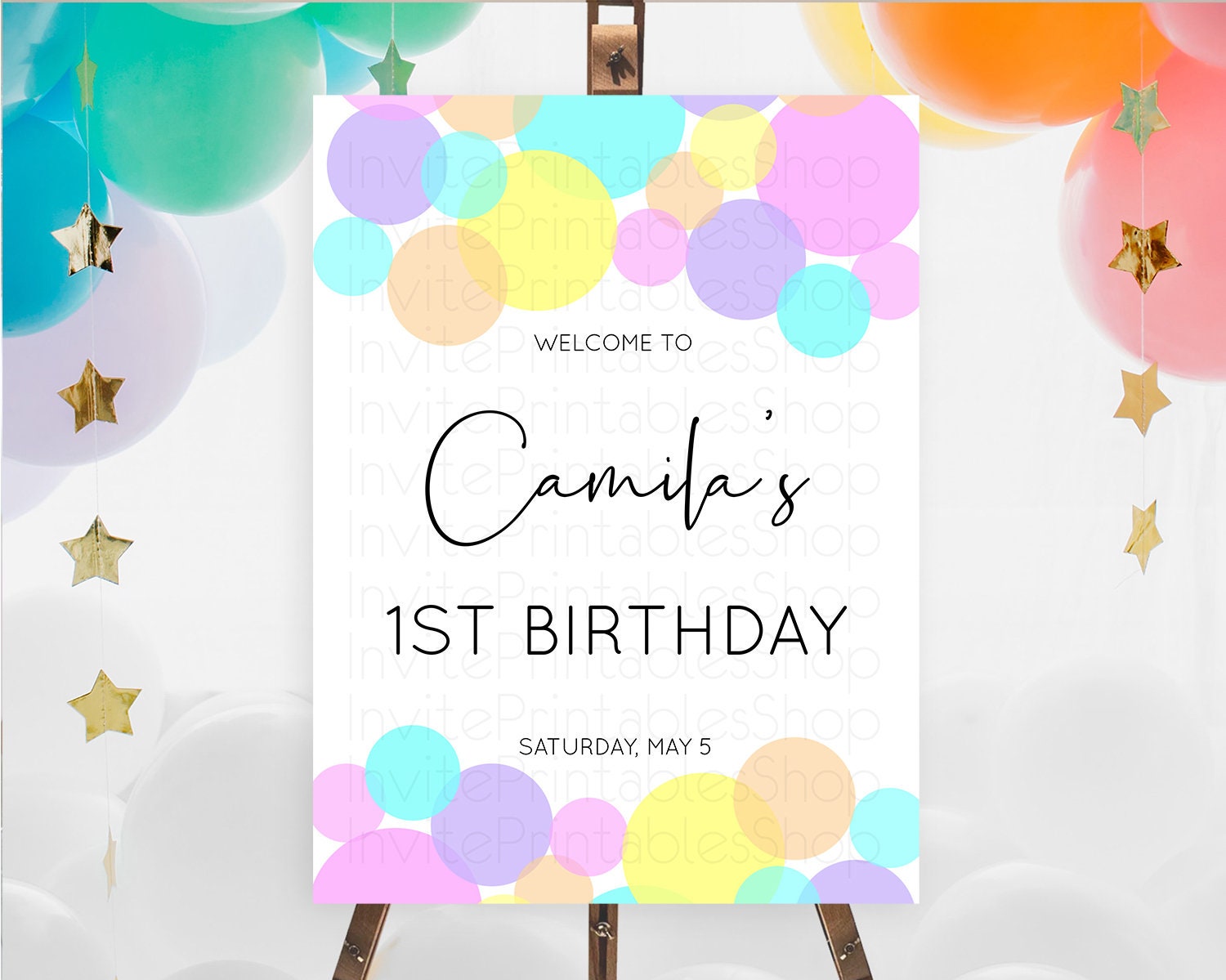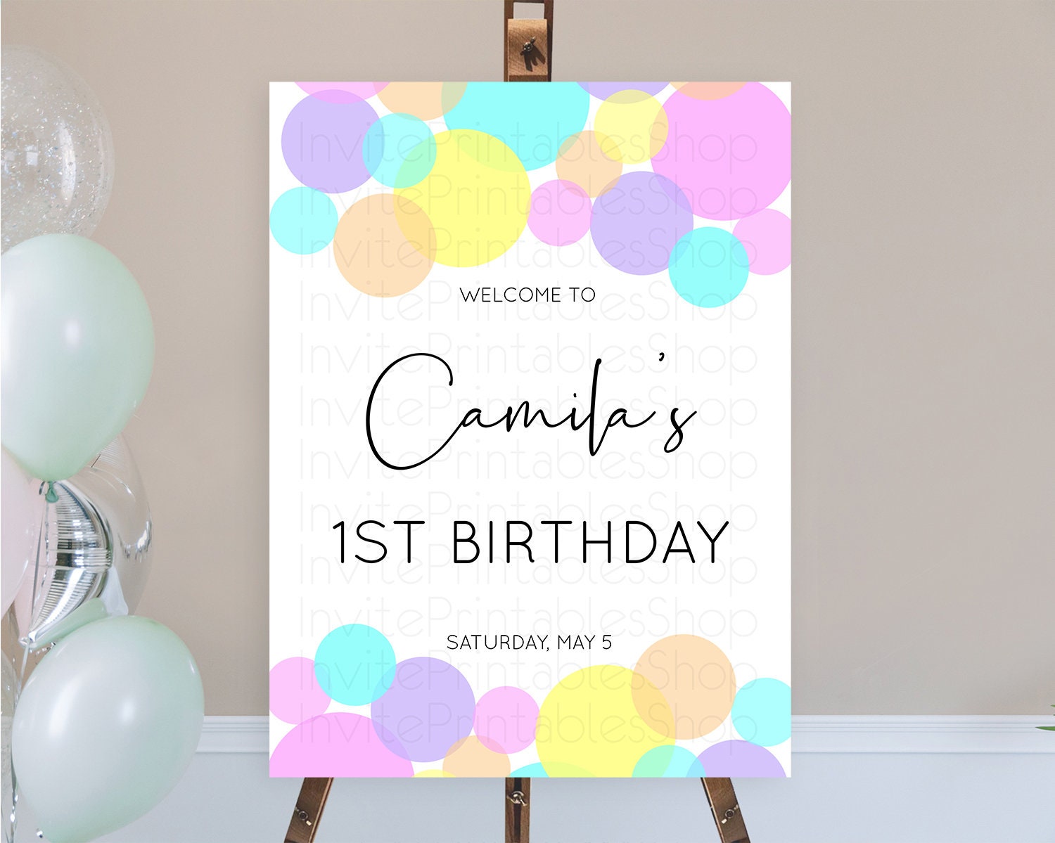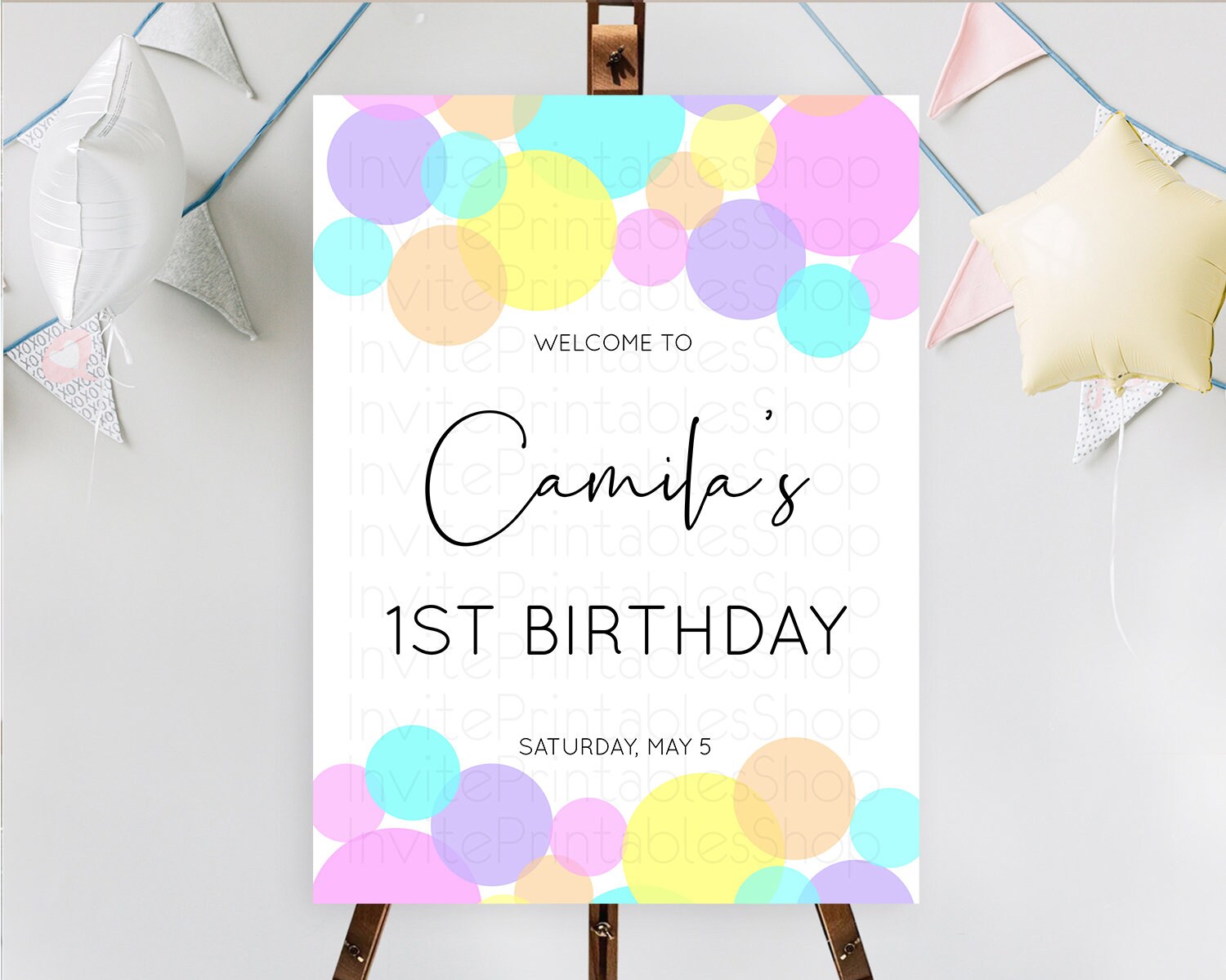 Rainbow Welcome Sign Pastel Welcome Board Pastel Rainbow Confetti Welcome Sign Colorful Bubbles Pastel First Birthday Welcome Sign D10406