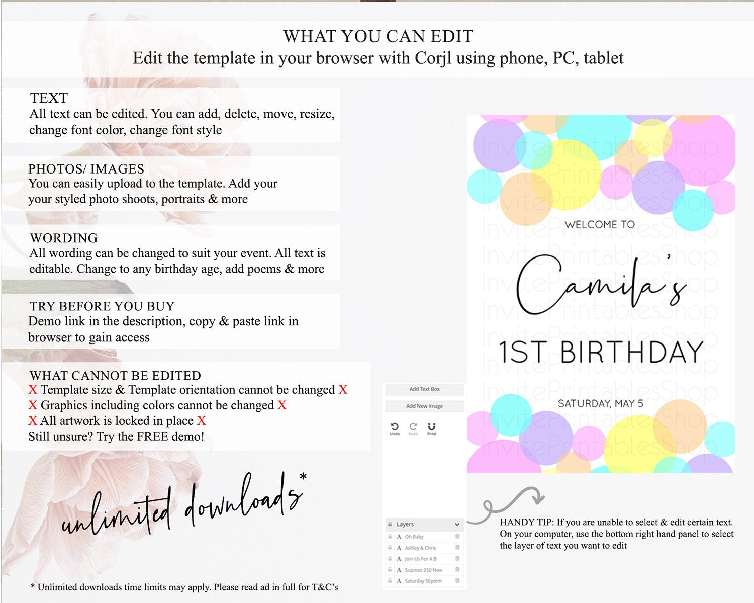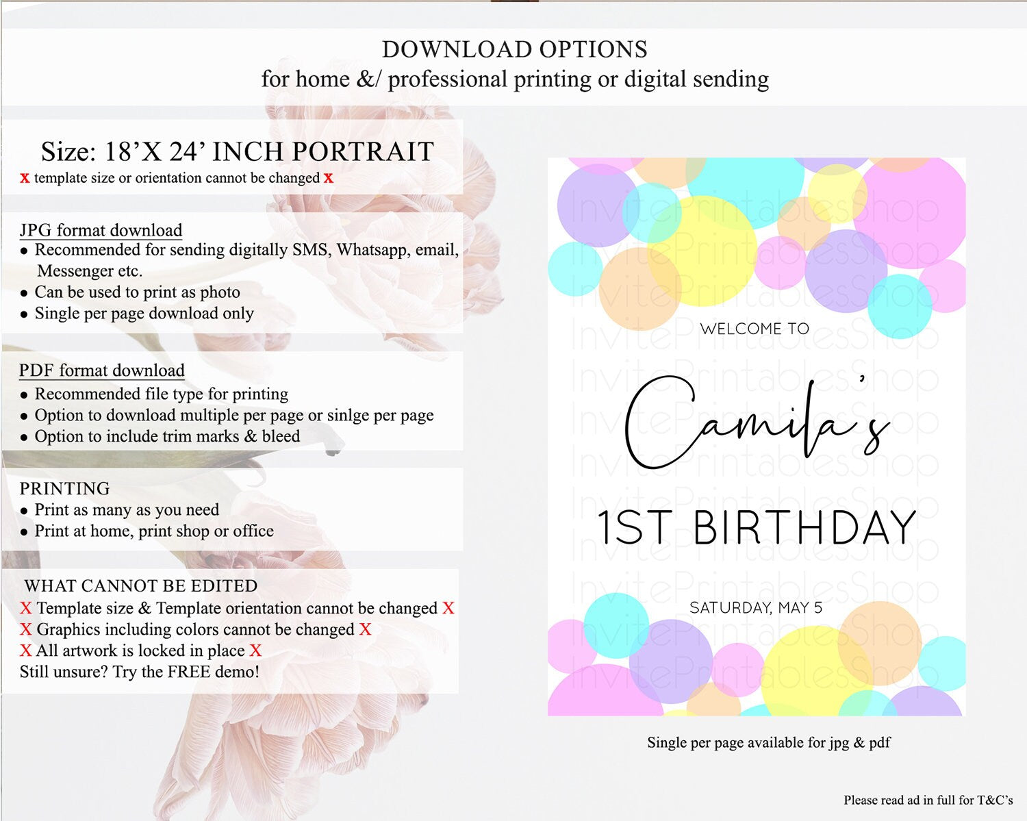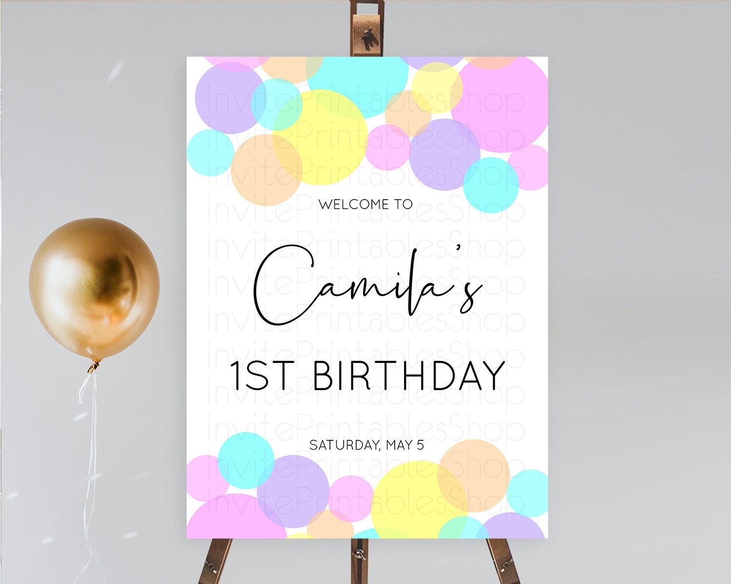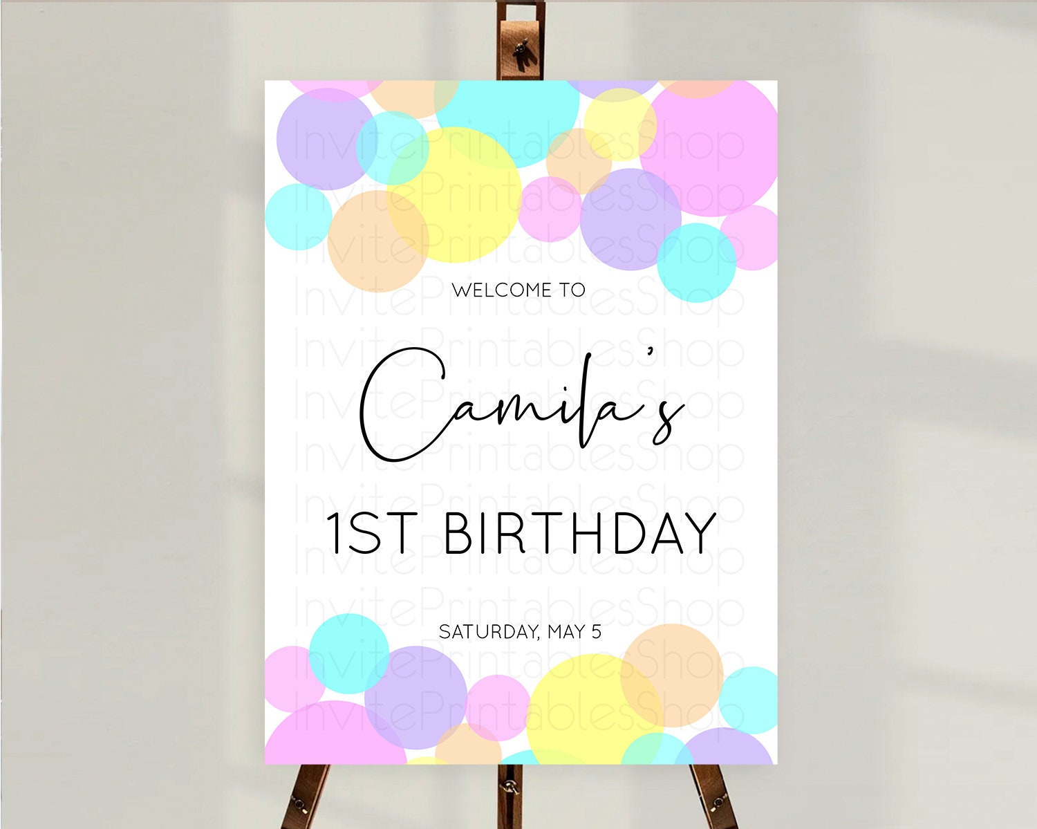 Rainbow Welcome Sign Pastel Welcome Board Pastel Rainbow Confetti Welcome Sign Colorful Bubbles Pastel First Birthday Welcome Sign D10406