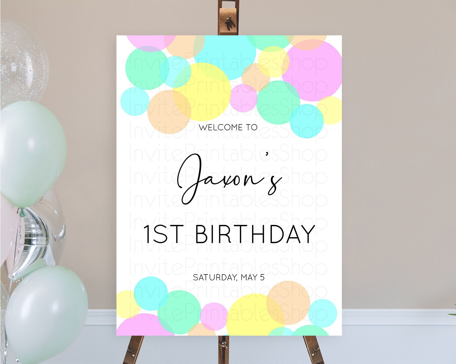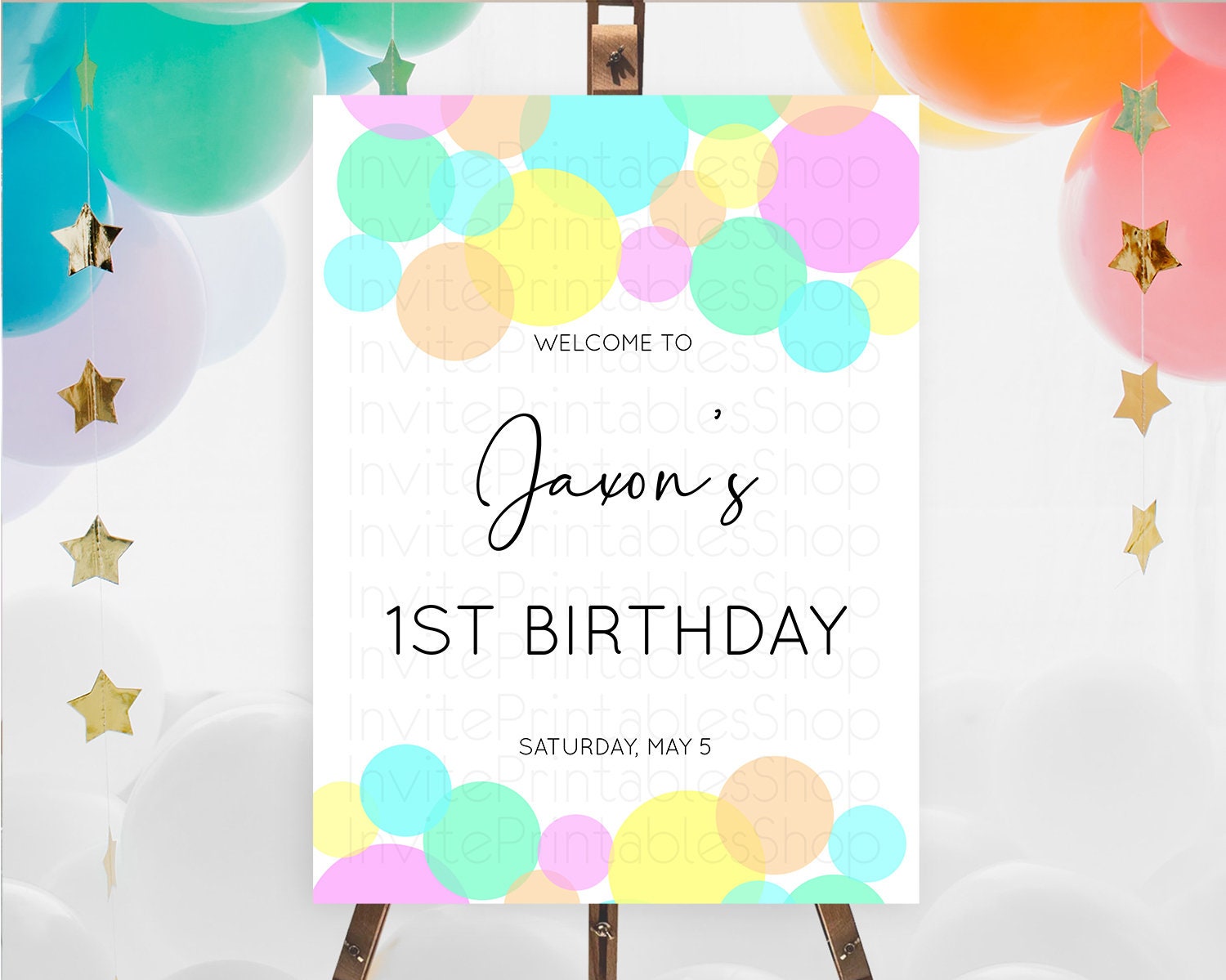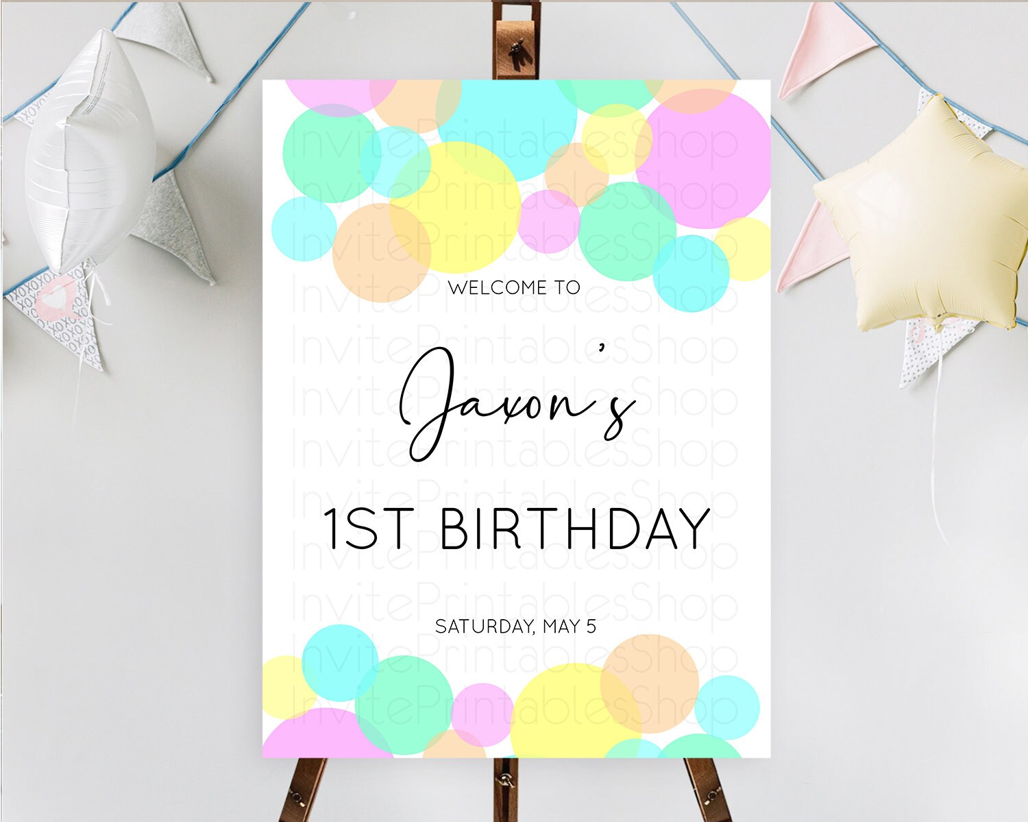 Rainbow Welcome Sign Pastel Welcome Board Pastel Rainbow Confetti Welcome Sign Colorful Bubbles Pastel First Birthday Welcome Sign D10409