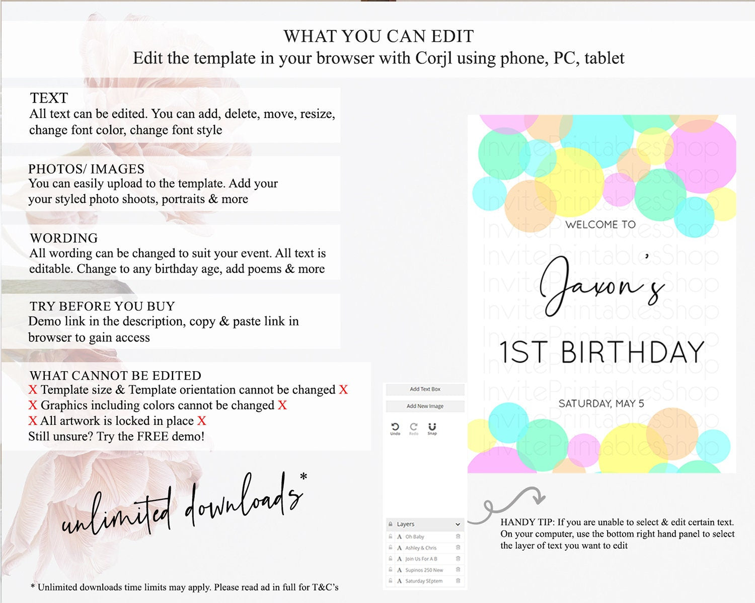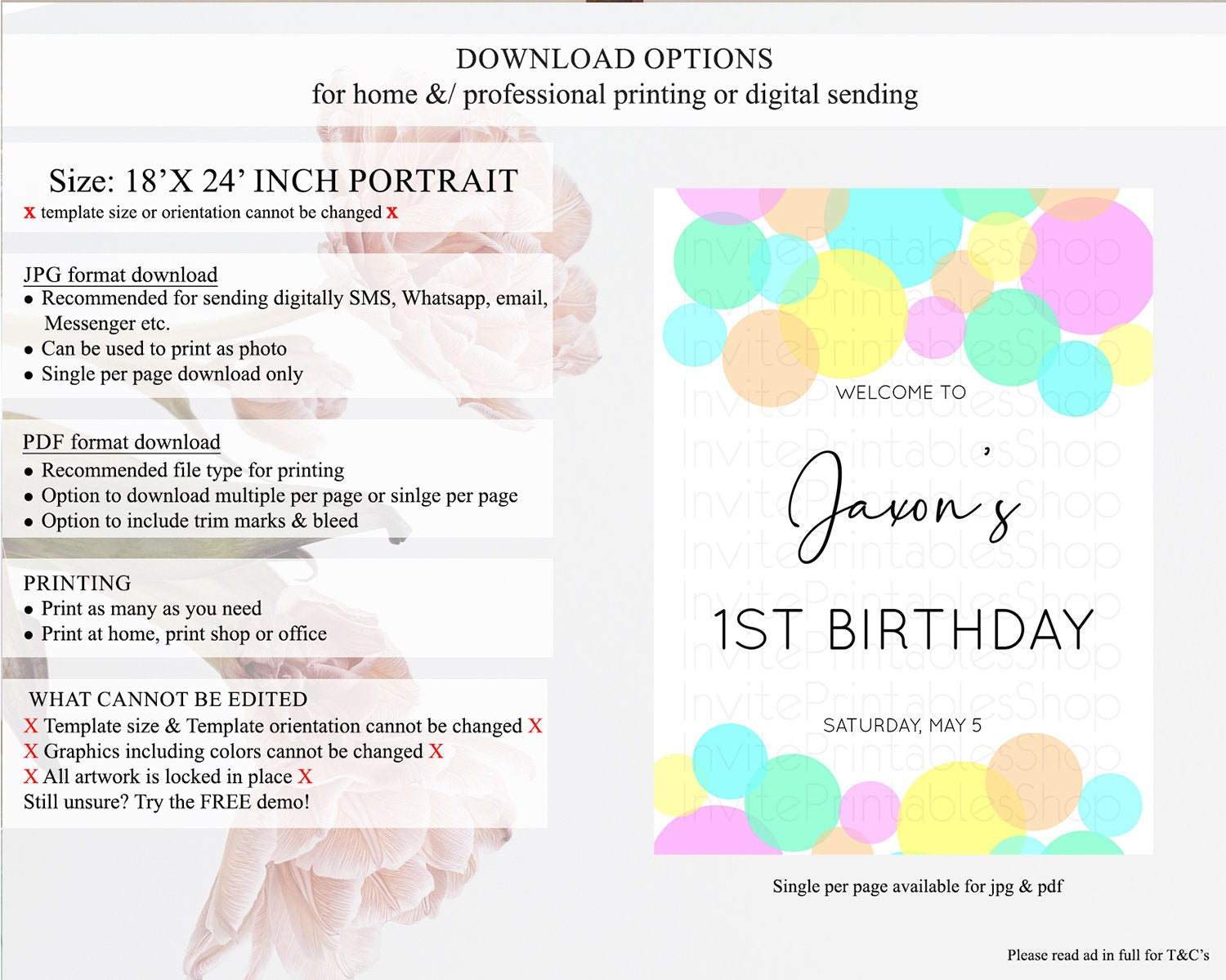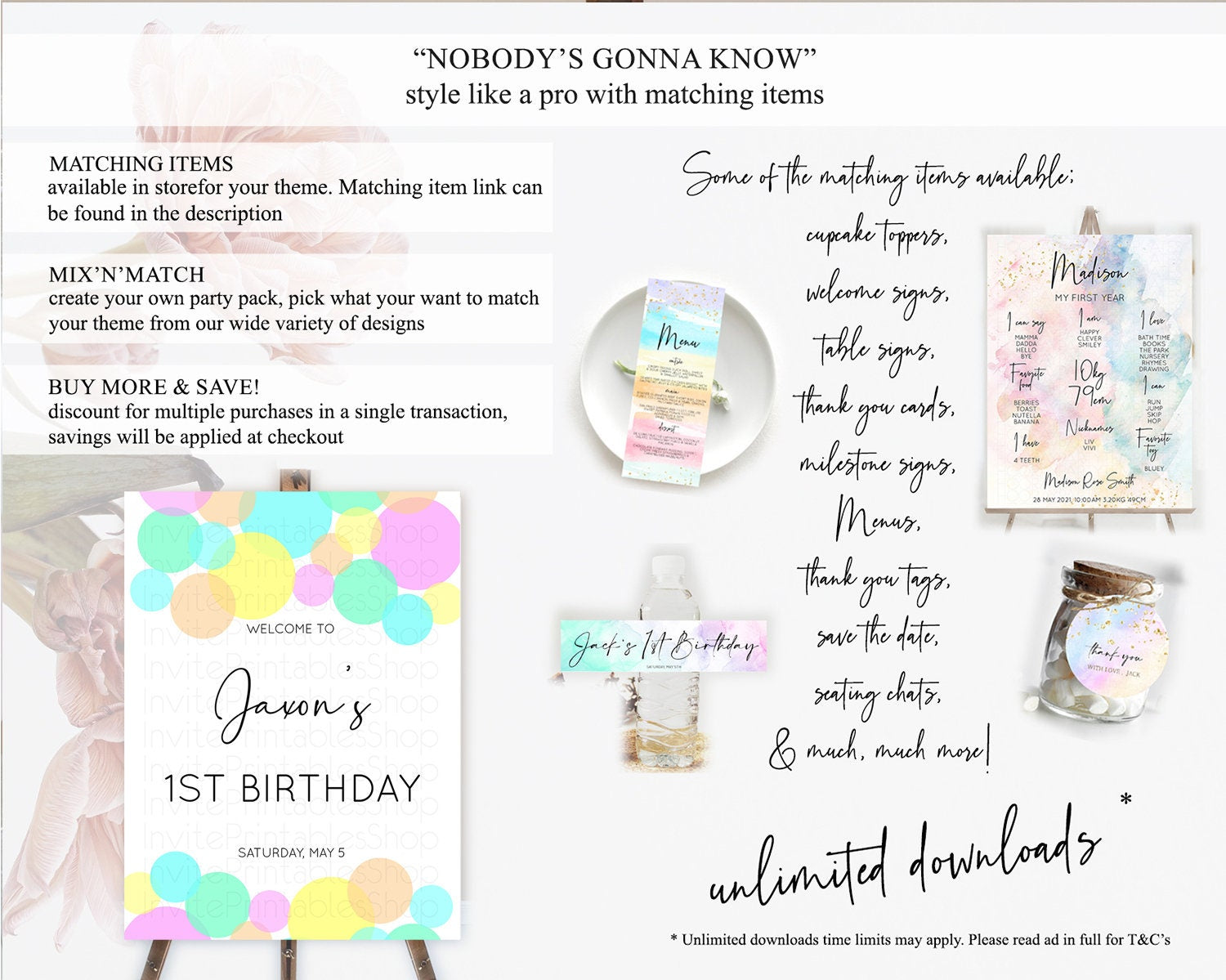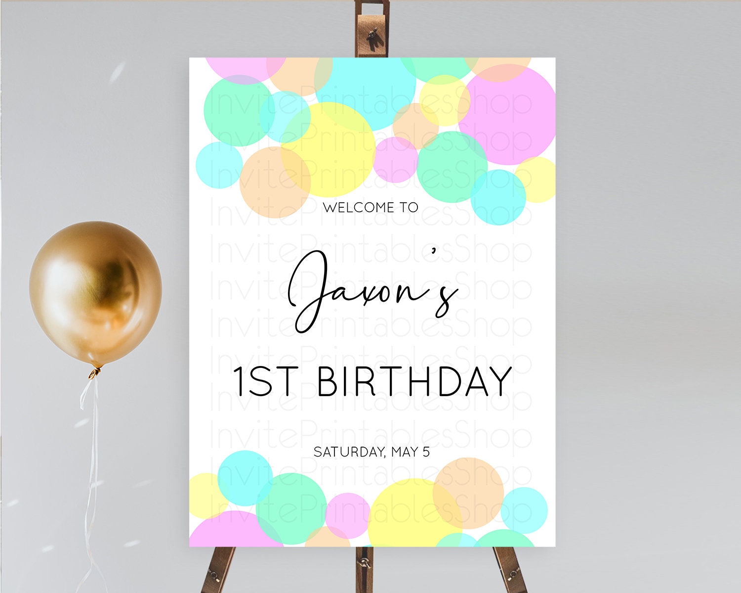 Rainbow Welcome Sign Pastel Welcome Board Pastel Rainbow Confetti Welcome Sign Colorful Bubbles Pastel First Birthday Welcome Sign D10409