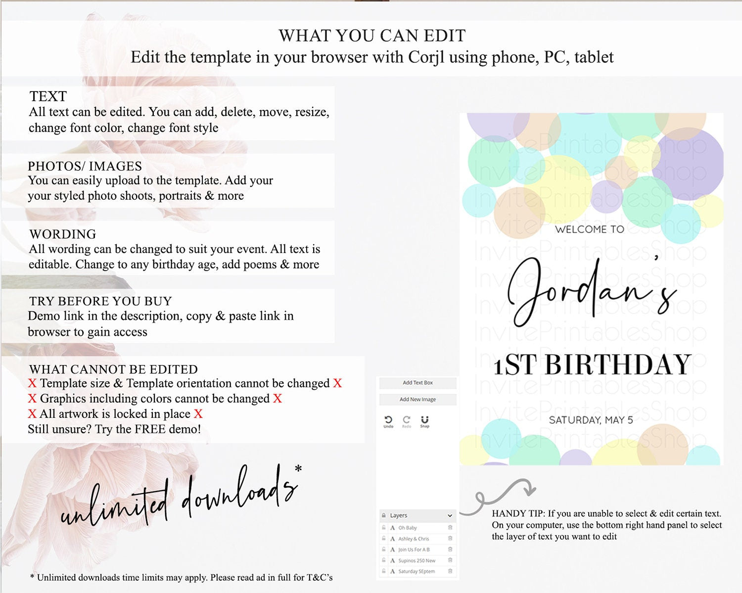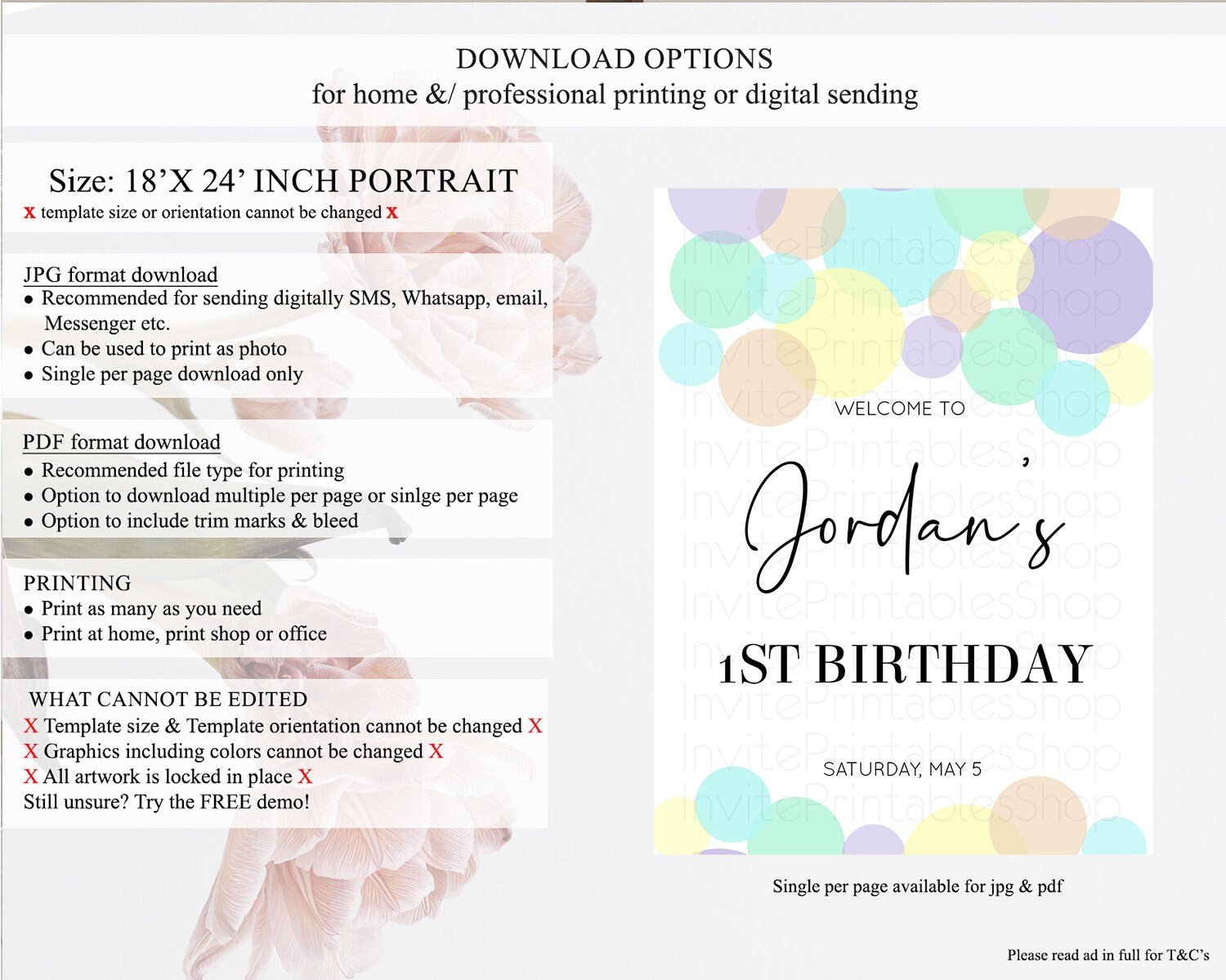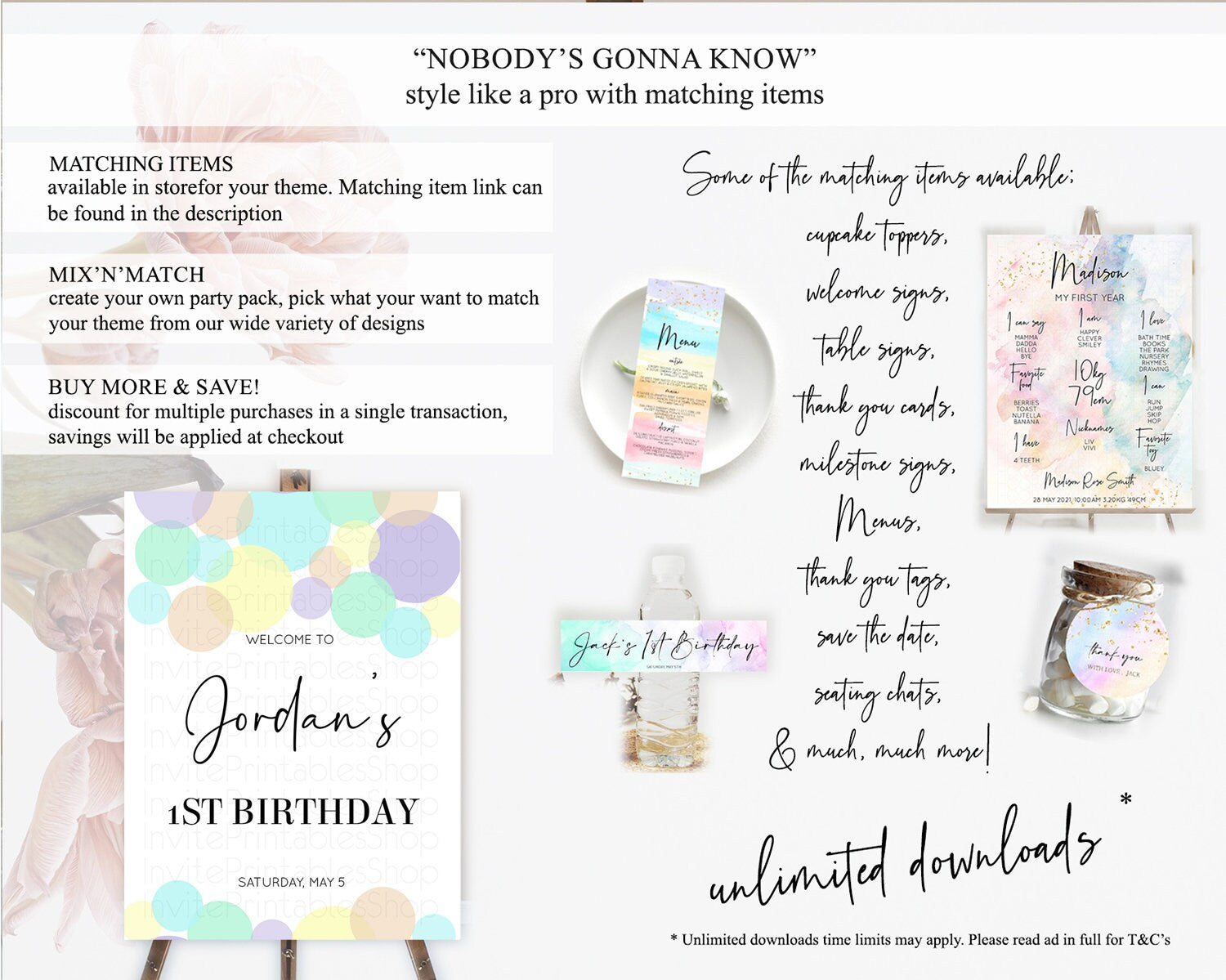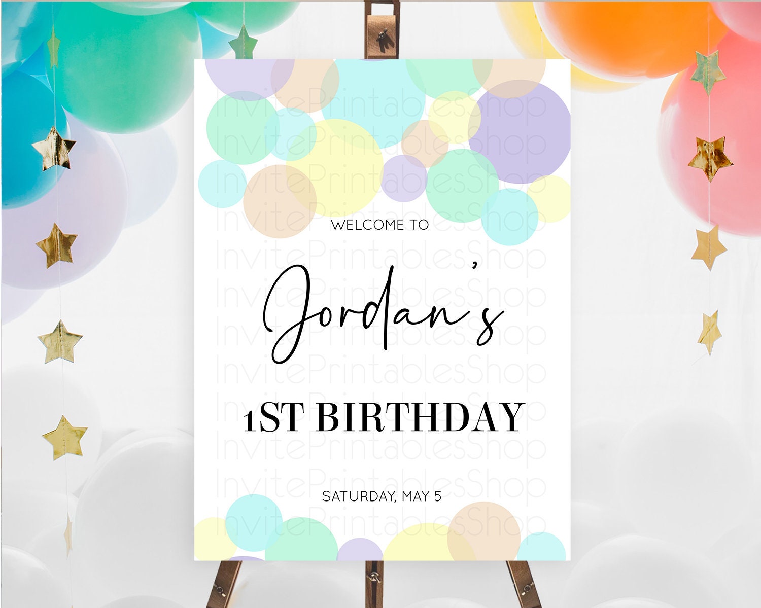 Rainbow Welcome Sign Pastel Welcome Board Pastel Rainbow Confetti Welcome Sign Colorful Bubbles Pastel First Birthday Welcome Sign D10414