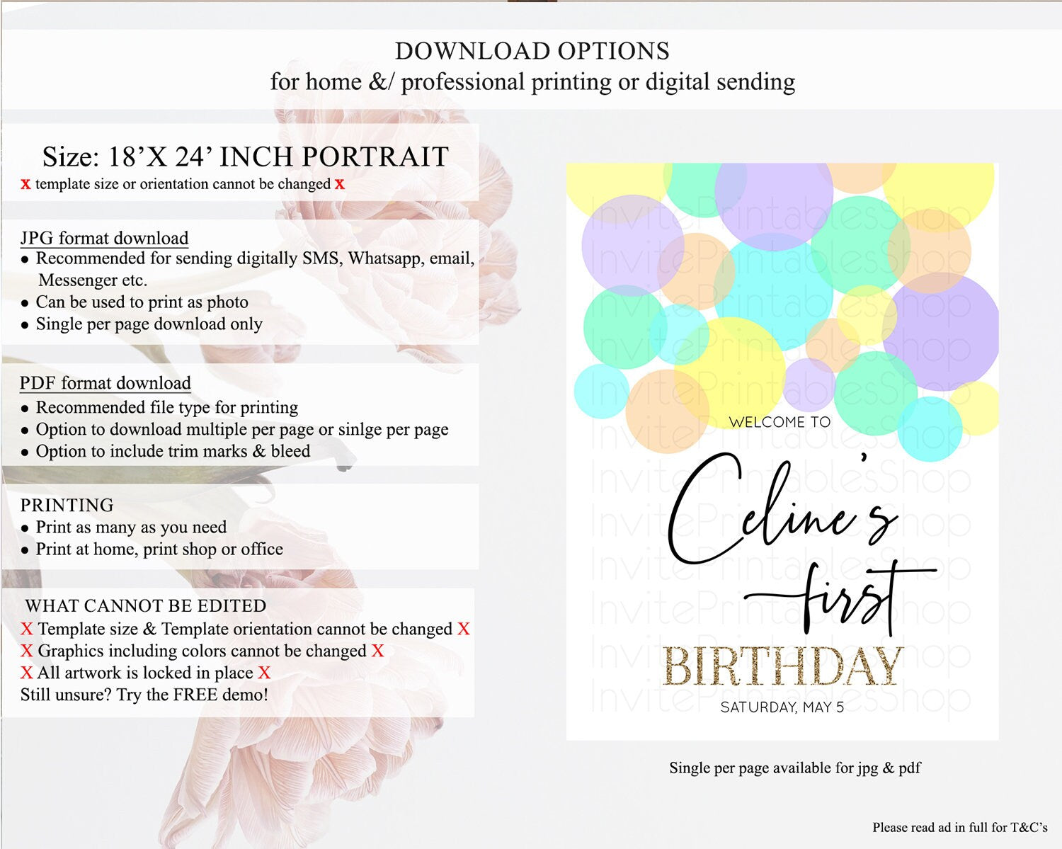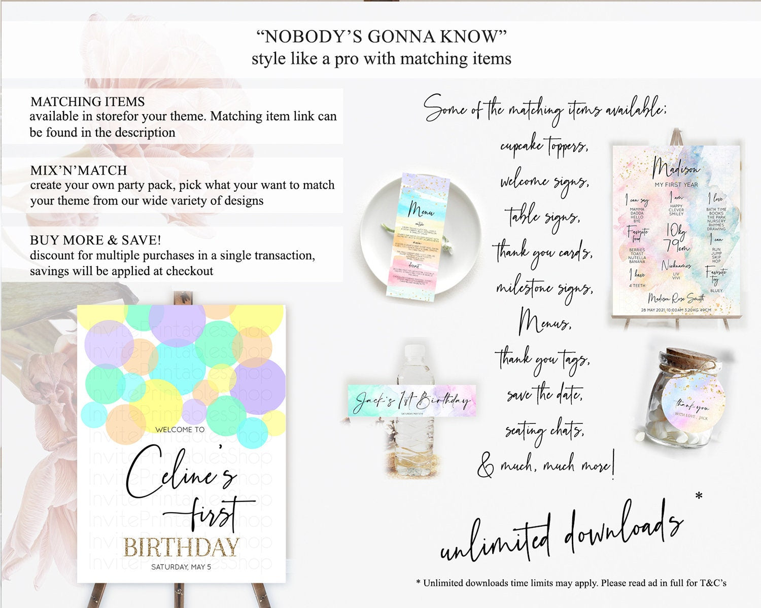 Rainbow Welcome Sign Pastel Welcome Board Pastel Rainbow Confetti Welcome Sign Colorful Bubbles Pastel First Birthday Welcome Sign D10415