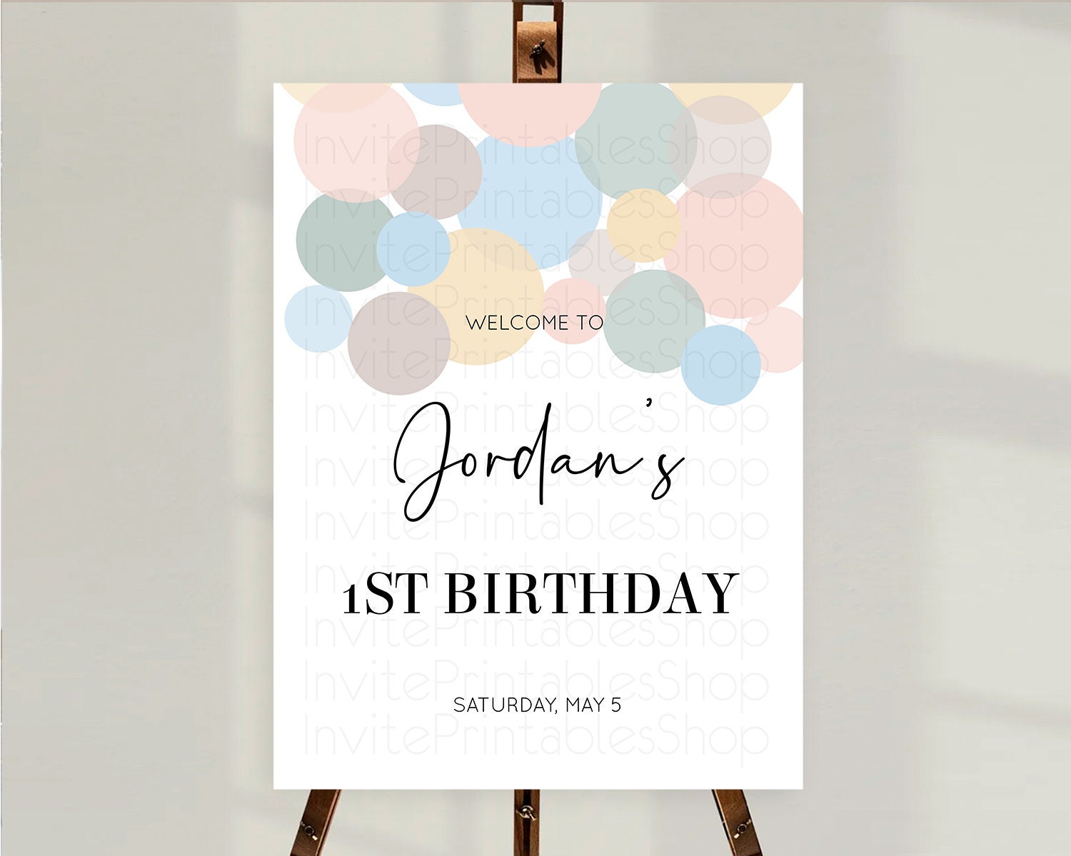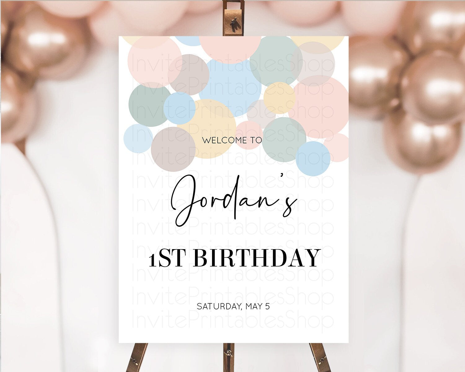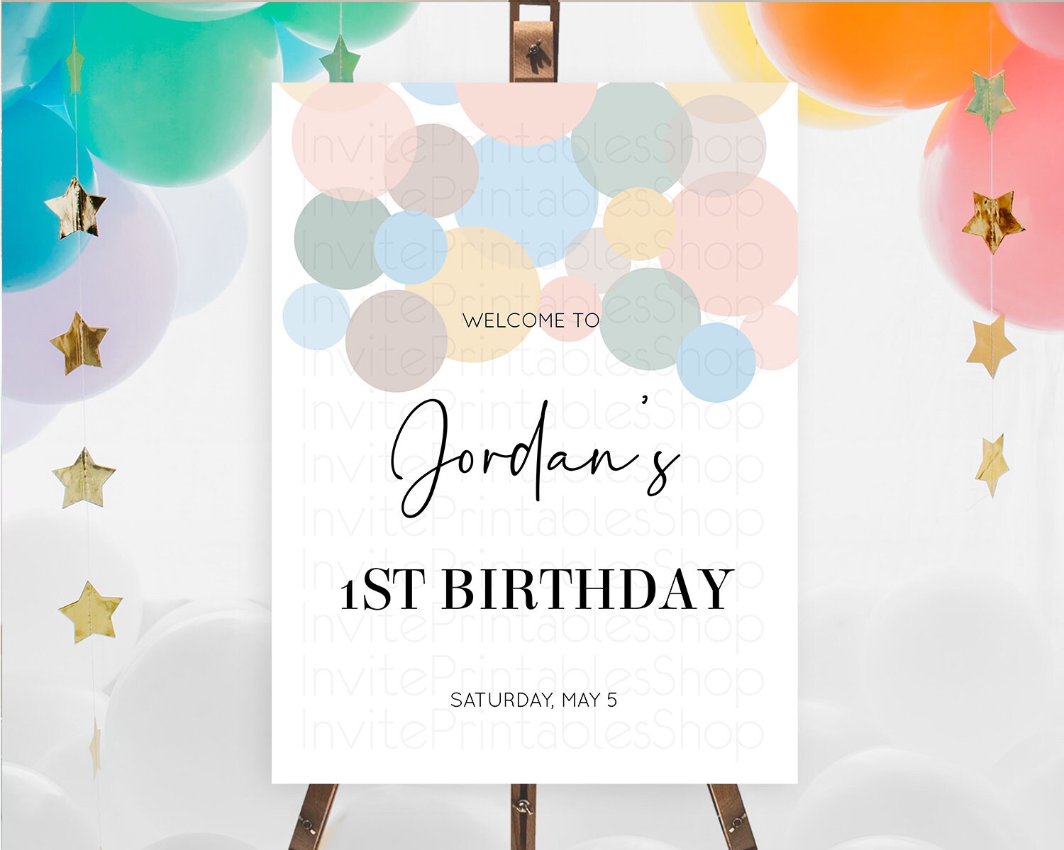 Rainbow Welcome Sign Pastel Welcome Board Pastel Rainbow Confetti Welcome Sign Colorful Bubbles Pastel First Birthday Welcome Sign D10602