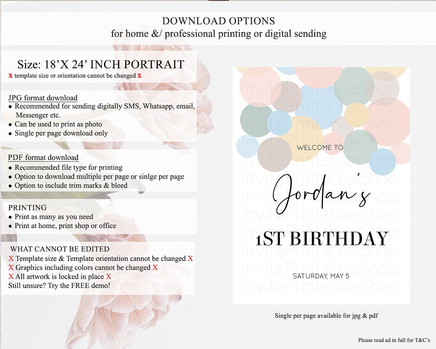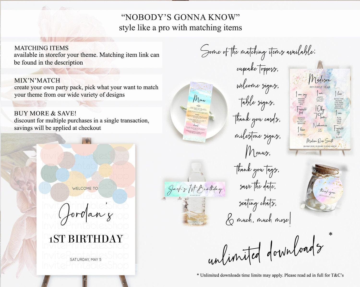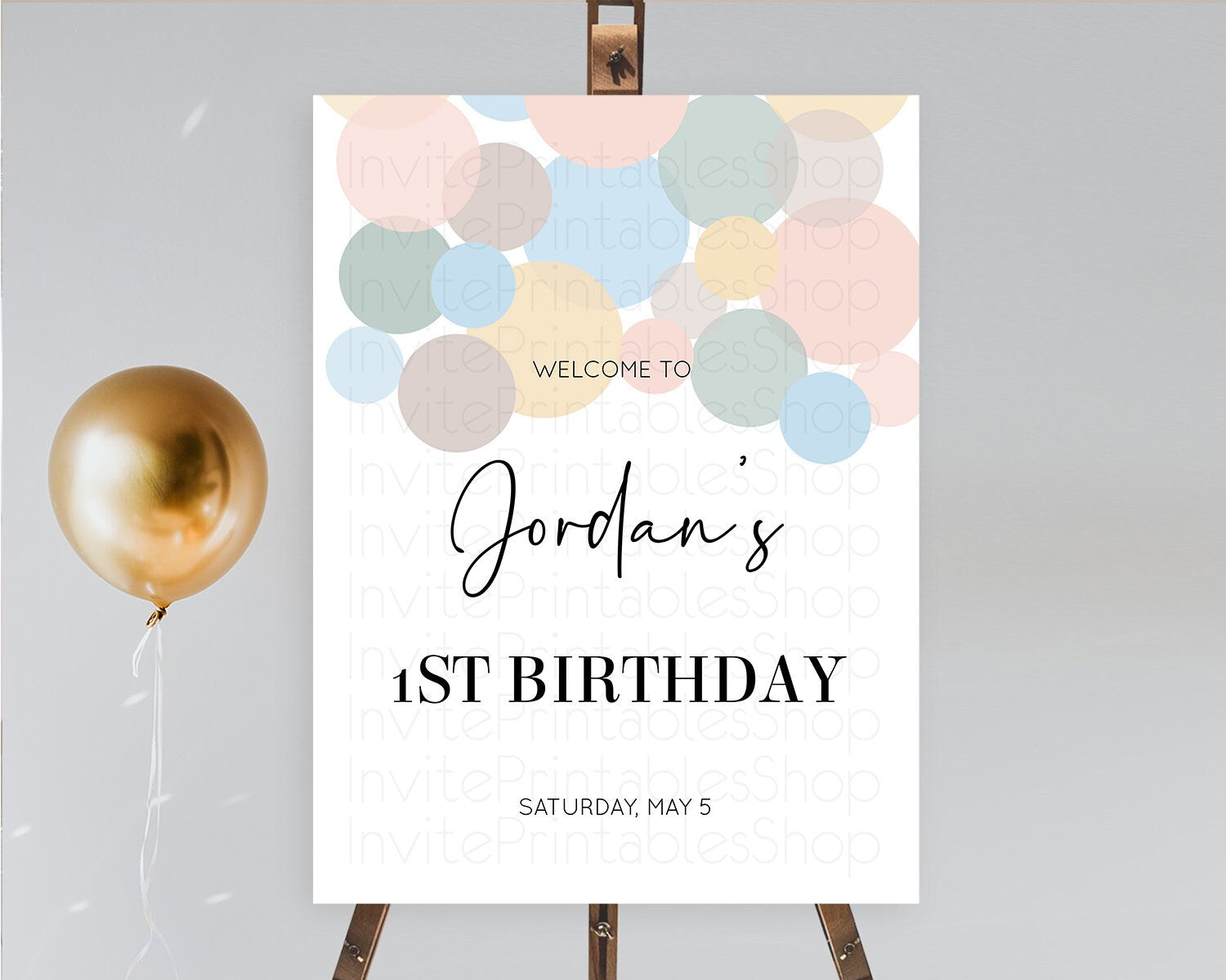Rainbow Welcome Sign Pastel Welcome Board Pastel Rainbow Confetti Welcome Sign Colorful Bubbles Pastel First Birthday Welcome Sign D10602