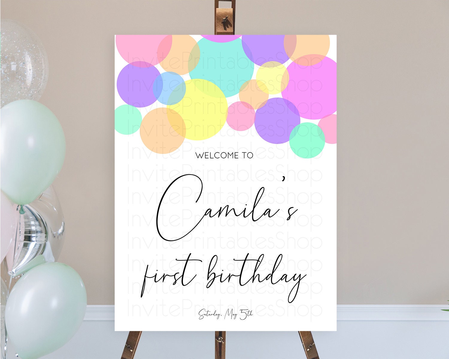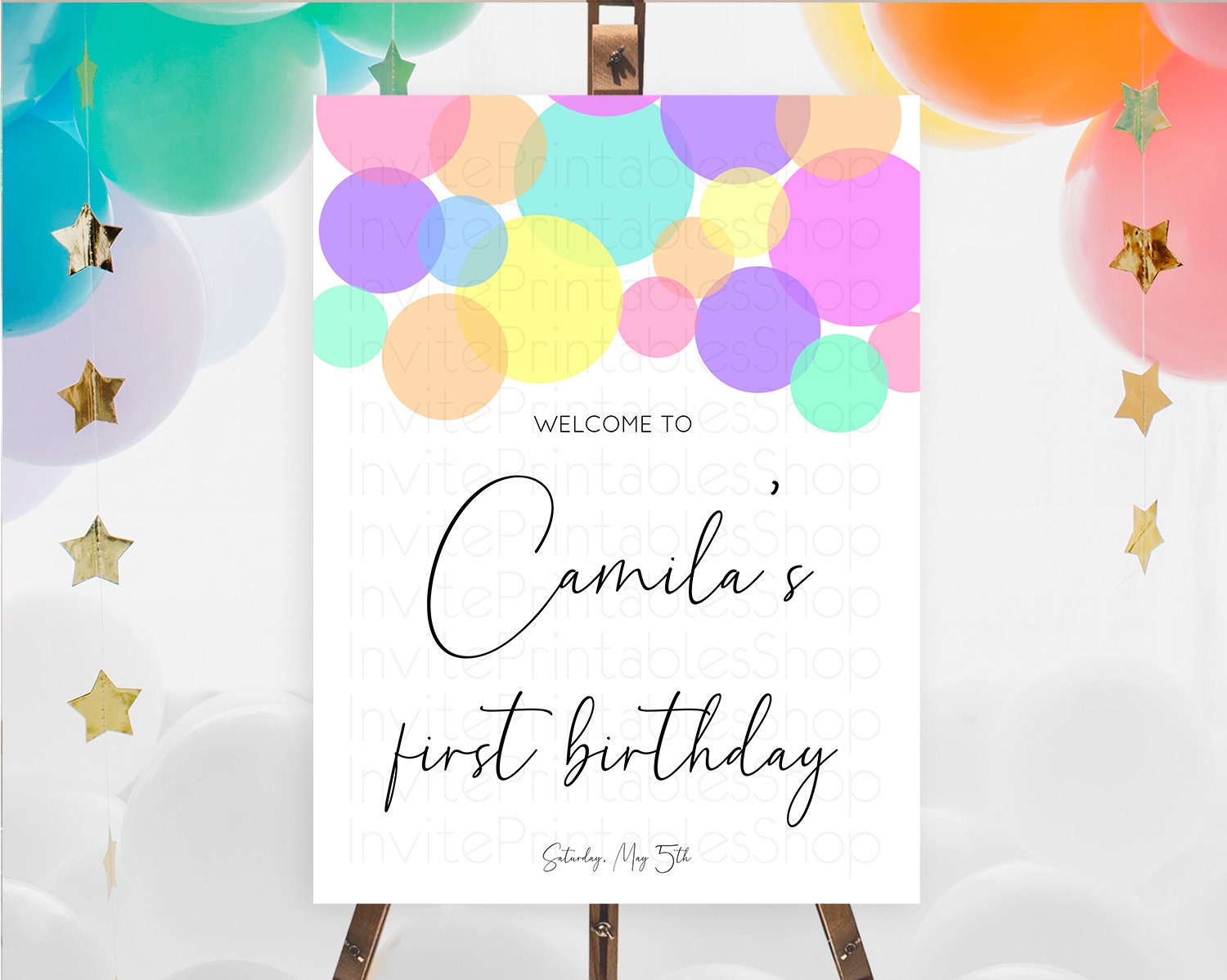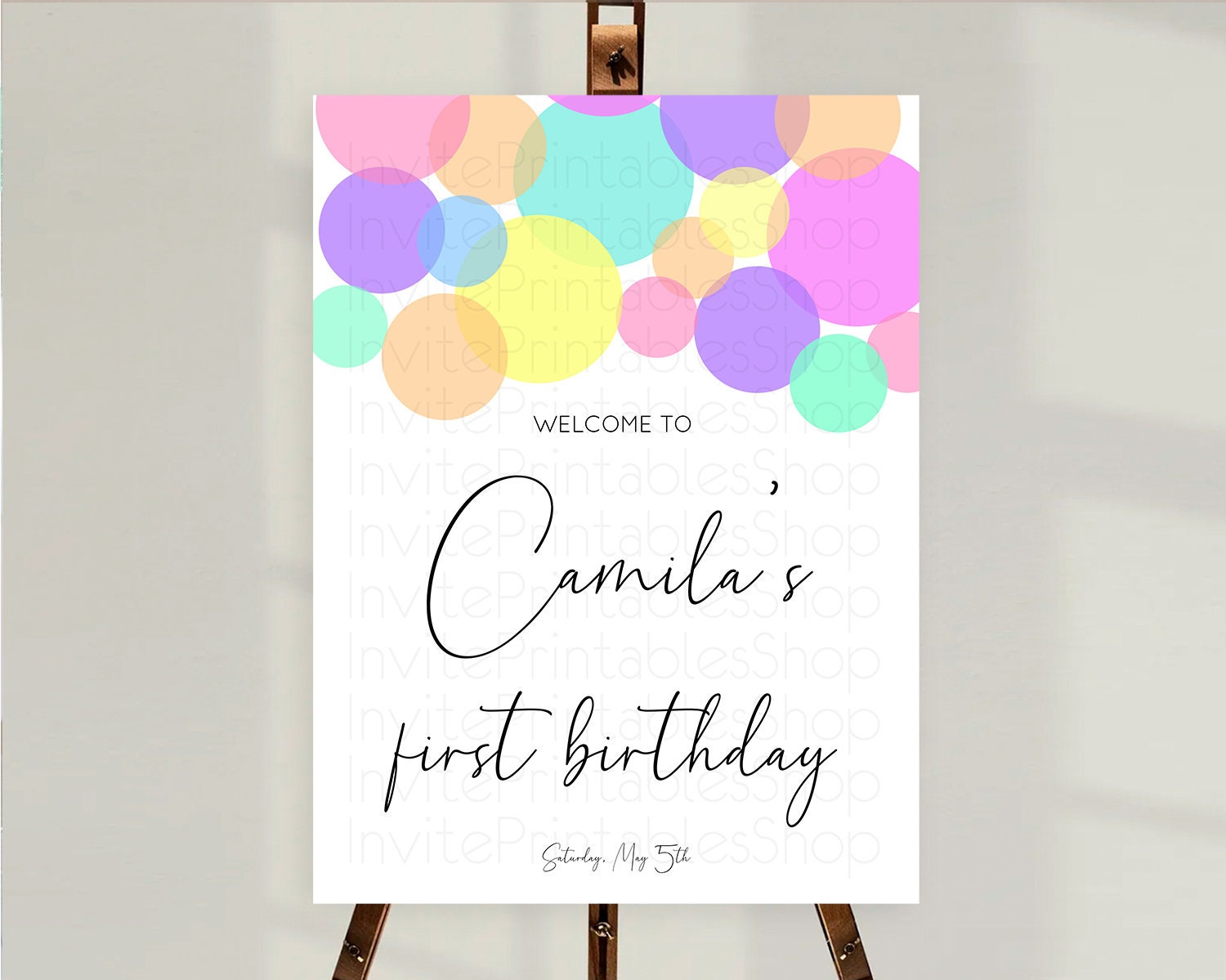 Rainbow Welcome Sign Pastel Welcome Board Pastel Rainbow Confetti Welcome Sign Colorful Bubbles Pastel First Birthday Welcome Sign D10888