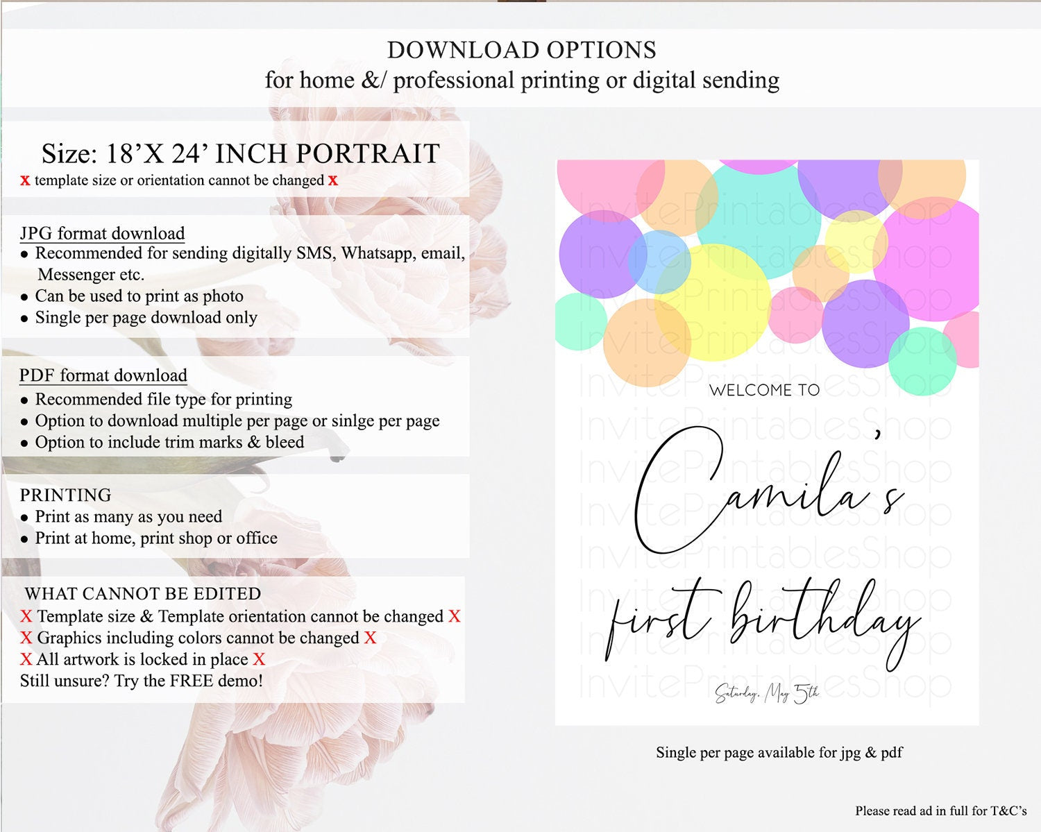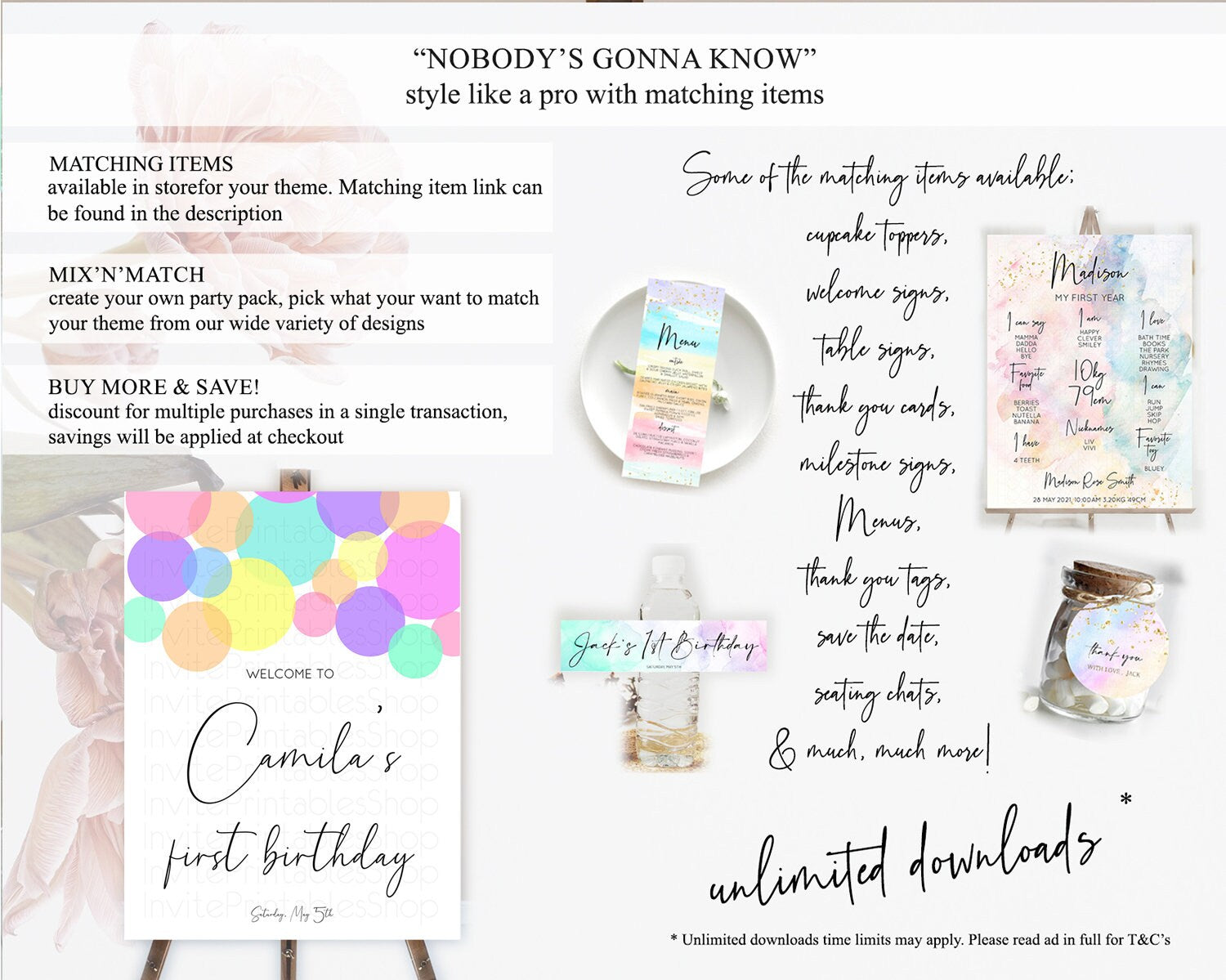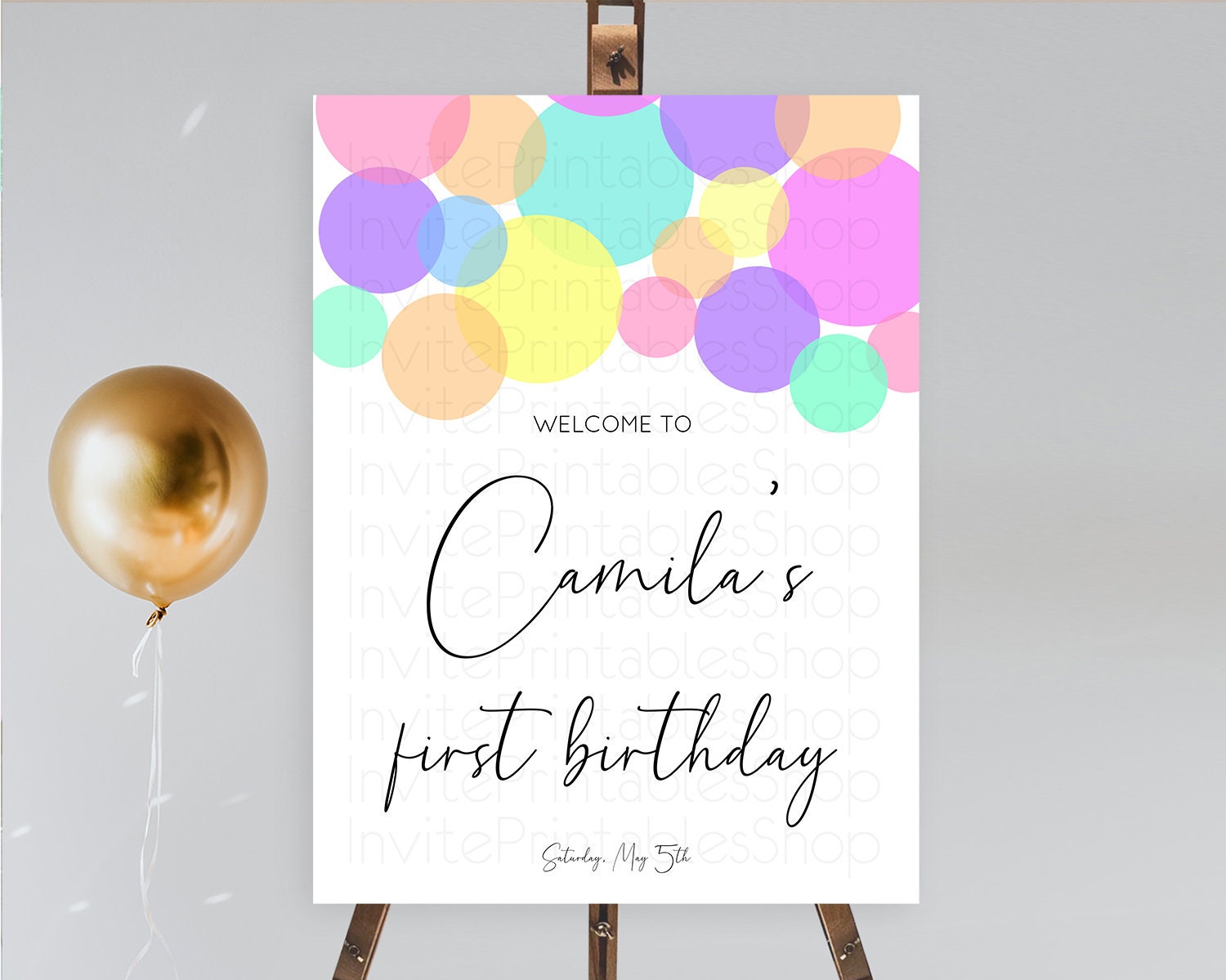 Rainbow Welcome Sign Pastel Welcome Board Pastel Rainbow Confetti Welcome Sign Colorful Bubbles Pastel First Birthday Welcome Sign D10888