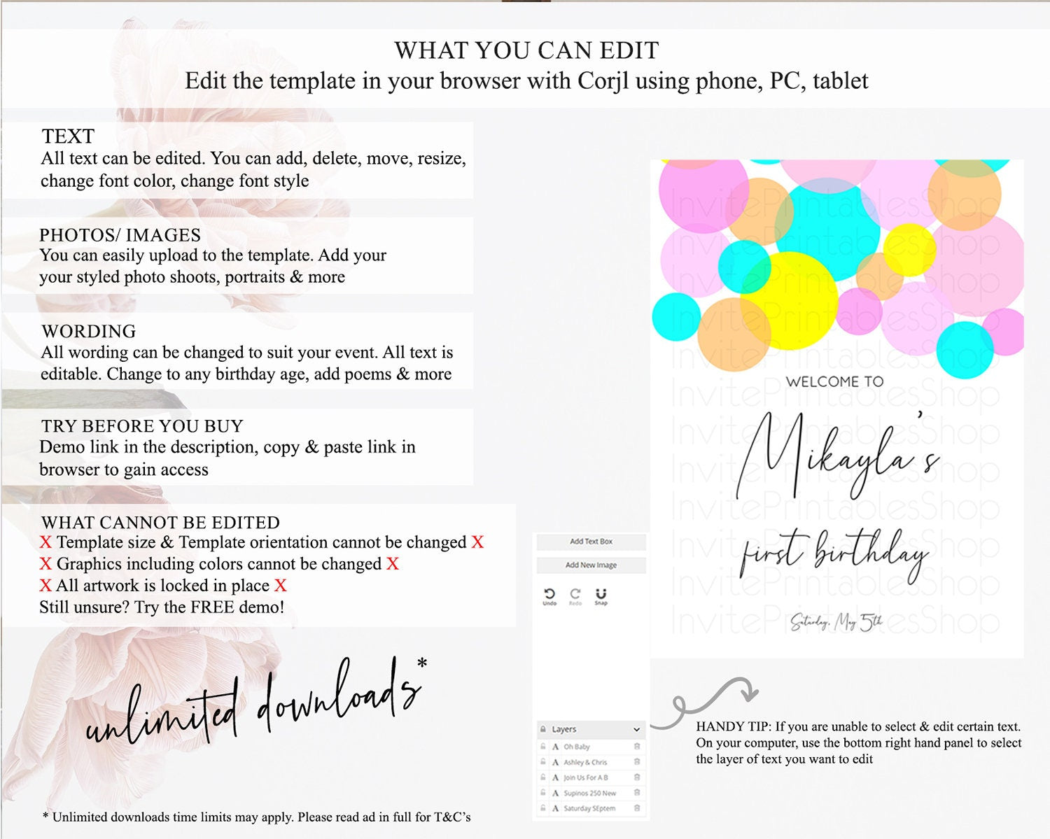 • After purchase, Corjl emails your editing link. Allow up to 15 minutes for delivery.