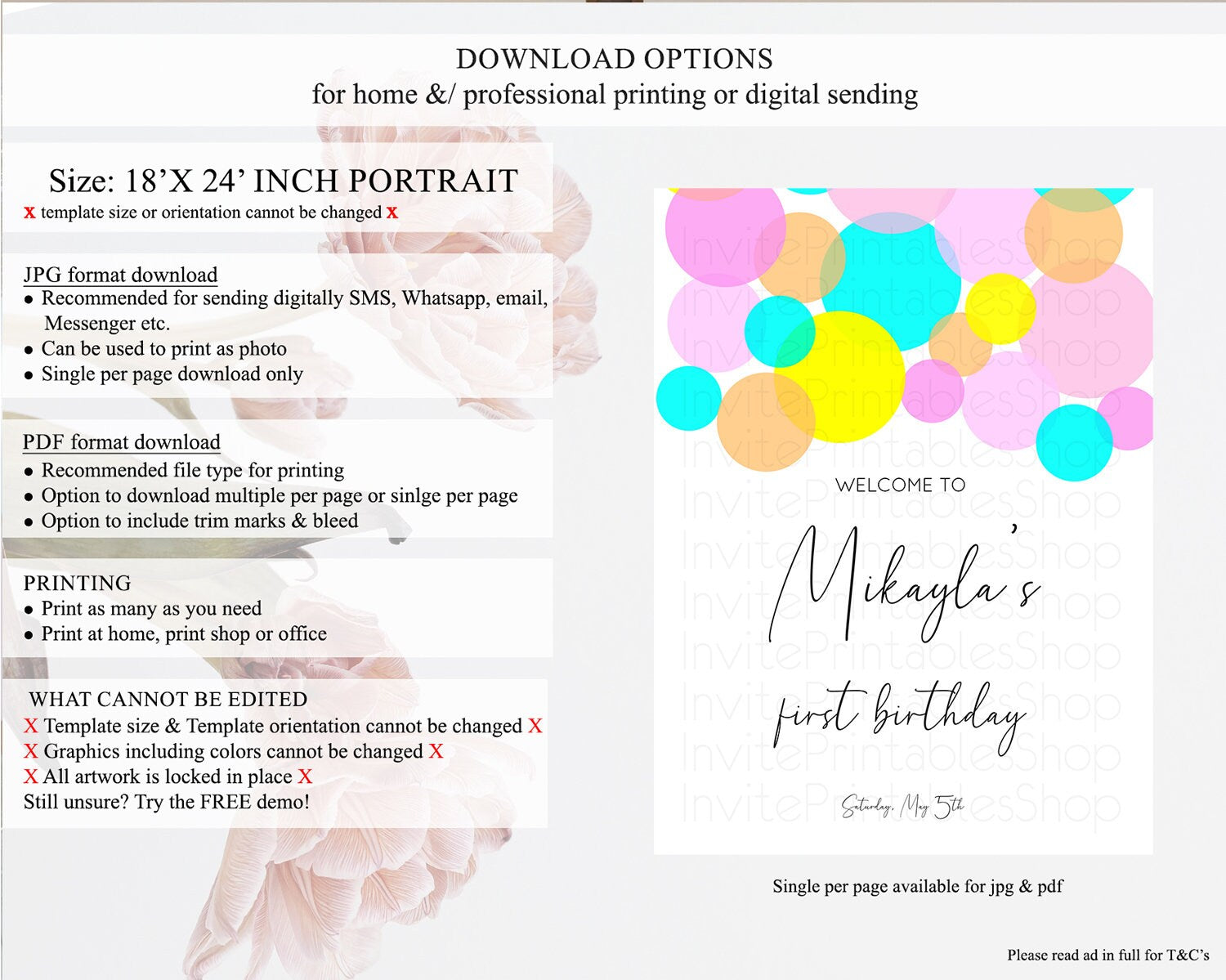 • Template size & orientation cannot be changed. Please use the demo link to confirm this product suits your needs.