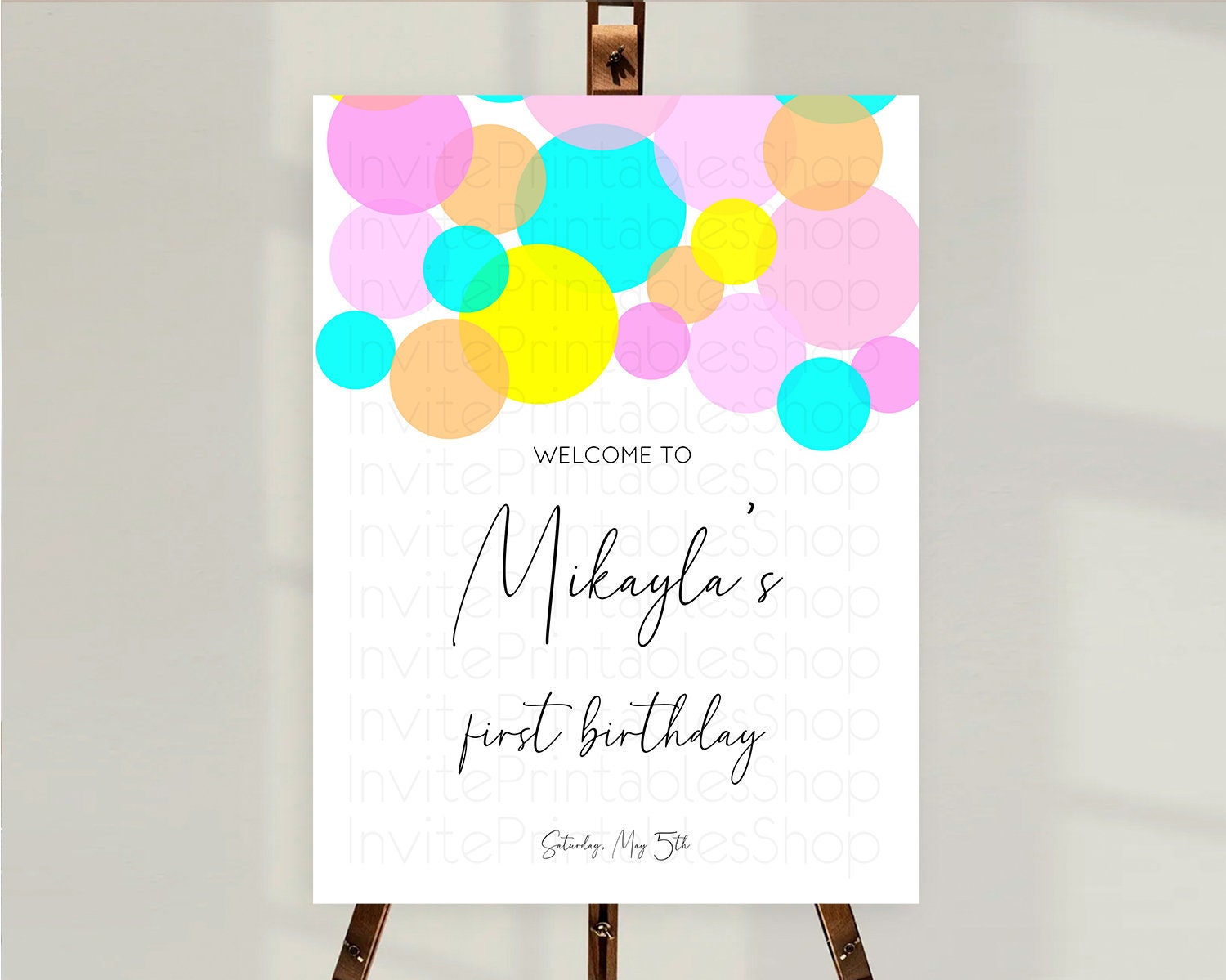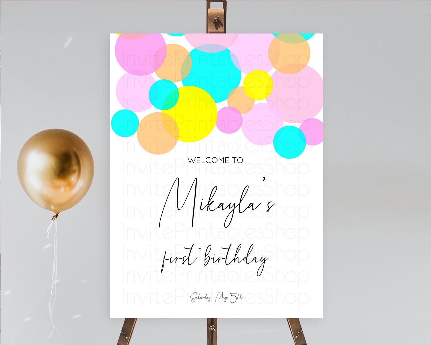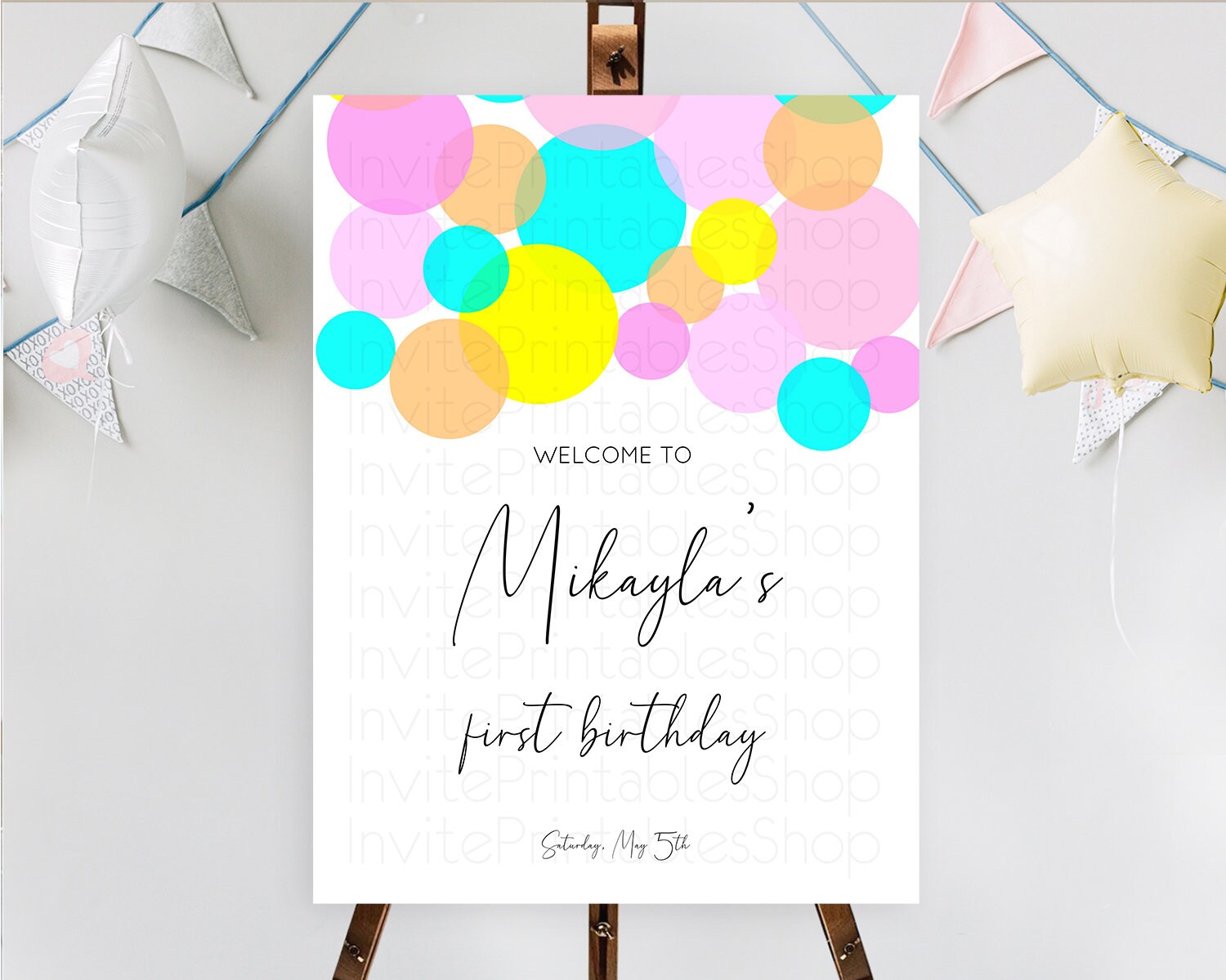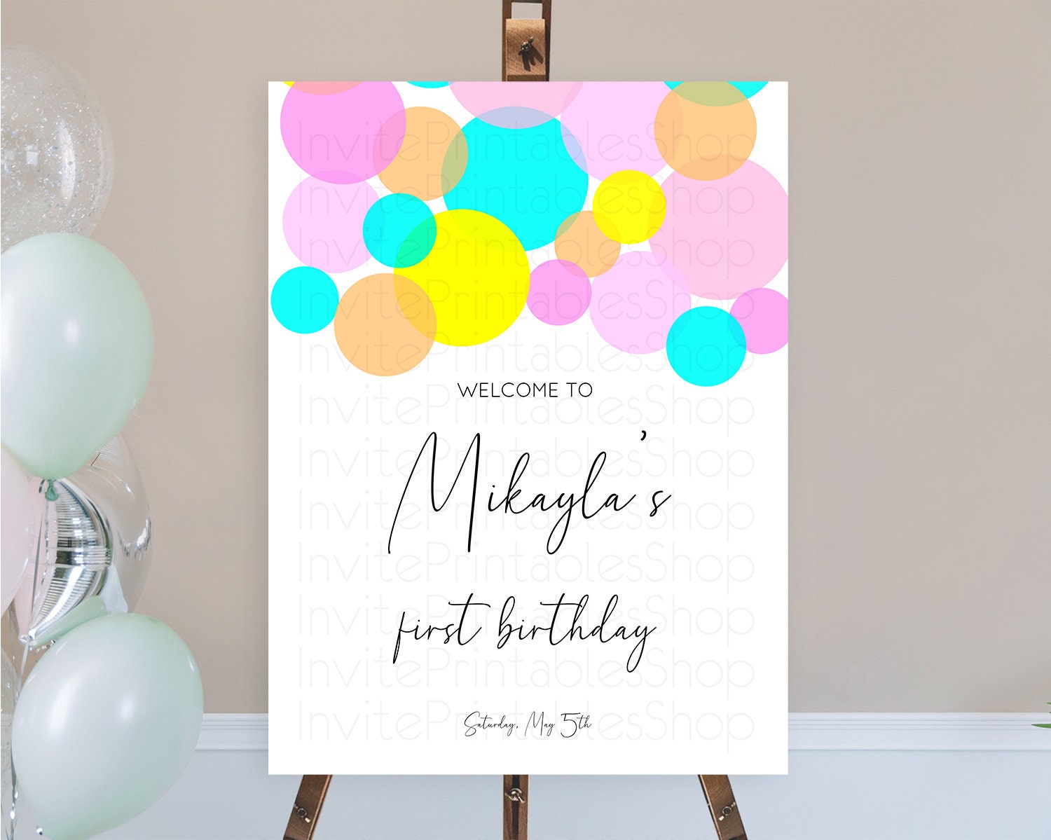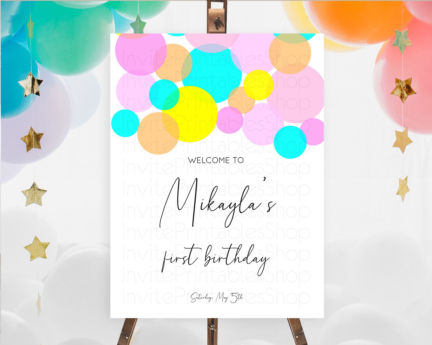 Rainbow Welcome Sign Pastel Welcome Board Pastel Rainbow Confetti Welcome Sign Colorful Bubbles Pastel First Birthday Welcome Sign D10896