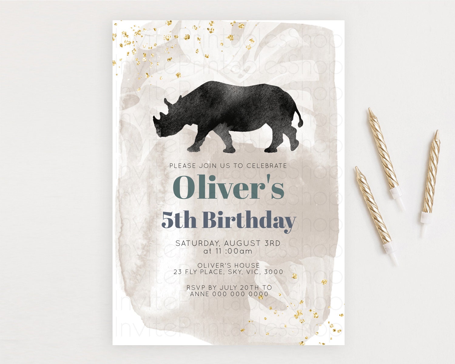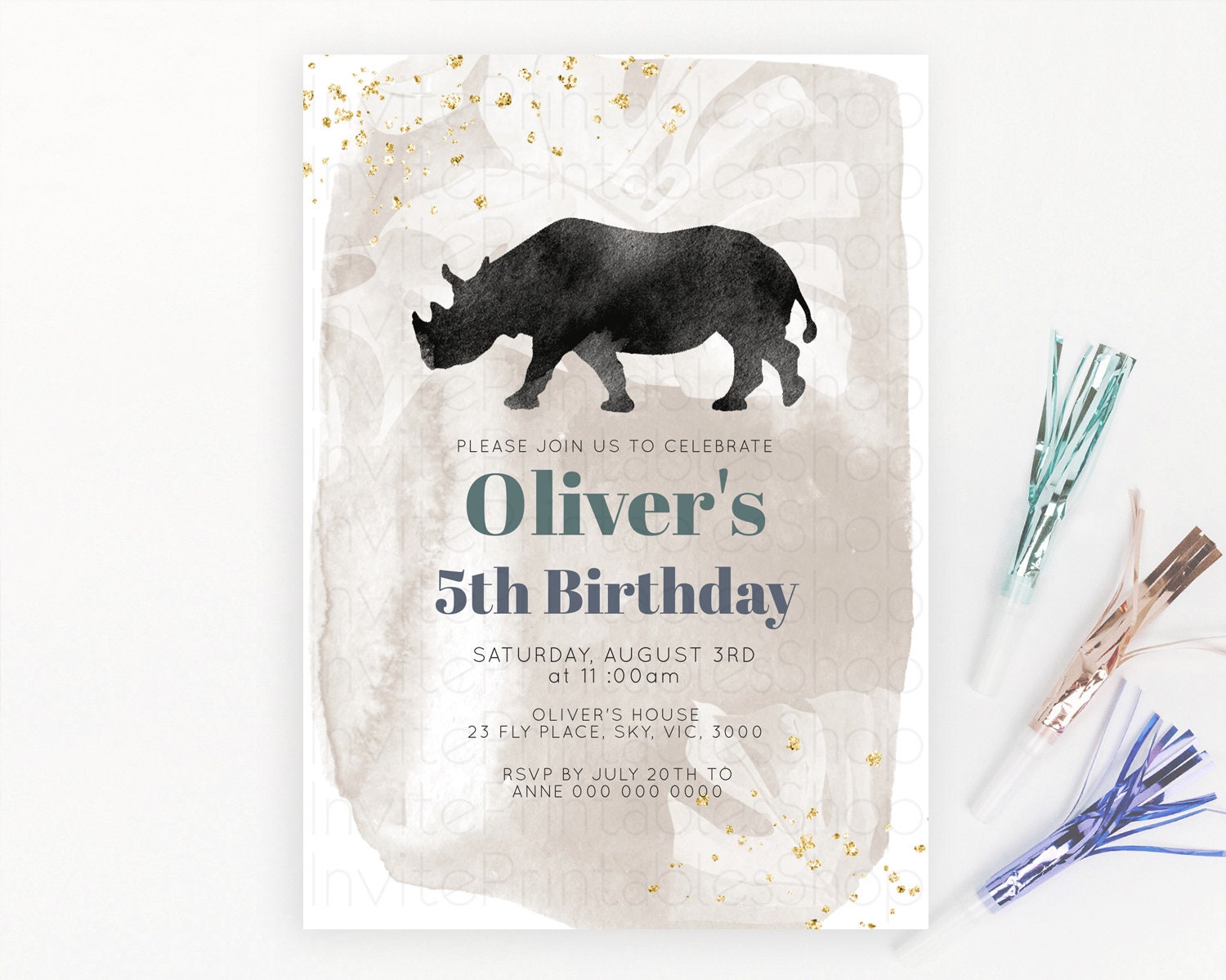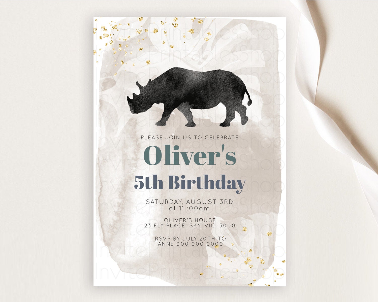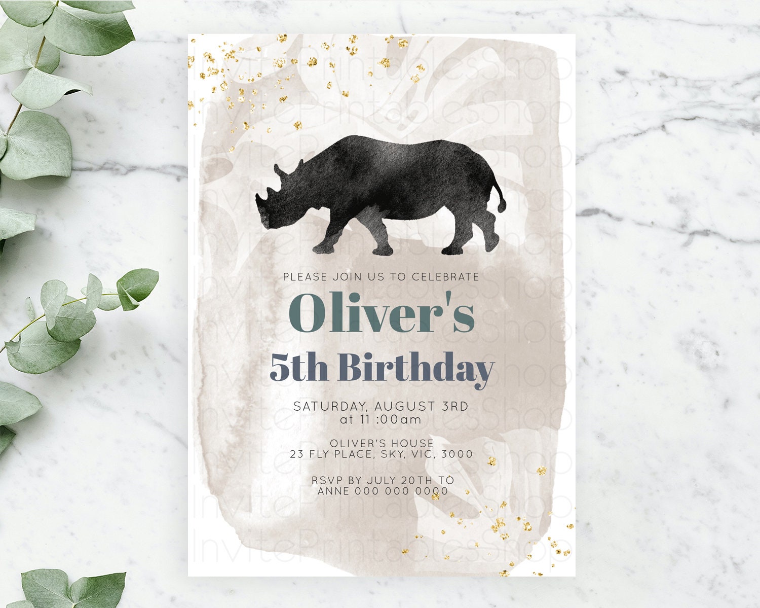 Rhino Birthday Invitation Rhino Invitation Rhino Birthday Rhino Safari Adventure Invite Rhino Palm Leaf Invite Zoo Party D10336