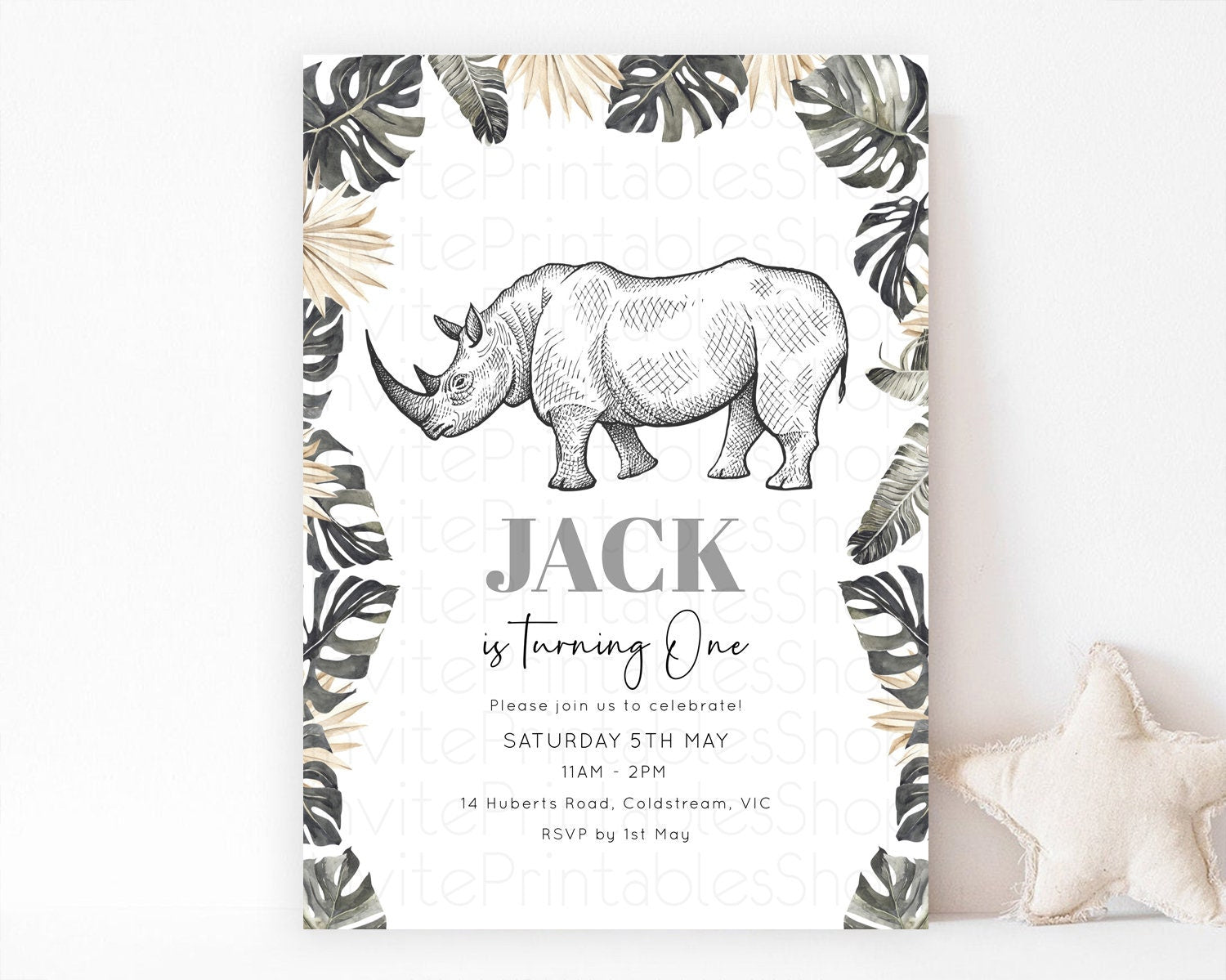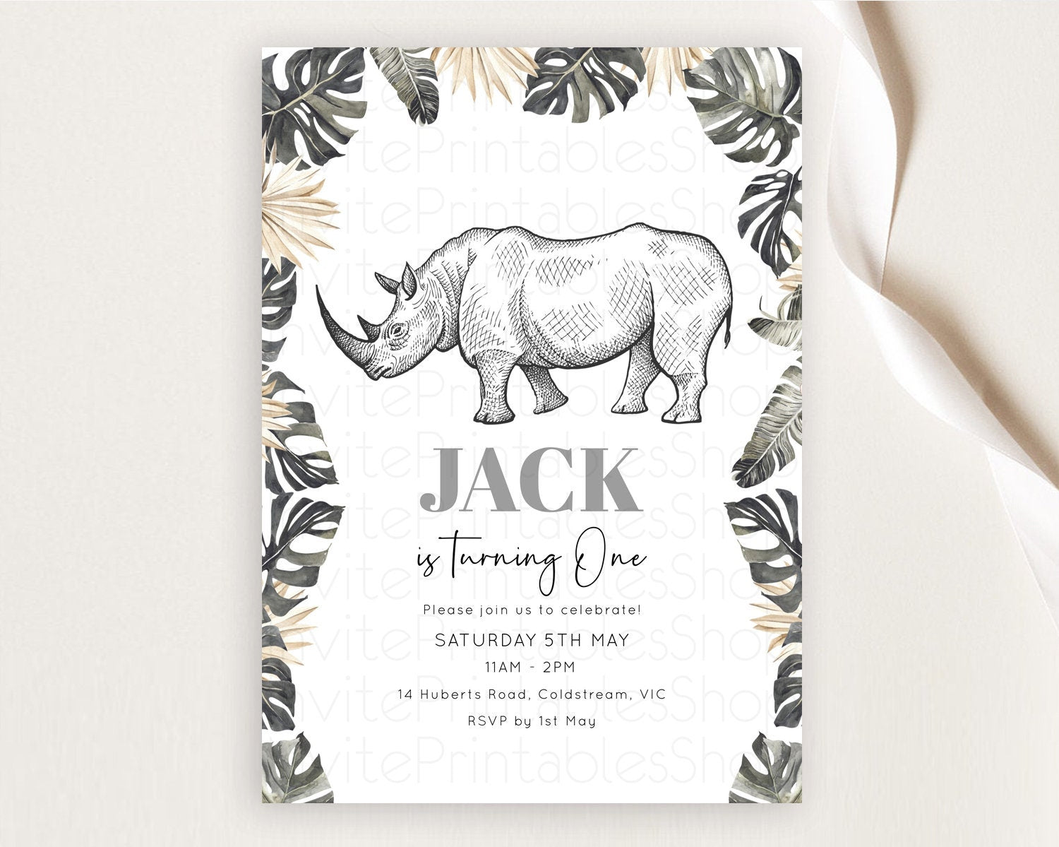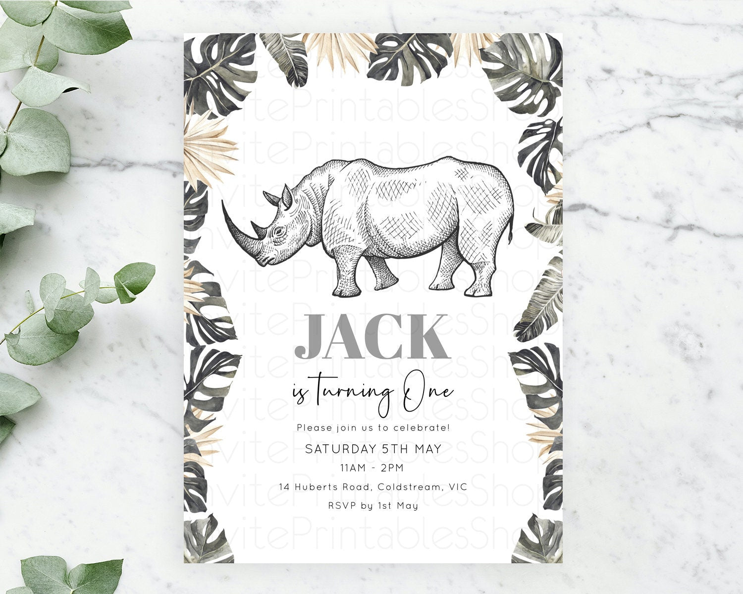 Rhino Birthday Invitation Rhino Invitation Rhino Birthday Rhino Safari Adventure Invite Rhino Palm Leaf Invite Zoo Party D10826