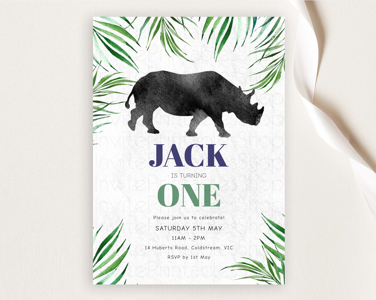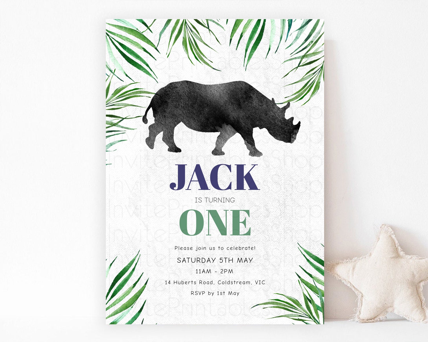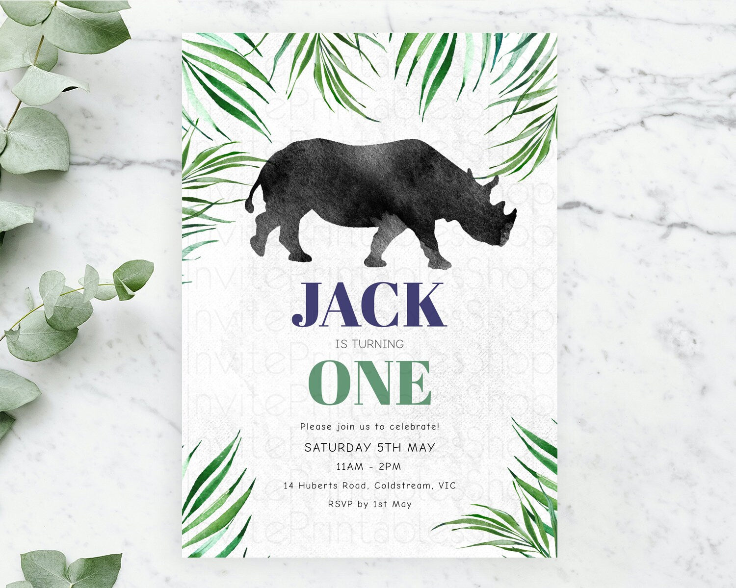 Rhino Birthday Invitation Rhino Invitation Rhino Birthday Rhino Safari Adventure Invite Rhino Palm Leaf Invite Zoo Party D10843