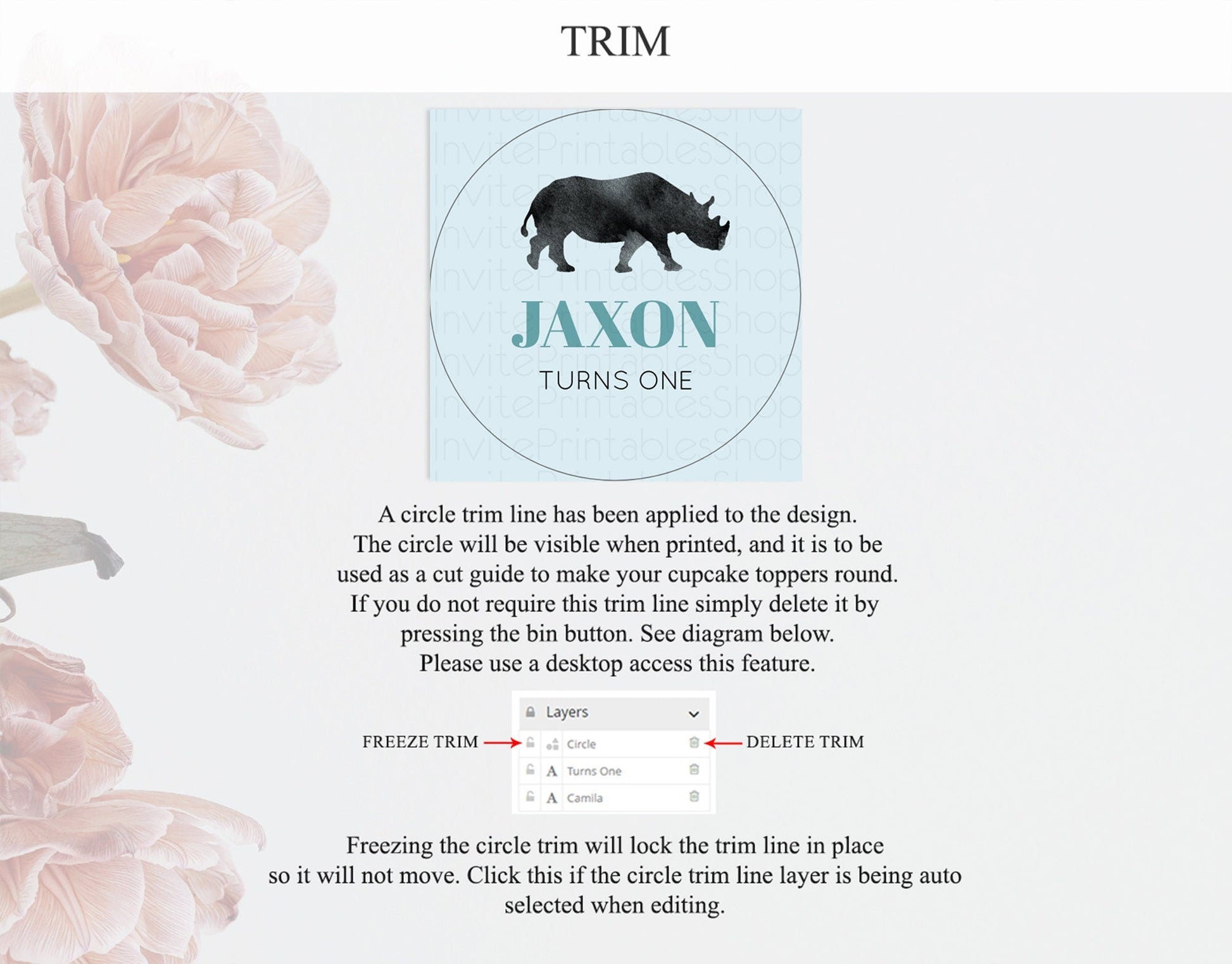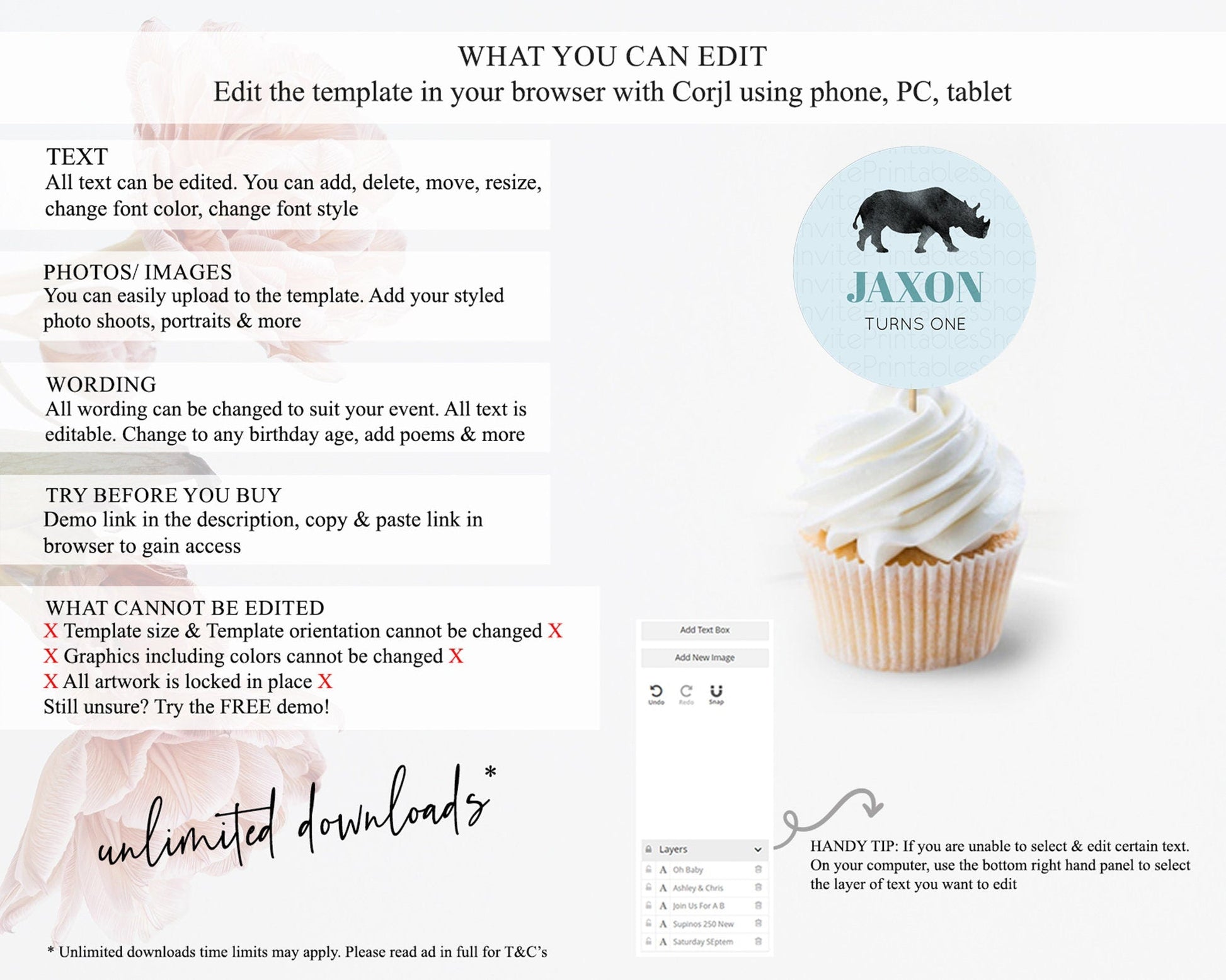 Rhino Cupcake Toppers Rhino Cupcake Rhino Take A Cupcake Toppers Rhino Safari Adventure Decor Zoo Party Rhino Palm Leaf Decor D10801