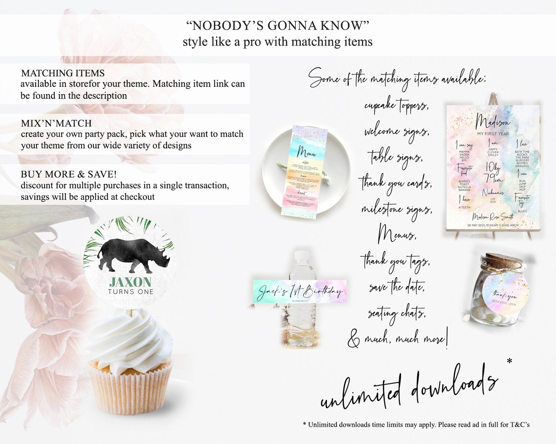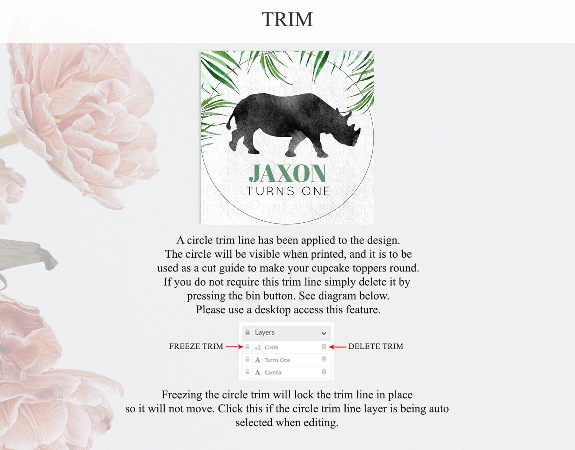 Rhino Cupcake Toppers Rhino Cupcake Rhino Take A Cupcake Toppers Rhino Safari Adventure Decor Zoo Party Rhino Palm Leaf Decor D10843