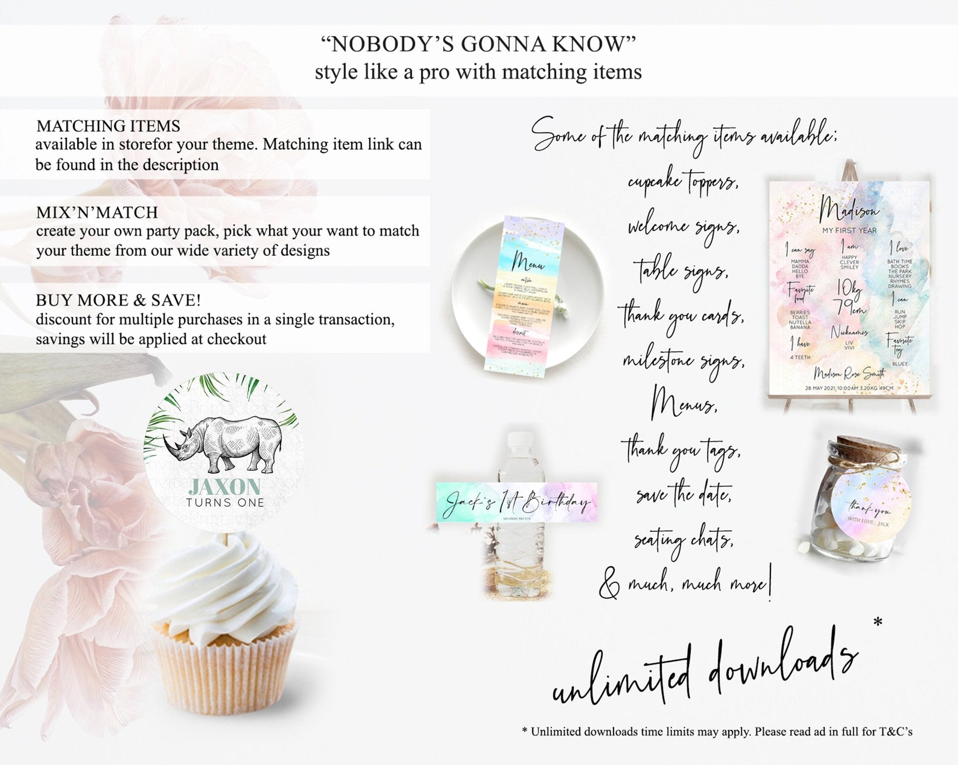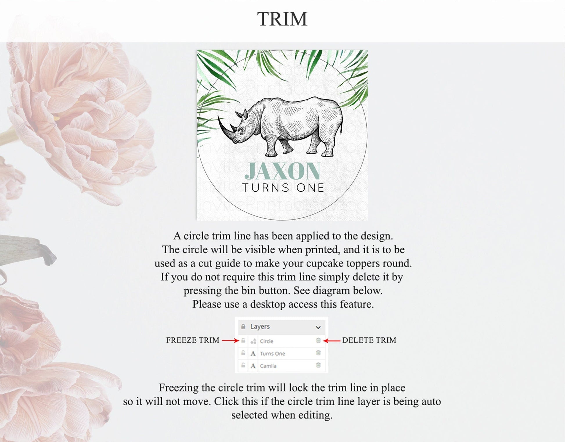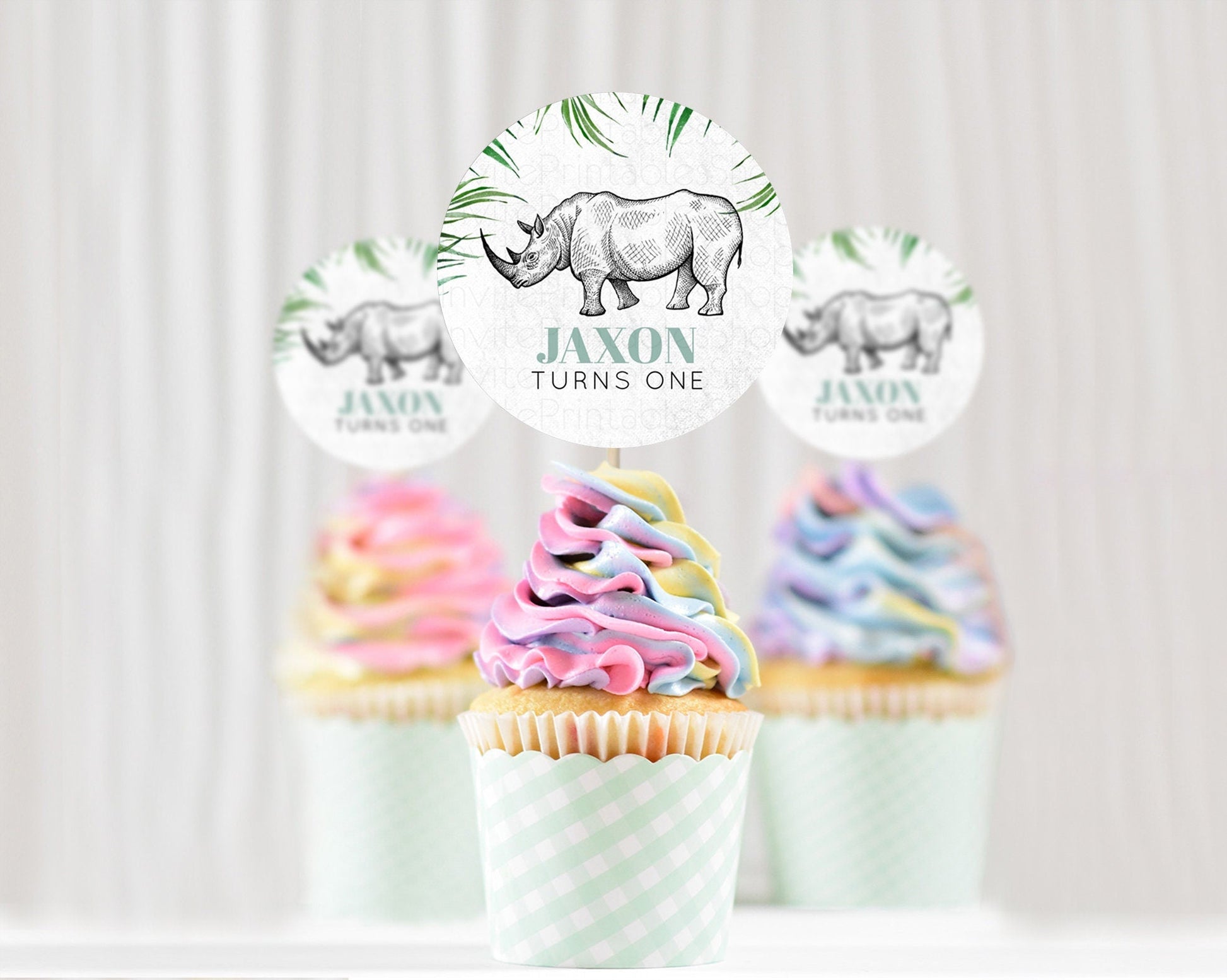 Rhino Cupcake Toppers Rhino Cupcake Rhino Take A Cupcake Toppers Rhino Safari Adventure Decor Zoo Party Rhino Palm Leaf Decor D10848